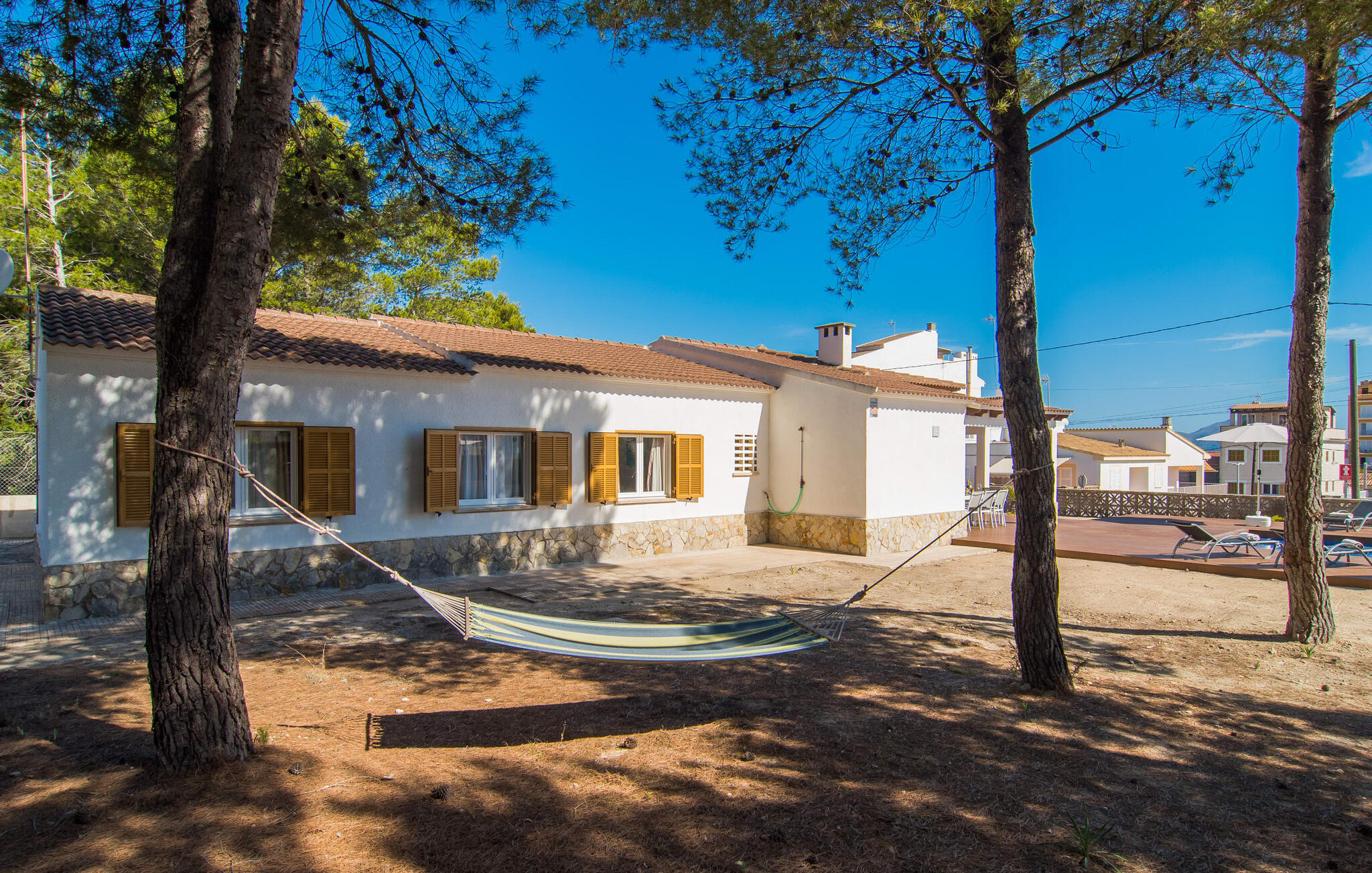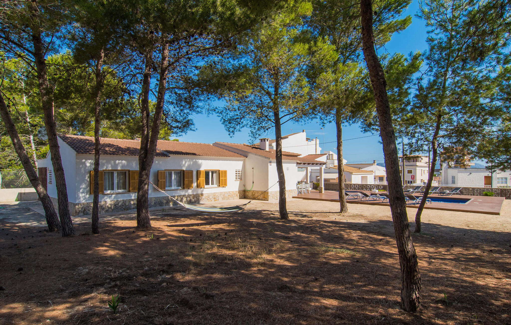 Geniet van het terras bij het huis, het zonnedek bij het zwembad of de natuurlijke zandgebieden, allemaal uitgerust met stoelen, ligstoelen en hangmatten voor uitgebreide uren van ontspanning. Het zwembad met brede treden en helderblauwe mozaïektegels, aangevuld met een praktische buitendouche, biedt verfrissende verkoeling op warme dagen. s Avonds kom je samen voor een barbecue en kook je mediterrane lekkernijen terwijl anderen hun favoriete drankjes bereiden.