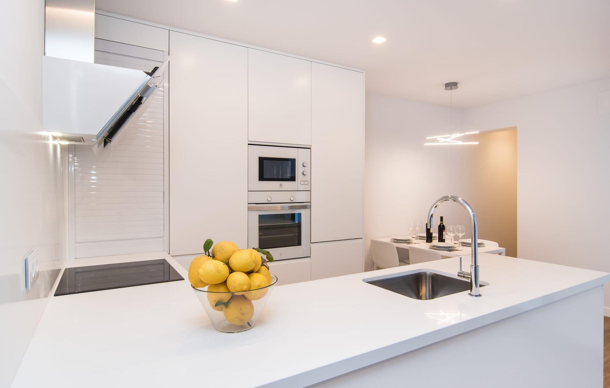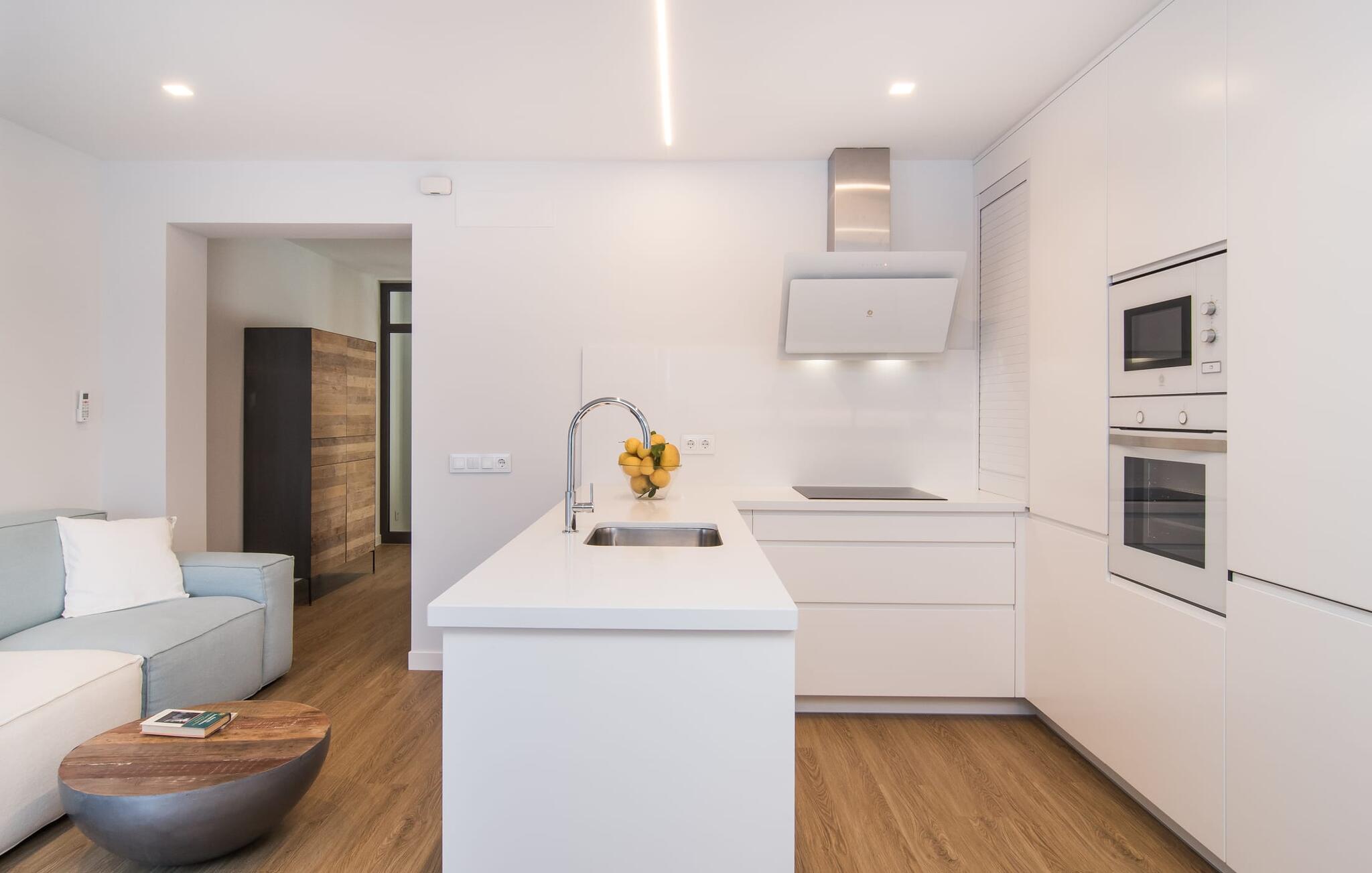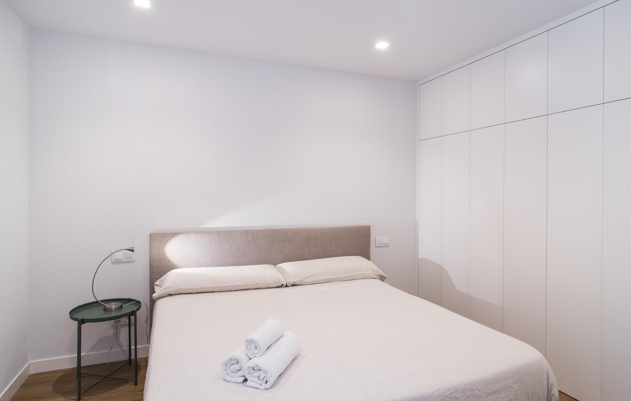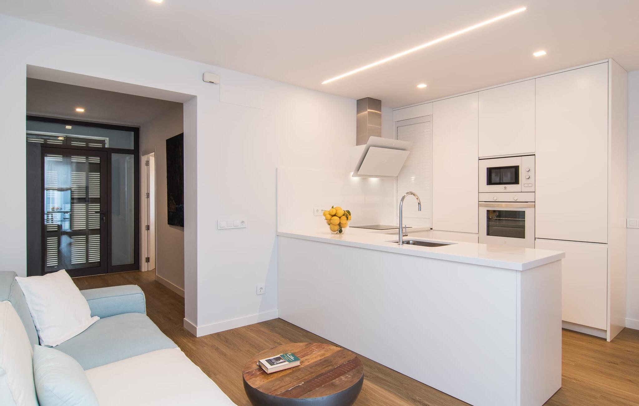 Dicht bij zee, op loopafstand van voorzieningen, een moderne sfeer, een eigen binnenplaats en een overdekt terras - wat wil je nog meer? Als je met z`n tweeën of drieën reist, eventueel met een baby of twee, dan heb je hier waarschijnlijk je ideale accommodatie al gevonden! Met een strategische ligging in een klein straatje, hemelsbreed slechts 200 meter van de zee, kun je `s ochtends in je casual loungewear genieten van je zelfgebrouwen koffie op de minimalistische binnenplaats, die volledig is afgezonderd en aangenaam koel van kleur is, of op het luchtige dakterras terwijl je begint met het plannen van de vakantie-uren die voor je liggen. Wat je ook besluit te doen, dankzij de slimme architectuur en indeling zijn de afstanden sowieso kort. Het lagere terras heeft echter de allure van een tafel en stoelen en nodigt je uit om in alle privacy en onder de open hemel van je maaltijden te genieten; er is zelfs een barbecue.
