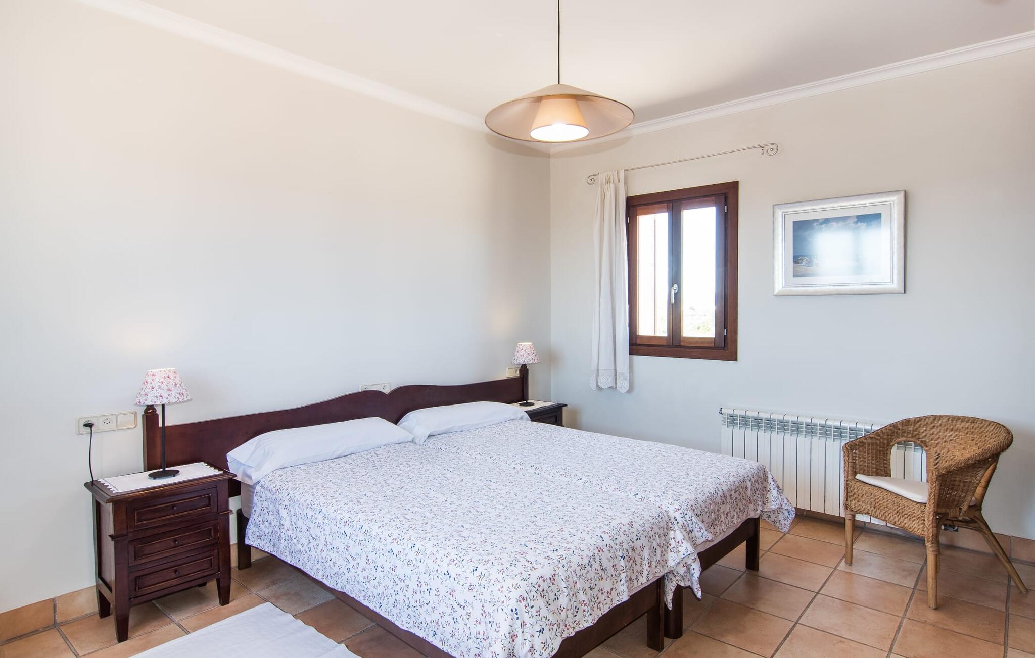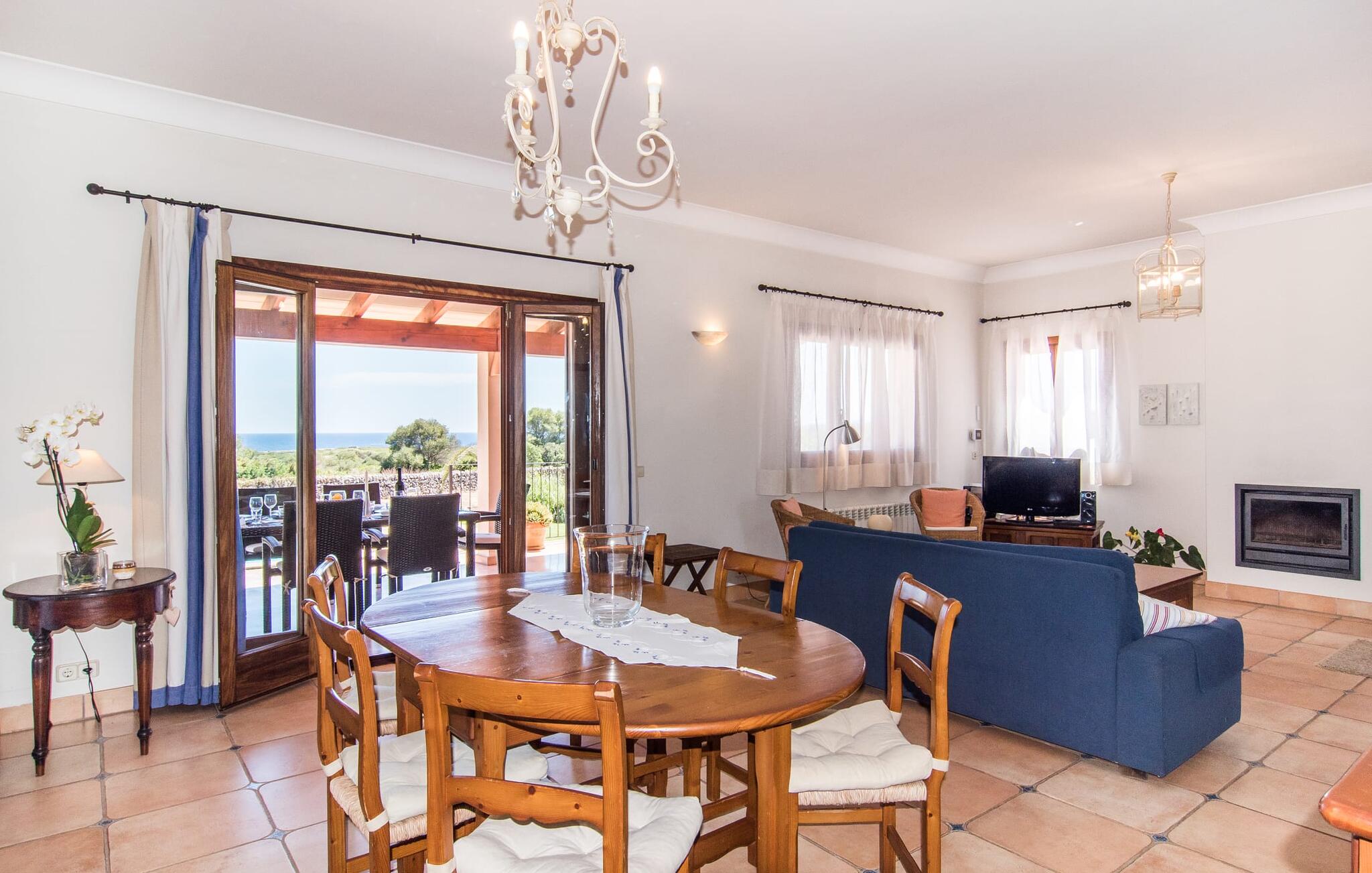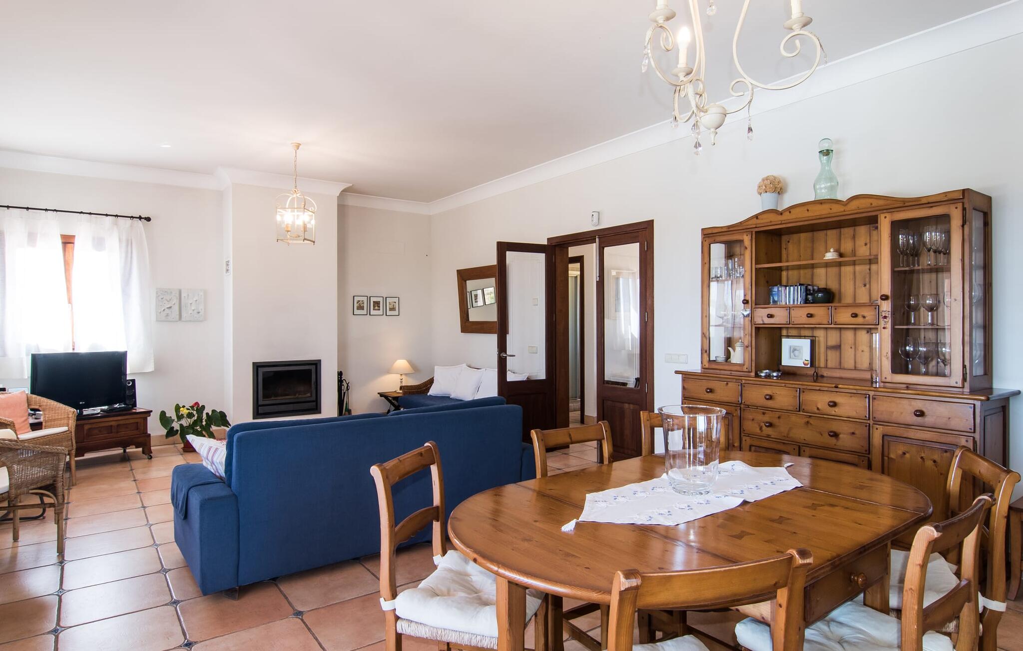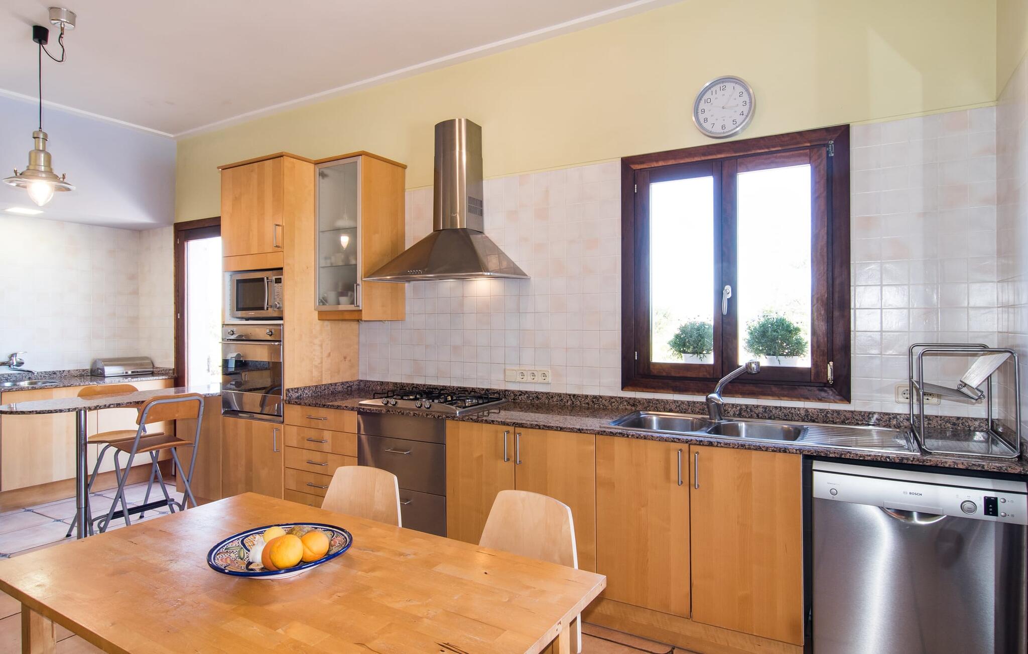 Binnen combineert "Can Guillem Boquet" modern comfort met rustieke charme. De volledig uitgeruste keuken leidt naar een gezellige woon/eetkamer met open haard en tv, perfect voor ontspannen avonden. De drie slaapkamers op de begane grond hebben tweepersoonsbedden van 1,60 meter, terwijl de bovenverdieping is ingericht met eenpersoonsbedden. Elke verdieping heeft een badkamer met bad of douche, en er zijn buitenwaterfaciliteiten om je af te spoelen na een uitstapje naar het strand.