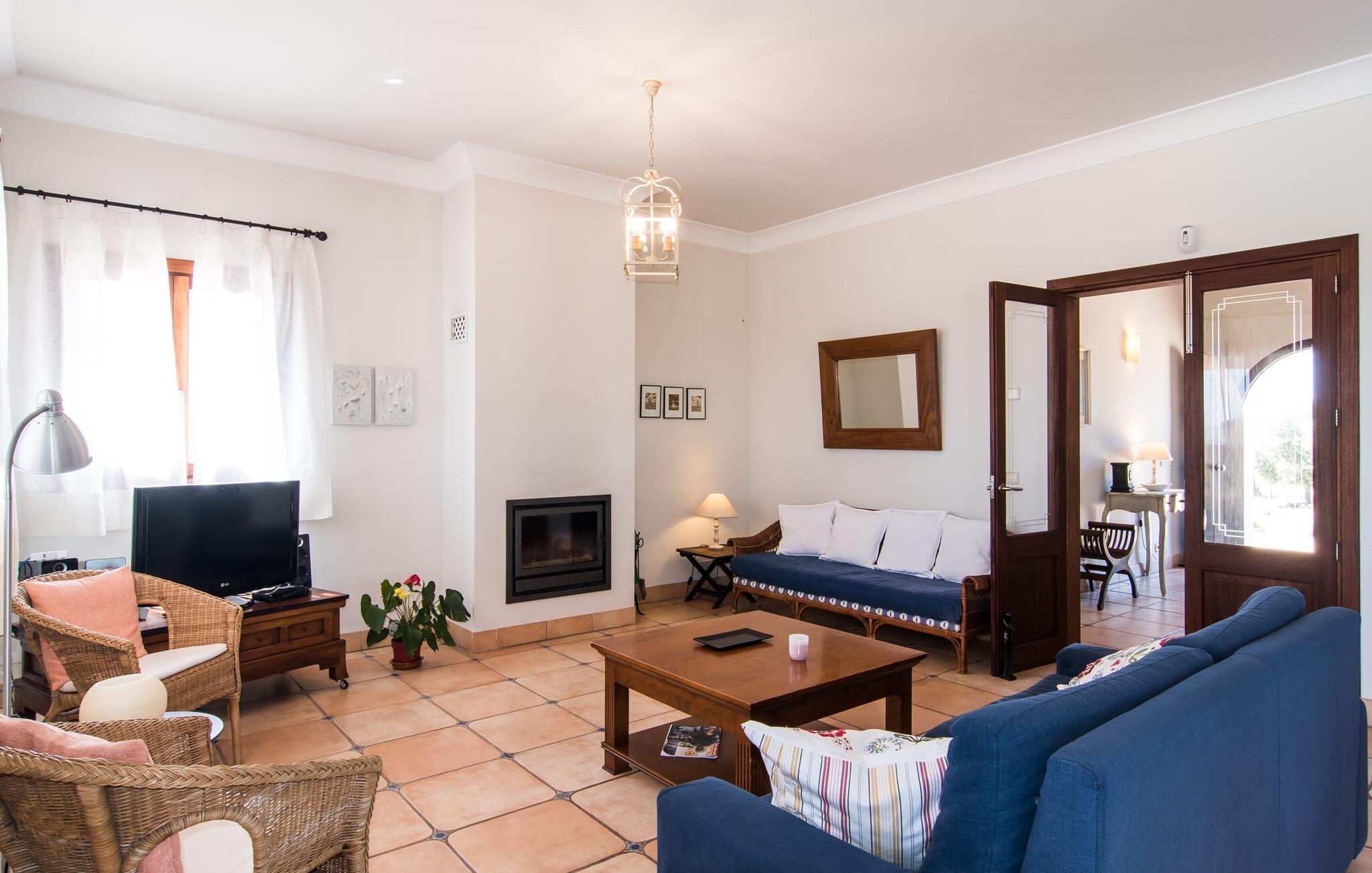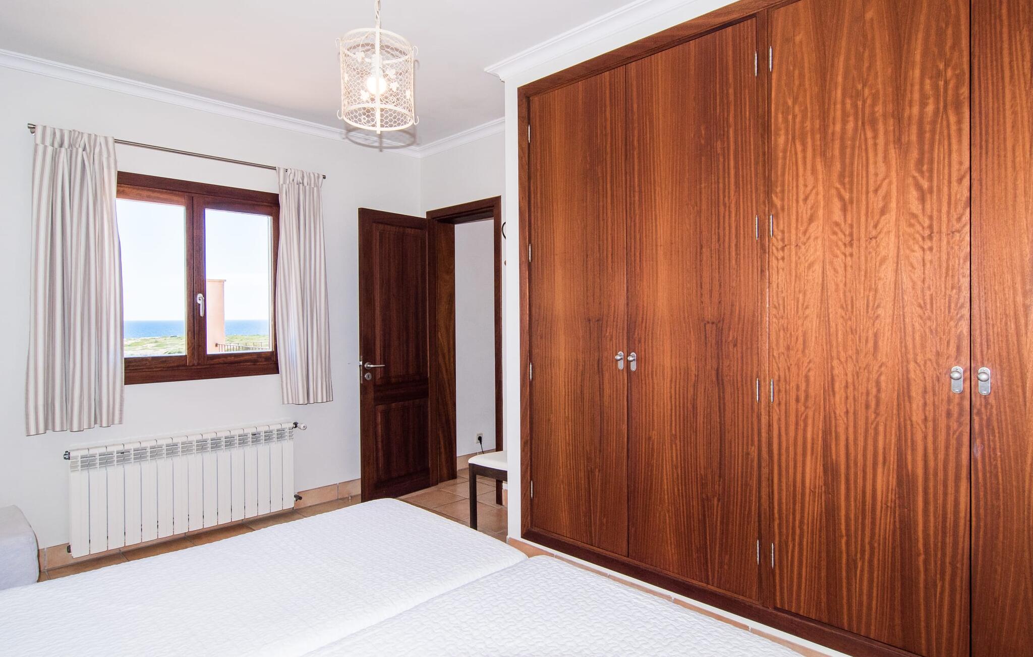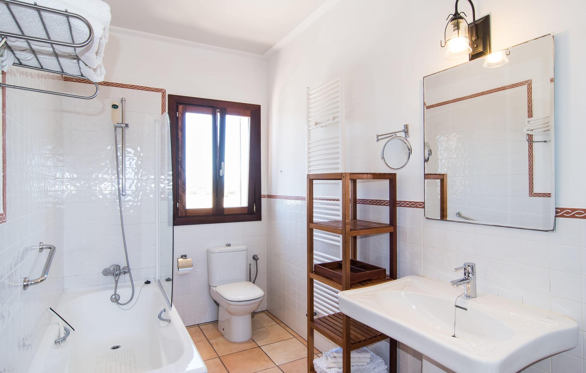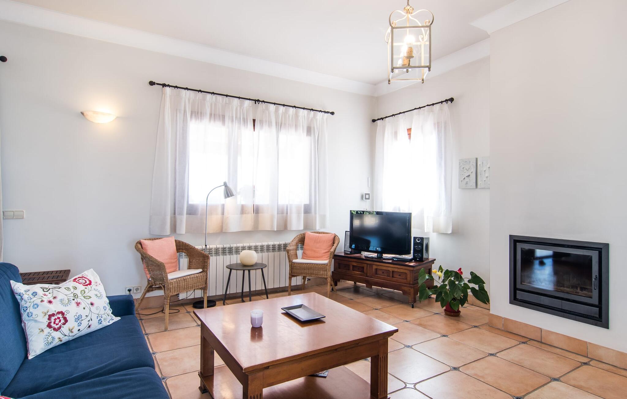 Binnen combineert "Can Guillem Boquet" modern comfort met rustieke charme. De volledig uitgeruste keuken leidt naar een gezellige woon/eetkamer met open haard en tv, perfect voor ontspannen avonden. De drie slaapkamers op de begane grond hebben tweepersoonsbedden van 1,60 meter, terwijl de bovenverdieping is ingericht met eenpersoonsbedden. Elke verdieping heeft een badkamer met bad of douche, en er zijn buitenwaterfaciliteiten om je af te spoelen na een uitstapje naar het strand.