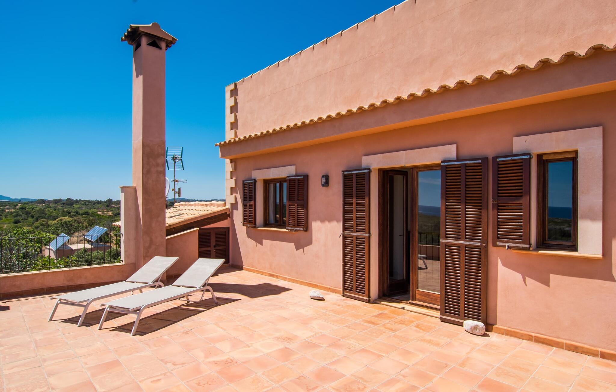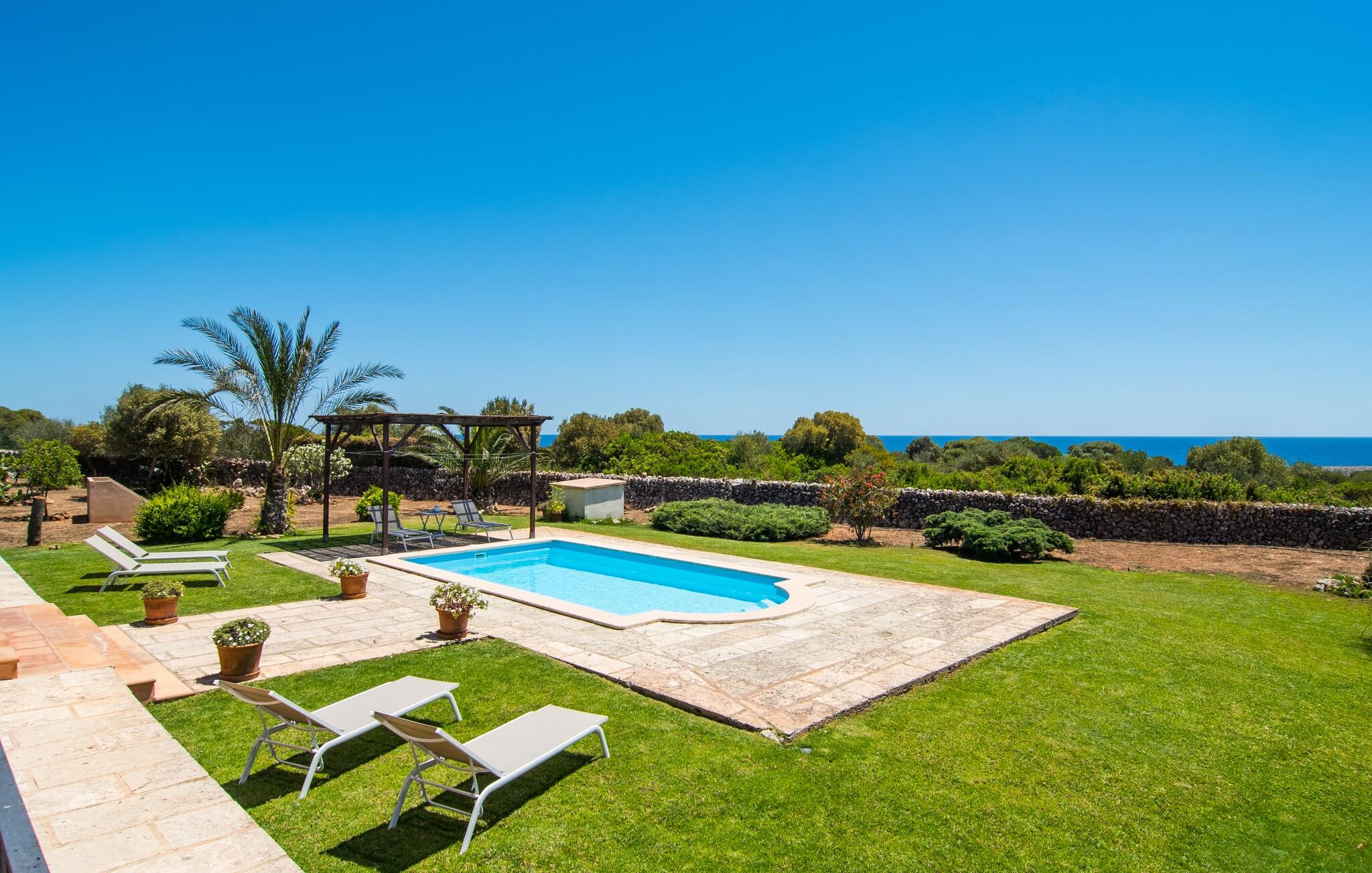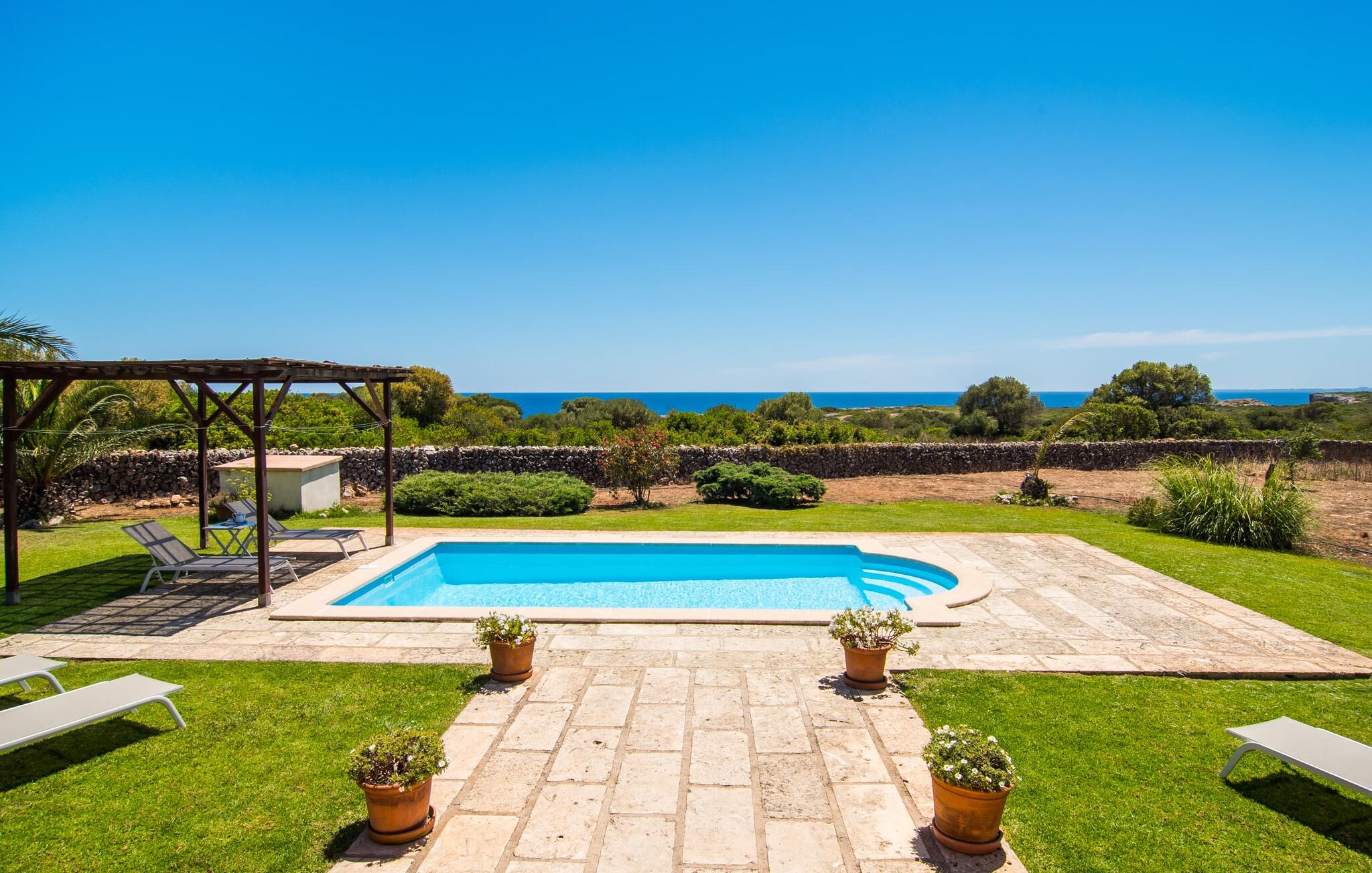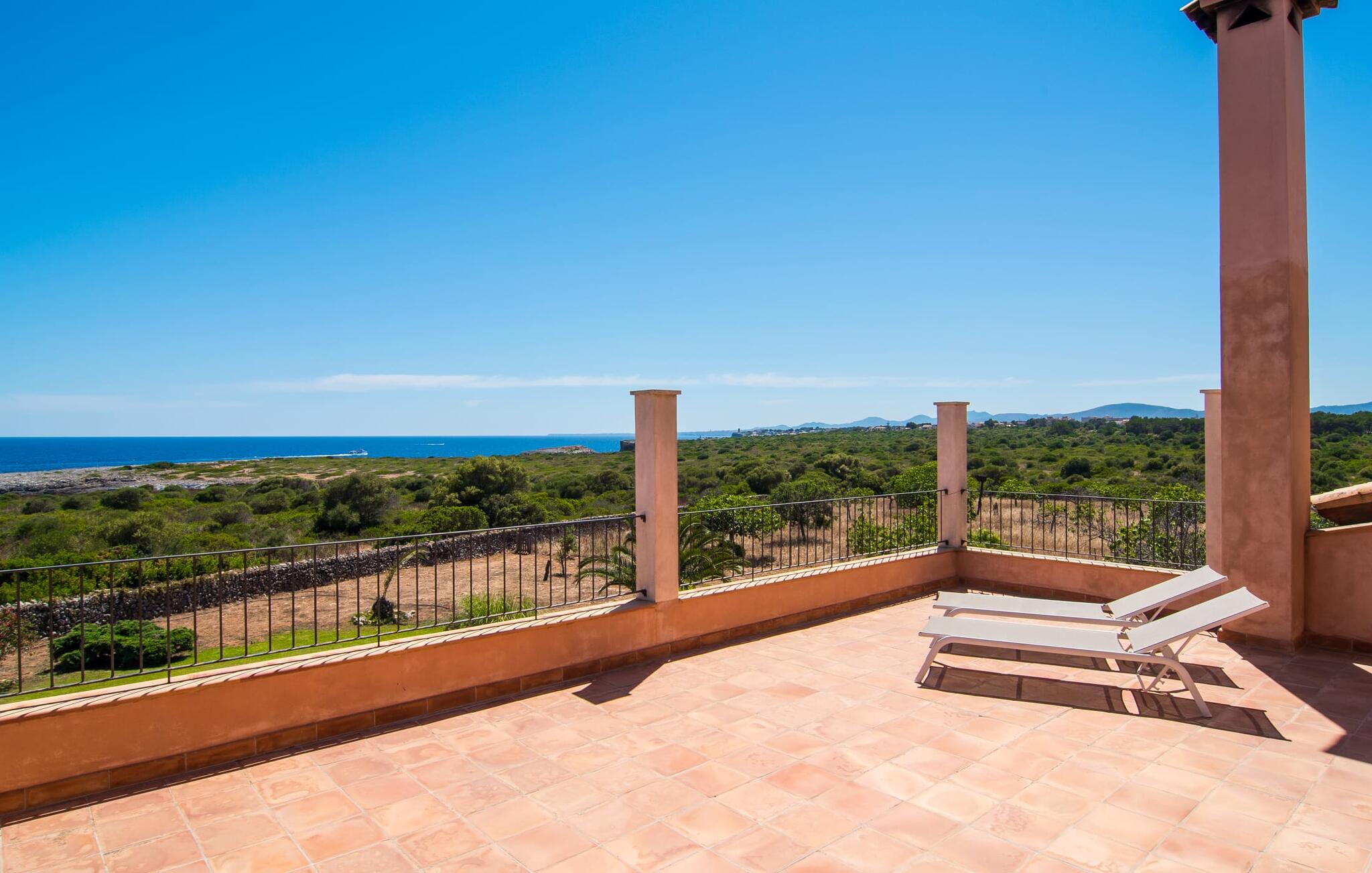 De villa kijkt uit over zee en biedt een ongeëvenaard uitzicht, terwijl de parkeerplaats en carport discreet aan de achterkant zijn geplaatst. Op slechts 200 meter van het rustige Cala Petita is het strand bijna als je eigen privé-heiligdom, perfect voor een vroege ochtendduik of een rustige avond bij het water. Terug bij de villa kun je relaxen bij het kleine zwembad op het gazon, ontspannen met een goed boek in de schaduwrijke pergola of genieten van de zon op het loungeterras omringd door bloemen en planten. De barbecueplaats is ideaal om verse vis te bereiden terwijl je geniet van de prachtige omgeving.