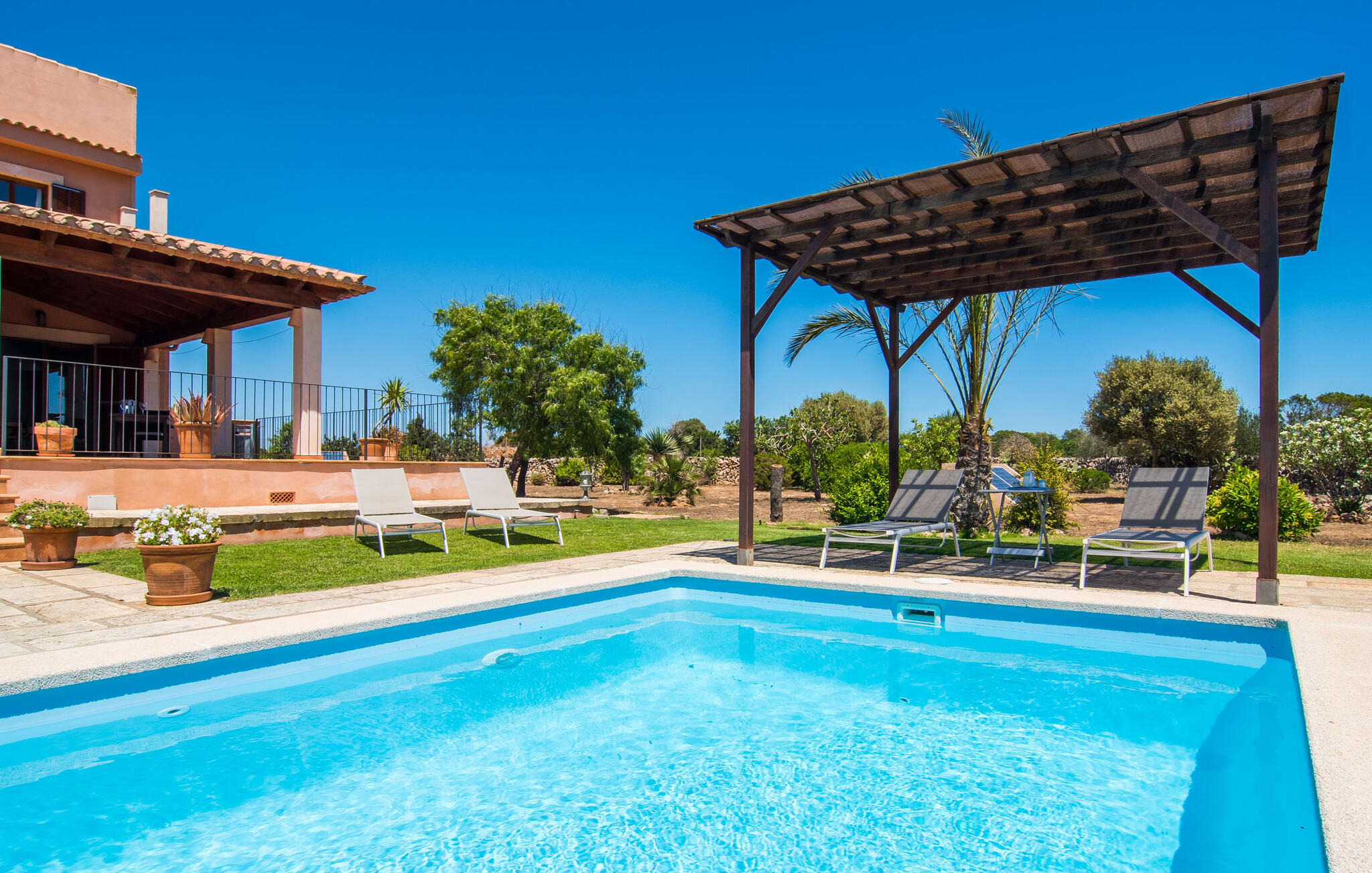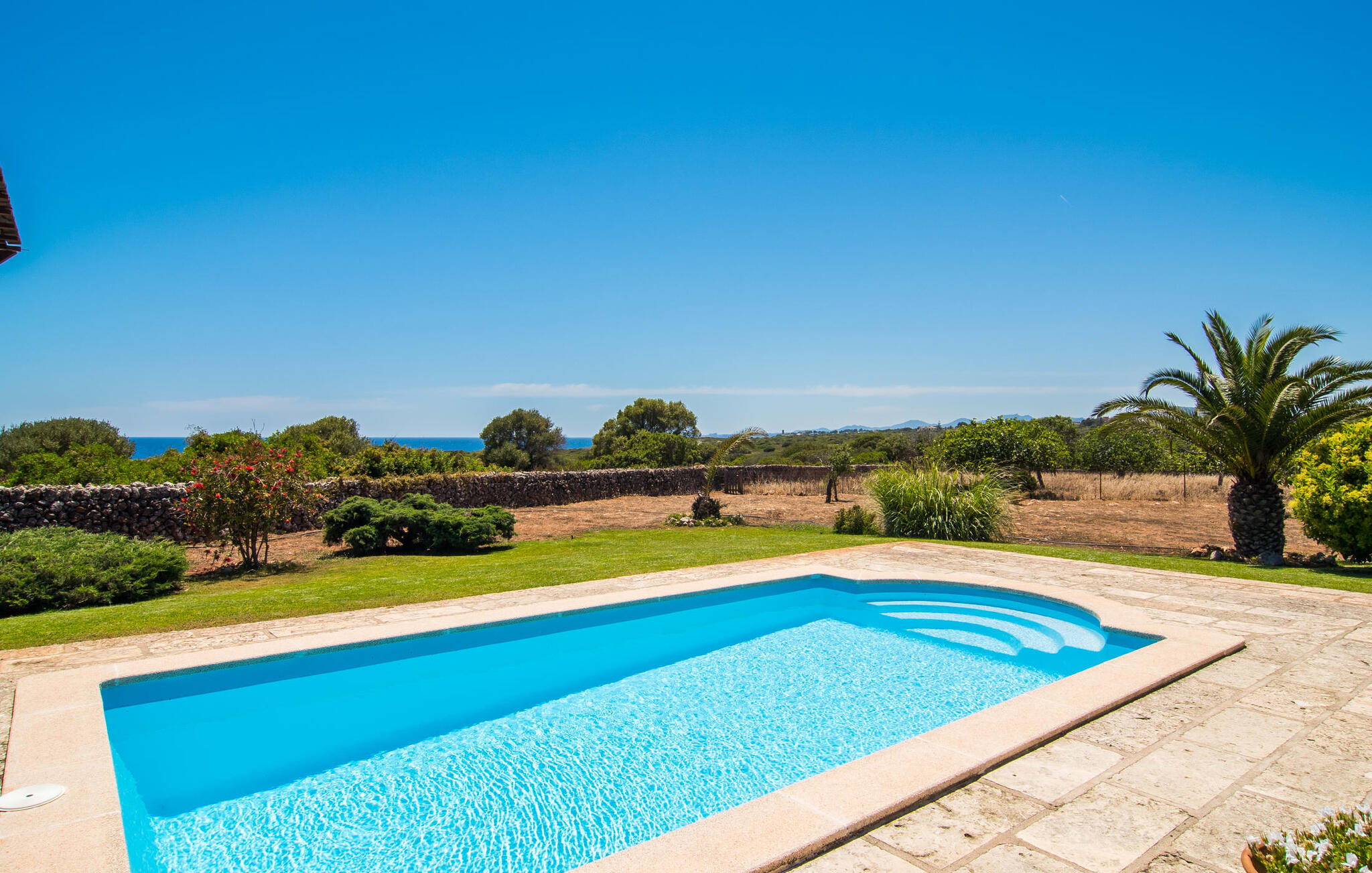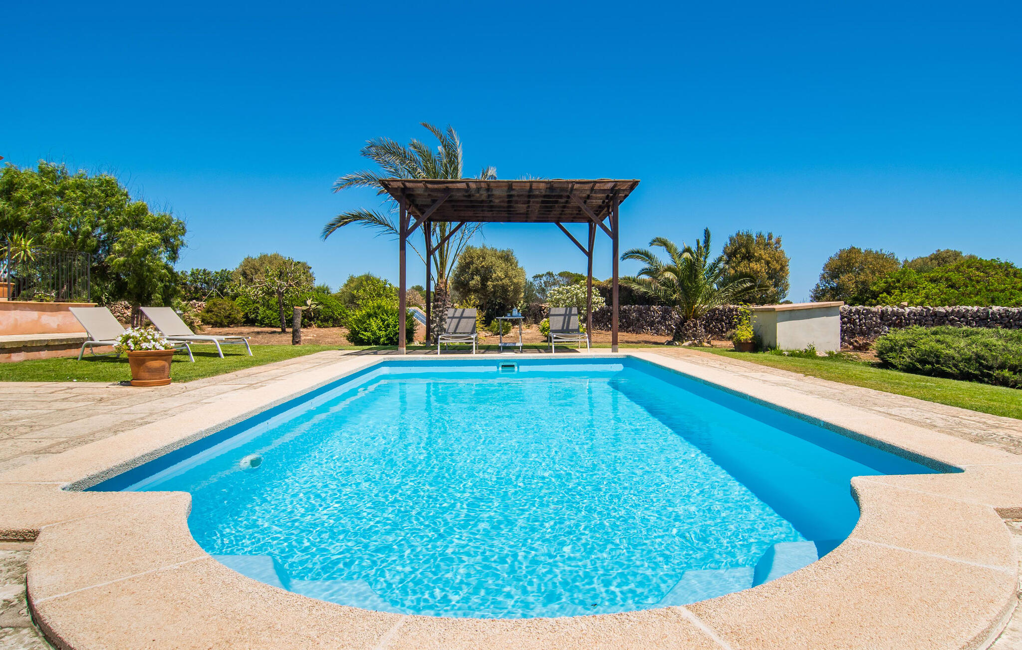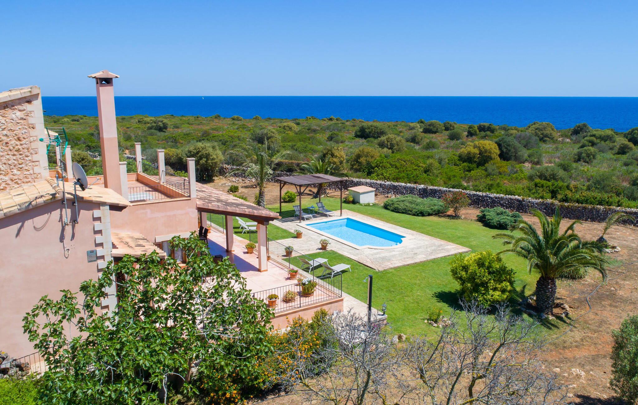 De villa kijkt uit over zee en biedt een ongeëvenaard uitzicht, terwijl de parkeerplaats en carport discreet aan de achterkant zijn geplaatst. Op slechts 200 meter van het rustige Cala Petita is het strand bijna als je eigen privé-heiligdom, perfect voor een vroege ochtendduik of een rustige avond bij het water. Terug bij de villa kun je relaxen bij het kleine zwembad op het gazon, ontspannen met een goed boek in de schaduwrijke pergola of genieten van de zon op het loungeterras omringd door bloemen en planten. De barbecueplaats is ideaal om verse vis te bereiden terwijl je geniet van de prachtige omgeving.