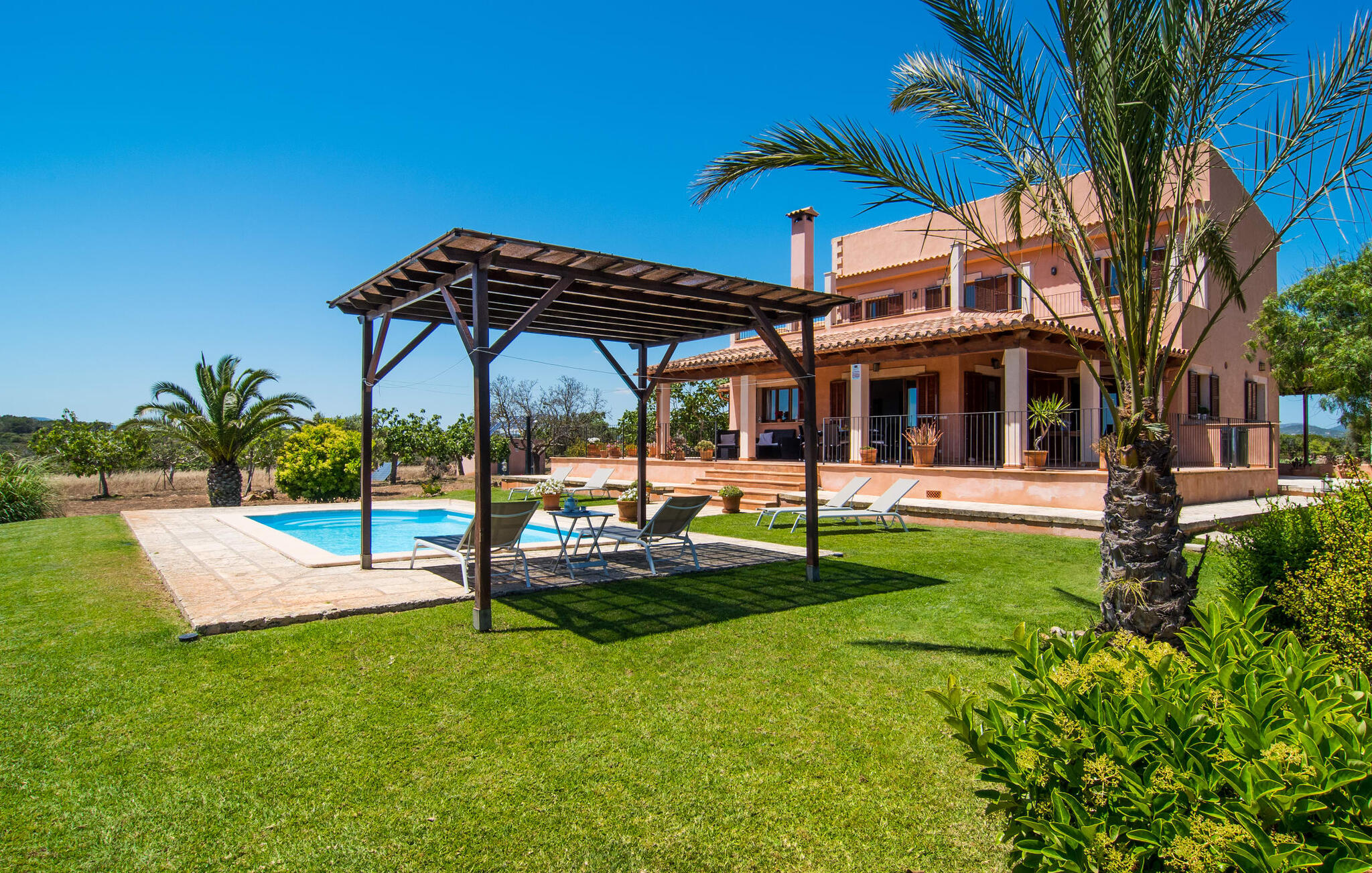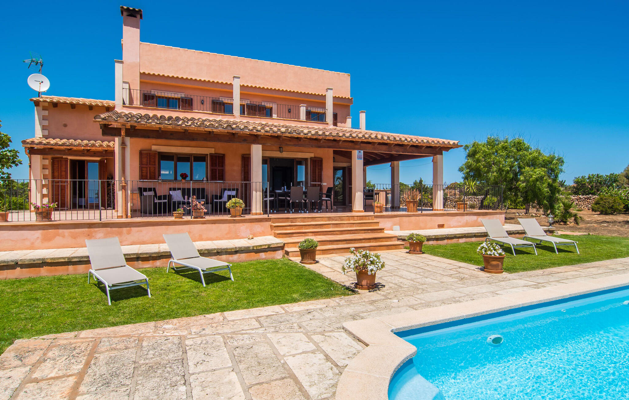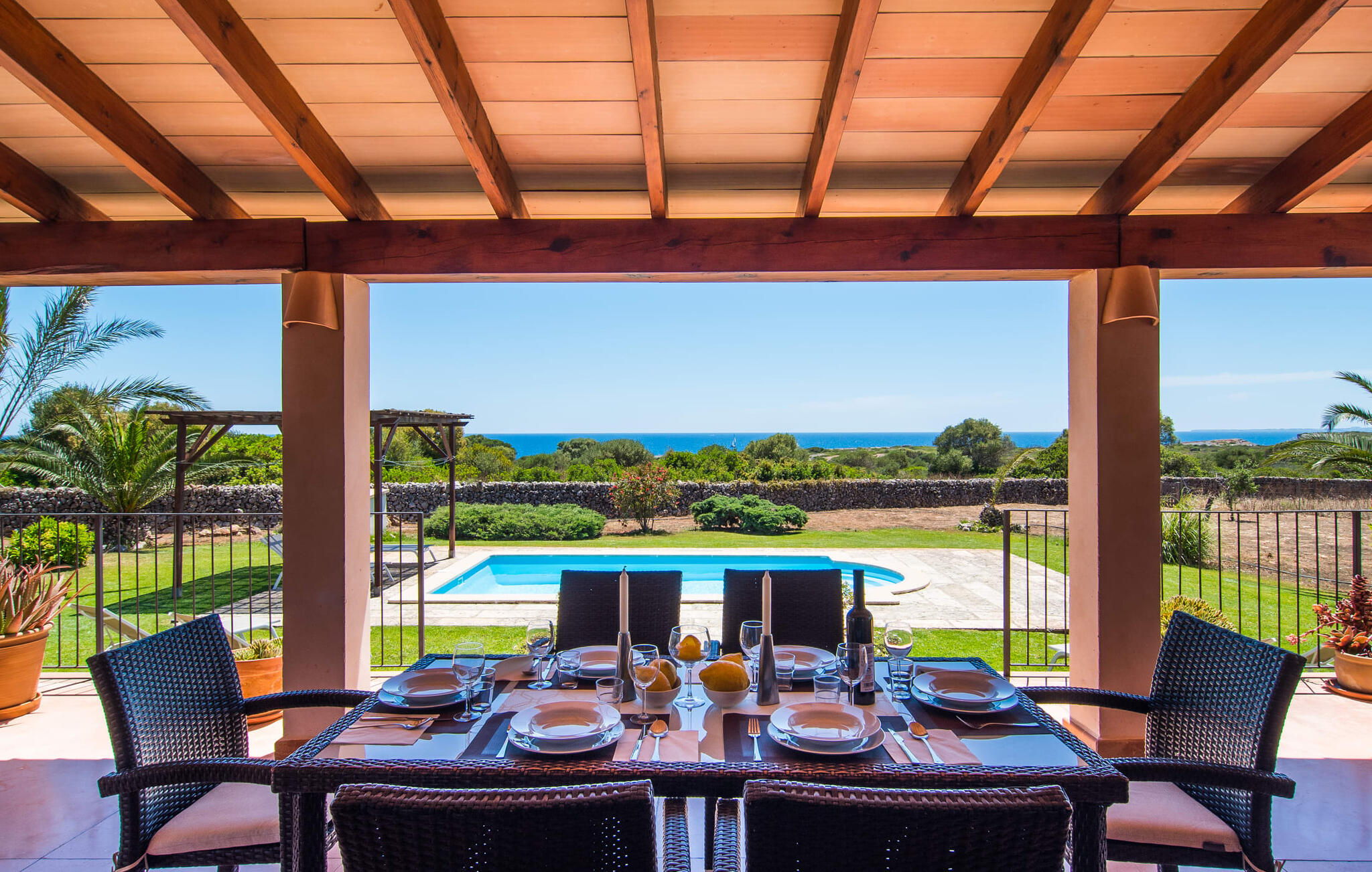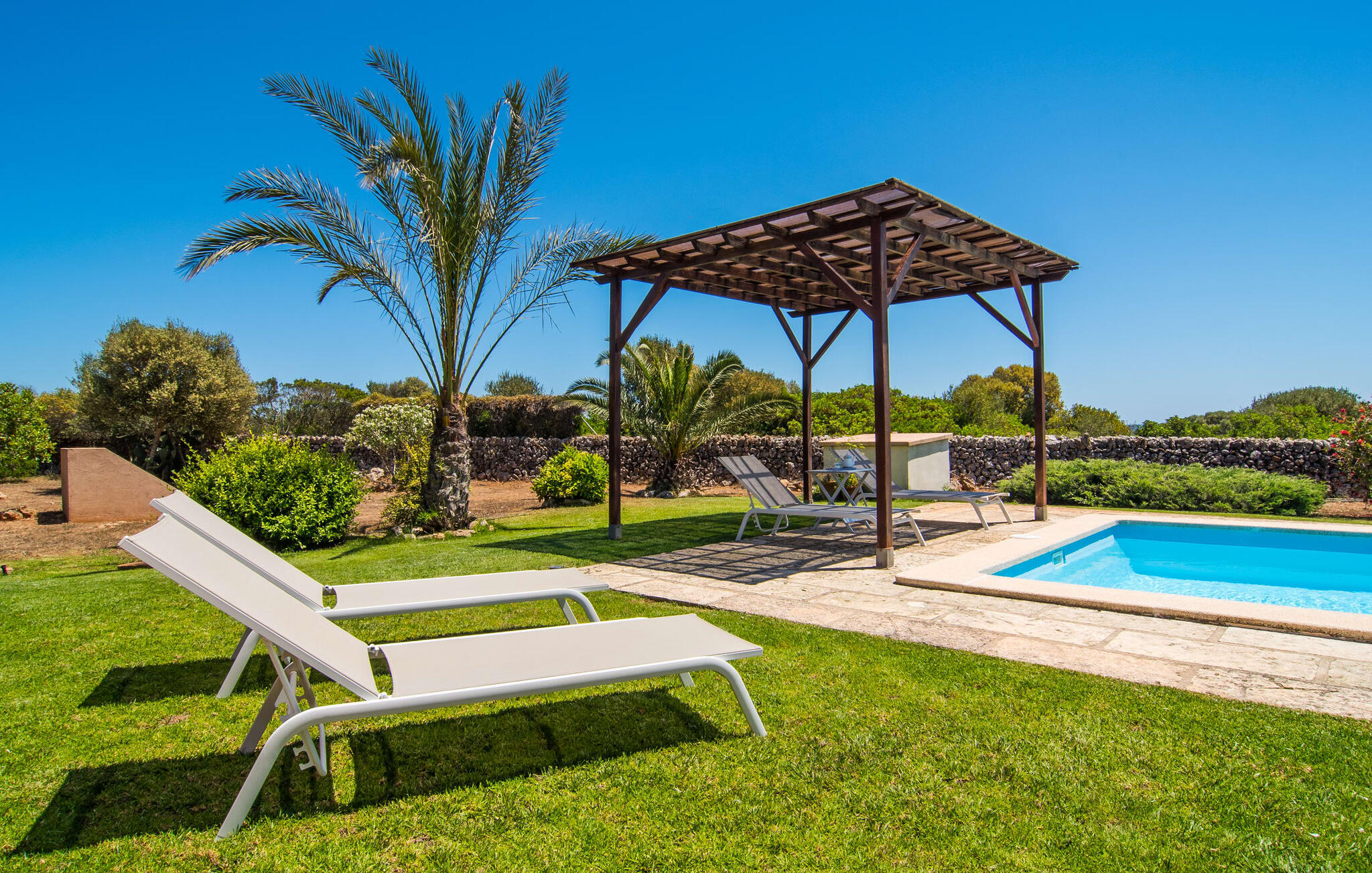 De villa kijkt uit over zee en biedt een ongeëvenaard uitzicht, terwijl de parkeerplaats en carport discreet aan de achterkant zijn geplaatst. Op slechts 200 meter van het rustige Cala Petita is het strand bijna als je eigen privé-heiligdom, perfect voor een vroege ochtendduik of een rustige avond bij het water. Terug bij de villa kun je relaxen bij het kleine zwembad op het gazon, ontspannen met een goed boek in de schaduwrijke pergola of genieten van de zon op het loungeterras omringd door bloemen en planten. De barbecueplaats is ideaal om verse vis te bereiden terwijl je geniet van de prachtige omgeving.