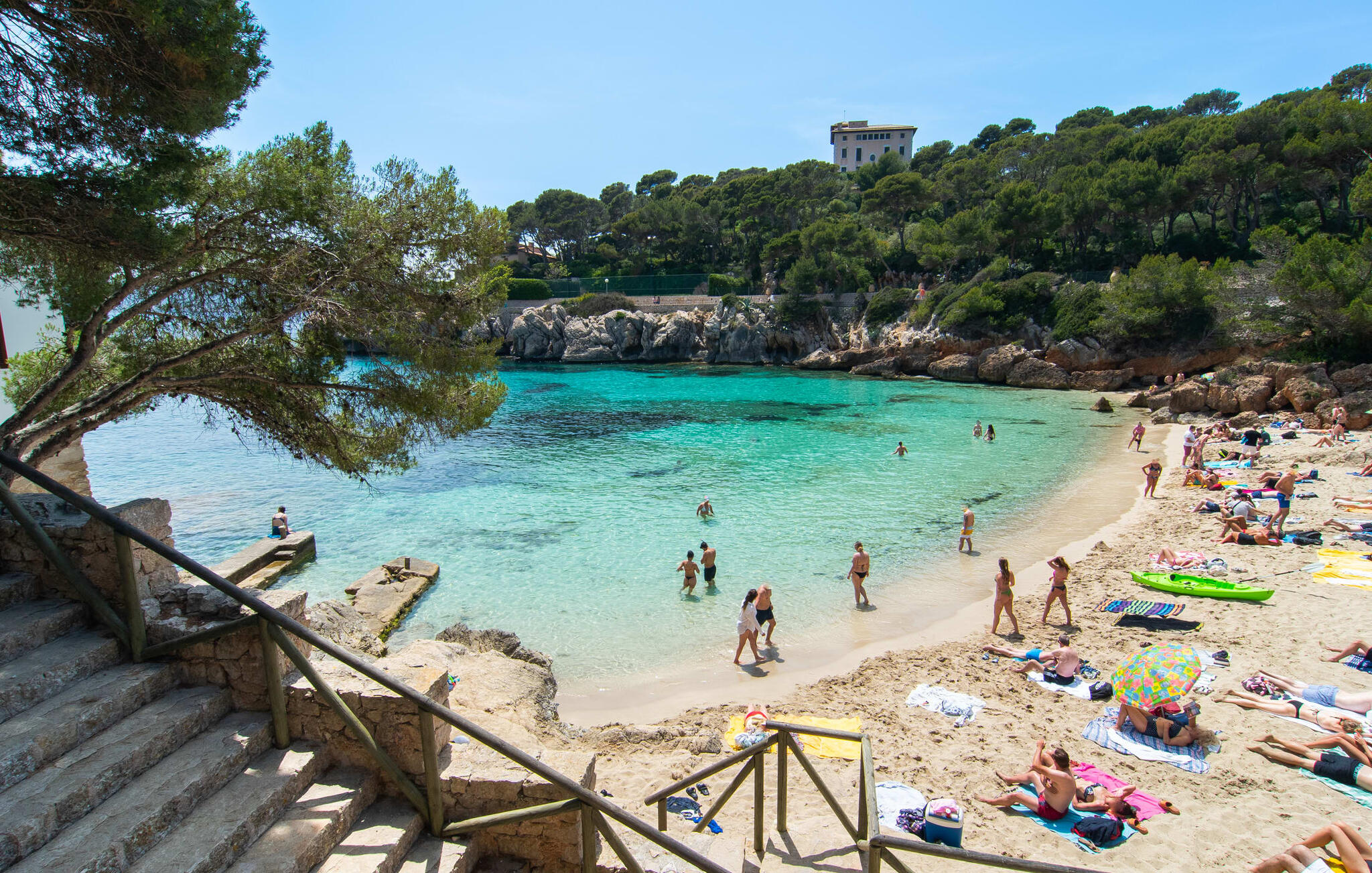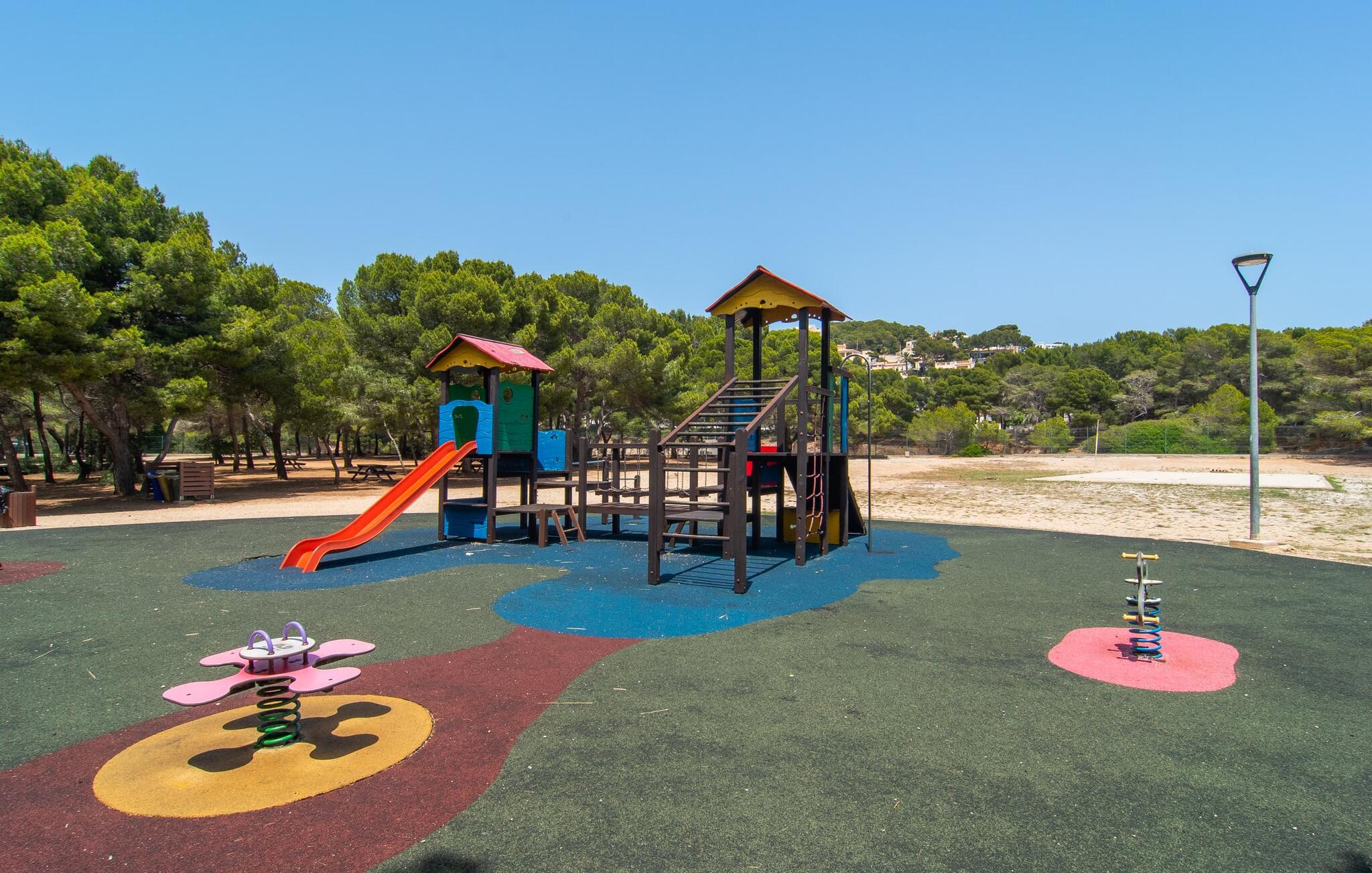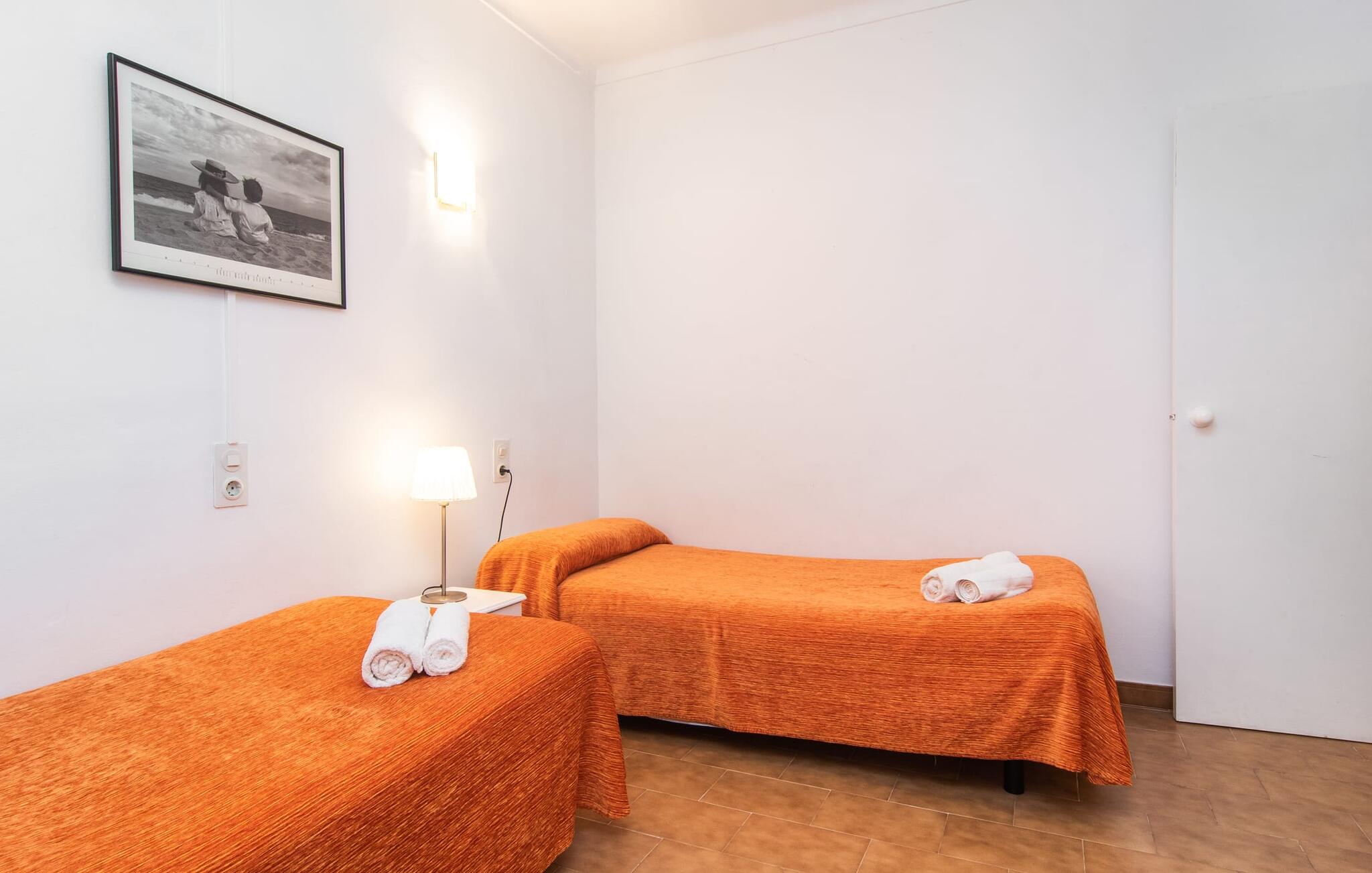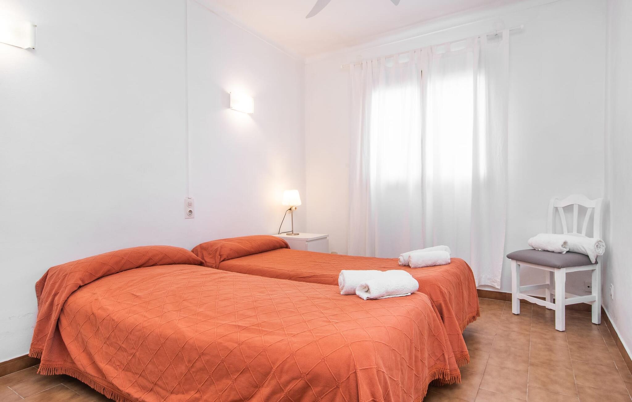 Een raam van vloer tot plafond vormt de overgang tussen buiten en binnen en leidt naar de betegelde open ruimte waar wonen, eten en koken zijn ondergebracht. Een bank en televisie zijn hier net zo vanzelfsprekend als een eettafel voor de maaltijden binnenshuis. Natuurlijk is er ook supersnel draadloos internet beschikbaar. Lichtgekleurde muren en meubels in combinatie met decoratieve muurschilderingen zorgen voor een vriendelijke sfeer. De praktische, volledig uitgeruste keuken is perfect om zelf te koken tijdens je vakantie op Mallorca. Je kunt heerlijk slapen in de twee gezellige slaapkamers, elk uitgerust met een plafondventilator. Een badkamer met douche rondt het wooncomfort af in deze vakantiewoning op ons favoriete eiland. Het vakantiehuis Casa Ángela II Terraza ligt op een stedelijke locatie aan de rand van de wijk Es Pelats. De woonwijk biedt winkel- en eetgelegenheden op loopafstand. De mooie promenade en het havengebied met cafés nodigen uit tot een avondwandeling. Mooie zandbaaien zoals Cala Agulla of Cala Gat bereik je in een paar minuten met de huurauto. Cala Rajada biedt ook aantrekkelijke activiteiten zoals paardrijden of boottochten.