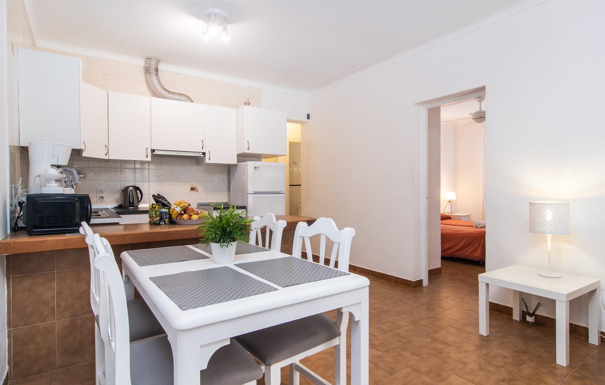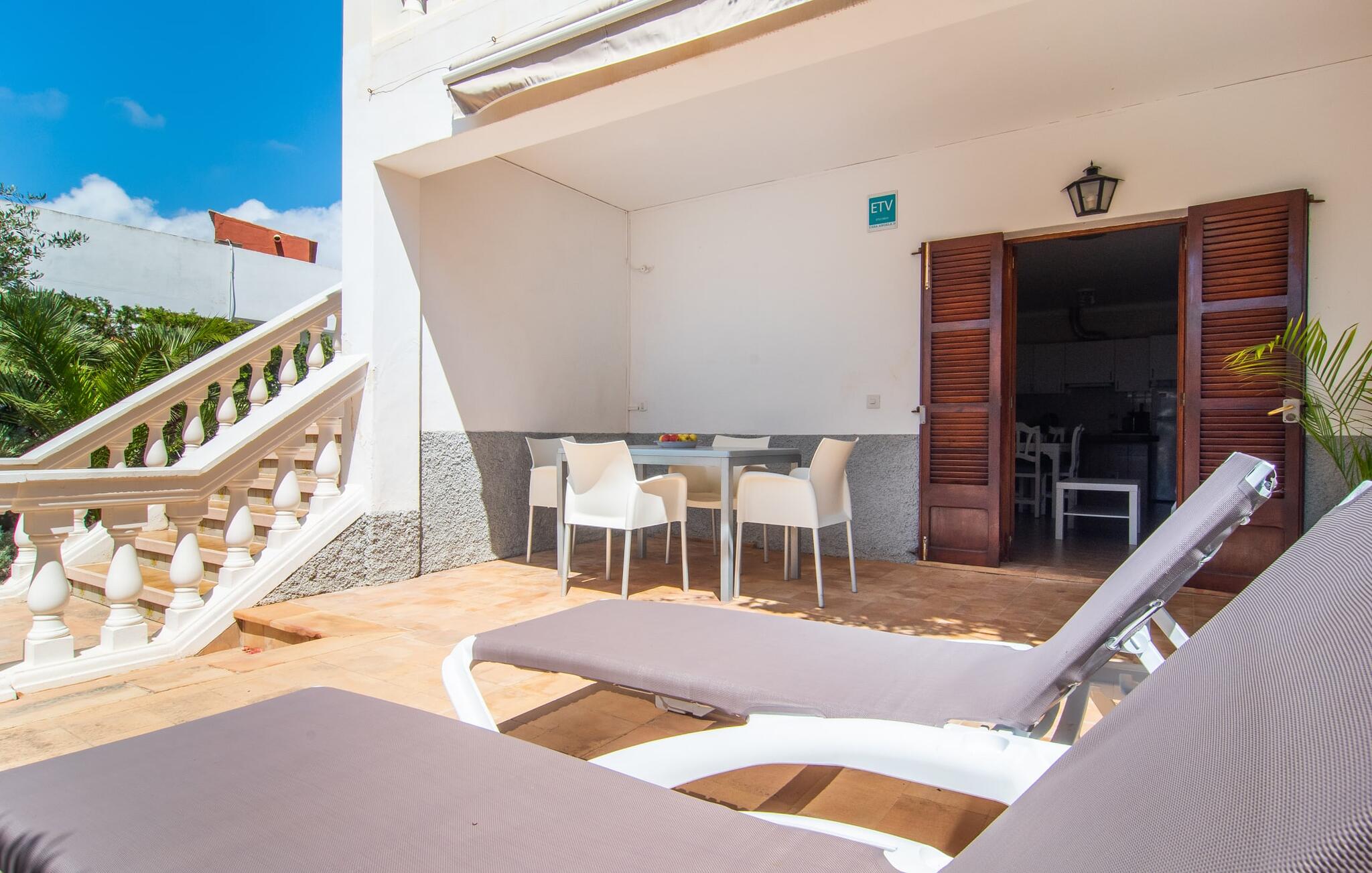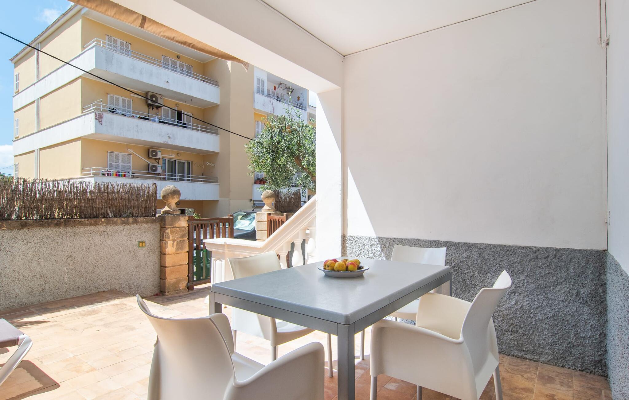 Afgezien van de aantrekkelijke locatie van dit vakantieappartement op Mallorca, kun je een gezellig klein rijk verwachten waar je je volledig privé kunt voelen met maximaal vier vakantiegangers. Het gemeubileerde terras is een heerlijke plek voor gezelligheid, bijvoorbeeld bij het ontbijt of een barbecue `s avonds. Op de wekelijkse markt kun je bijvoorbeeld verse ingrediënten halen. Afhankelijk van de stand van de zon en je individuele wensen, kun je de eettafel gewoon direct onder de mediterrane hemel zetten of onder een afdak dicht bij het huis. Vanaf hier zijn de afstanden naar het woongedeelte aangenaam kort.