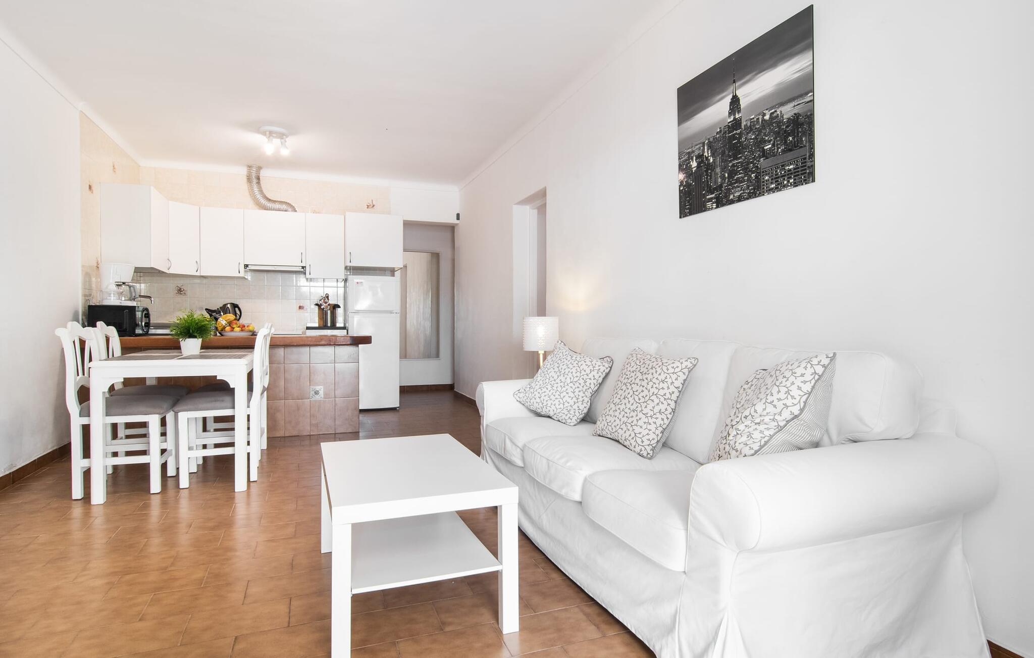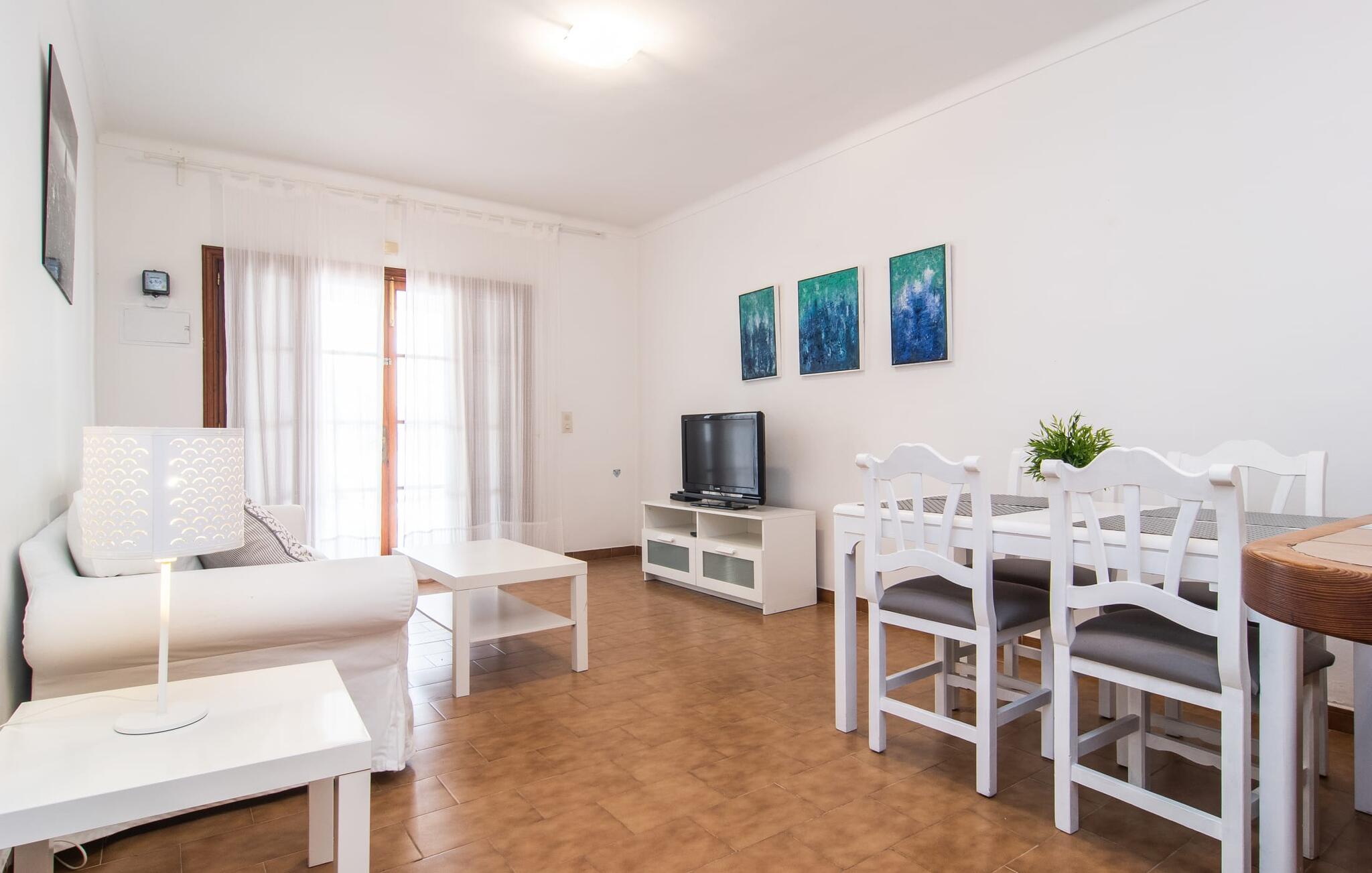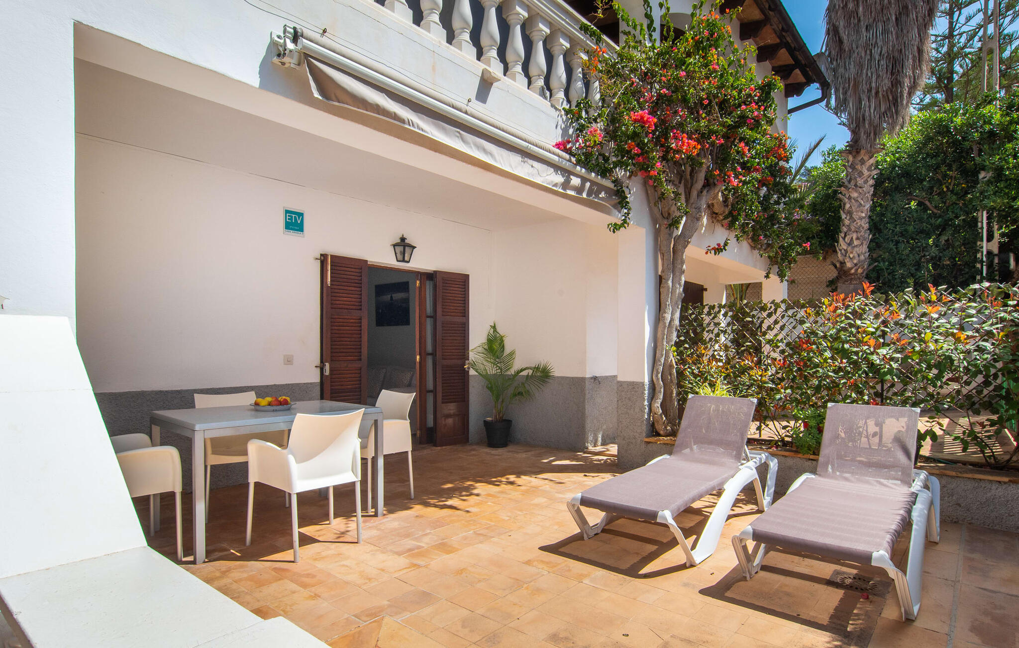 Afgezien van de aantrekkelijke locatie van dit vakantieappartement op Mallorca, kun je een gezellig klein rijk verwachten waar je je volledig privé kunt voelen met maximaal vier vakantiegangers. Het gemeubileerde terras is een heerlijke plek voor gezelligheid, bijvoorbeeld bij het ontbijt of een barbecue `s avonds. Op de wekelijkse markt kun je bijvoorbeeld verse ingrediënten halen. Afhankelijk van de stand van de zon en je individuele wensen, kun je de eettafel gewoon direct onder de mediterrane hemel zetten of onder een afdak dicht bij het huis. Vanaf hier zijn de afstanden naar het woongedeelte aangenaam kort.