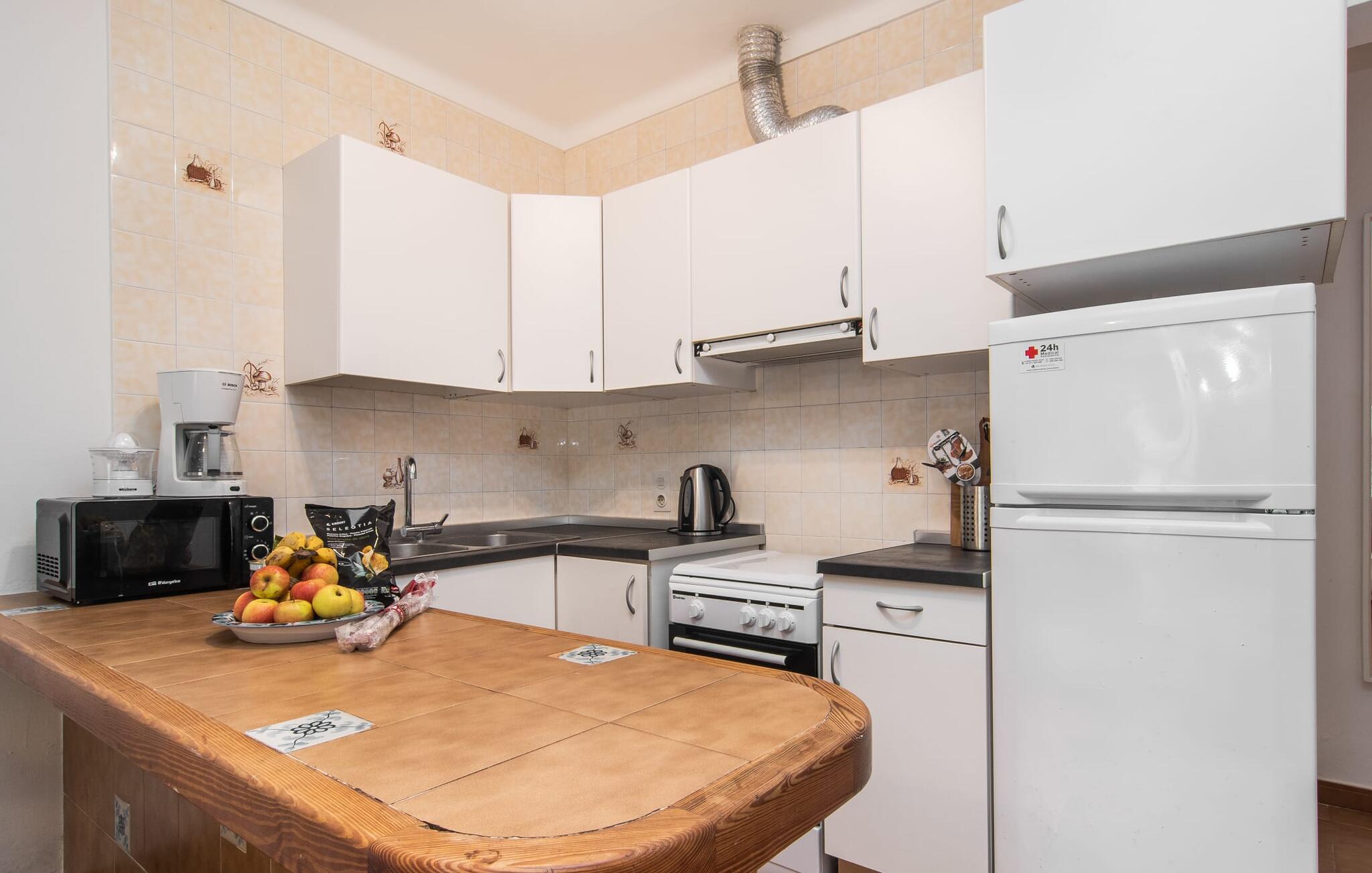 Keuken heeft warm/koud waterGasfornuis en ovenKoelkastKoffiezetapparaatMagnetronWasmachine1 TVDuitse TVToilet: warm en koud water