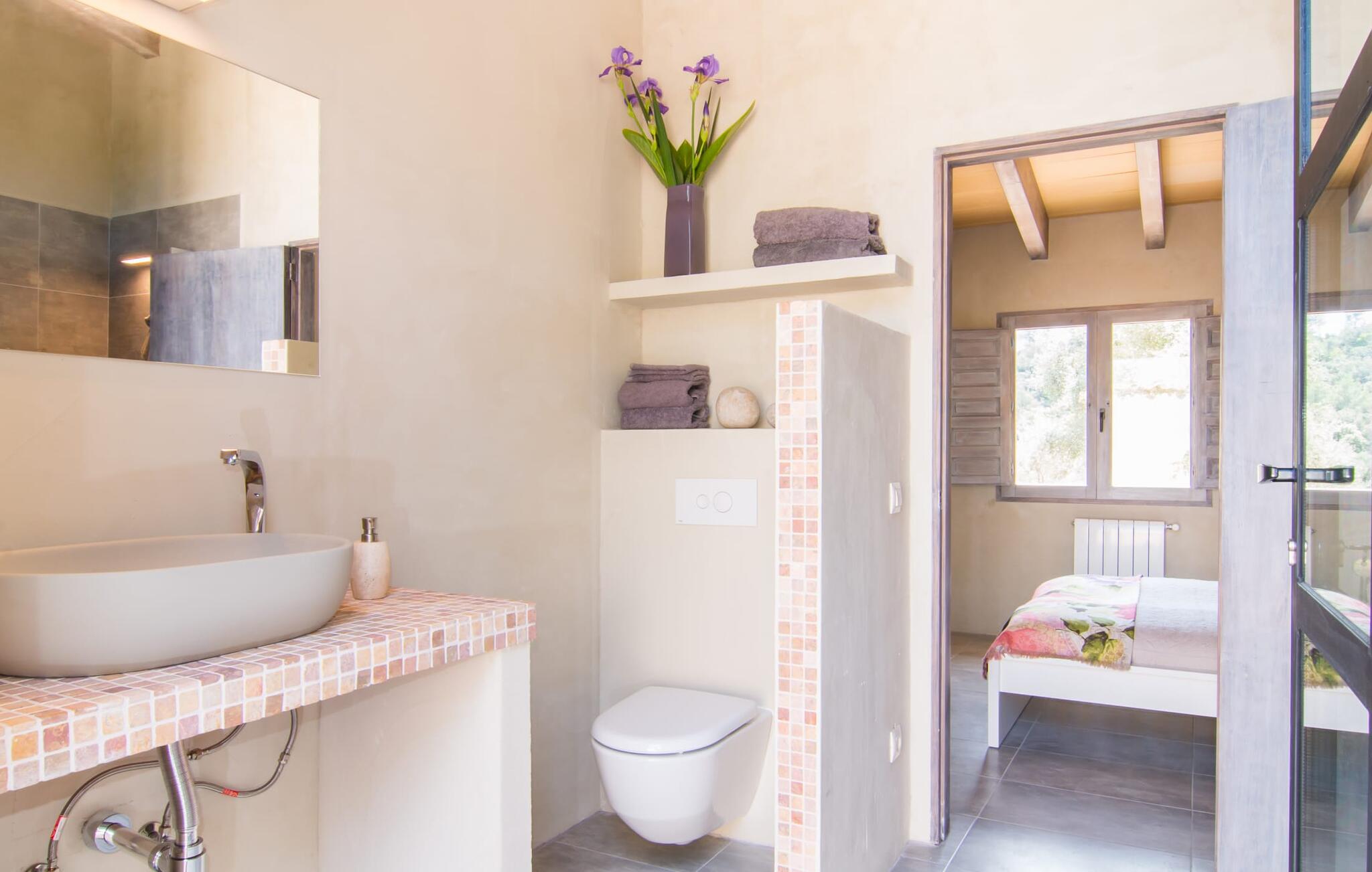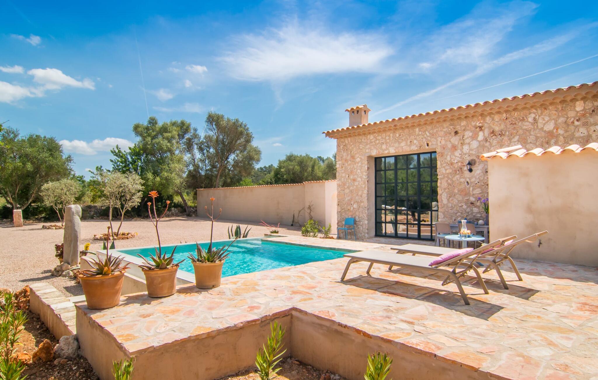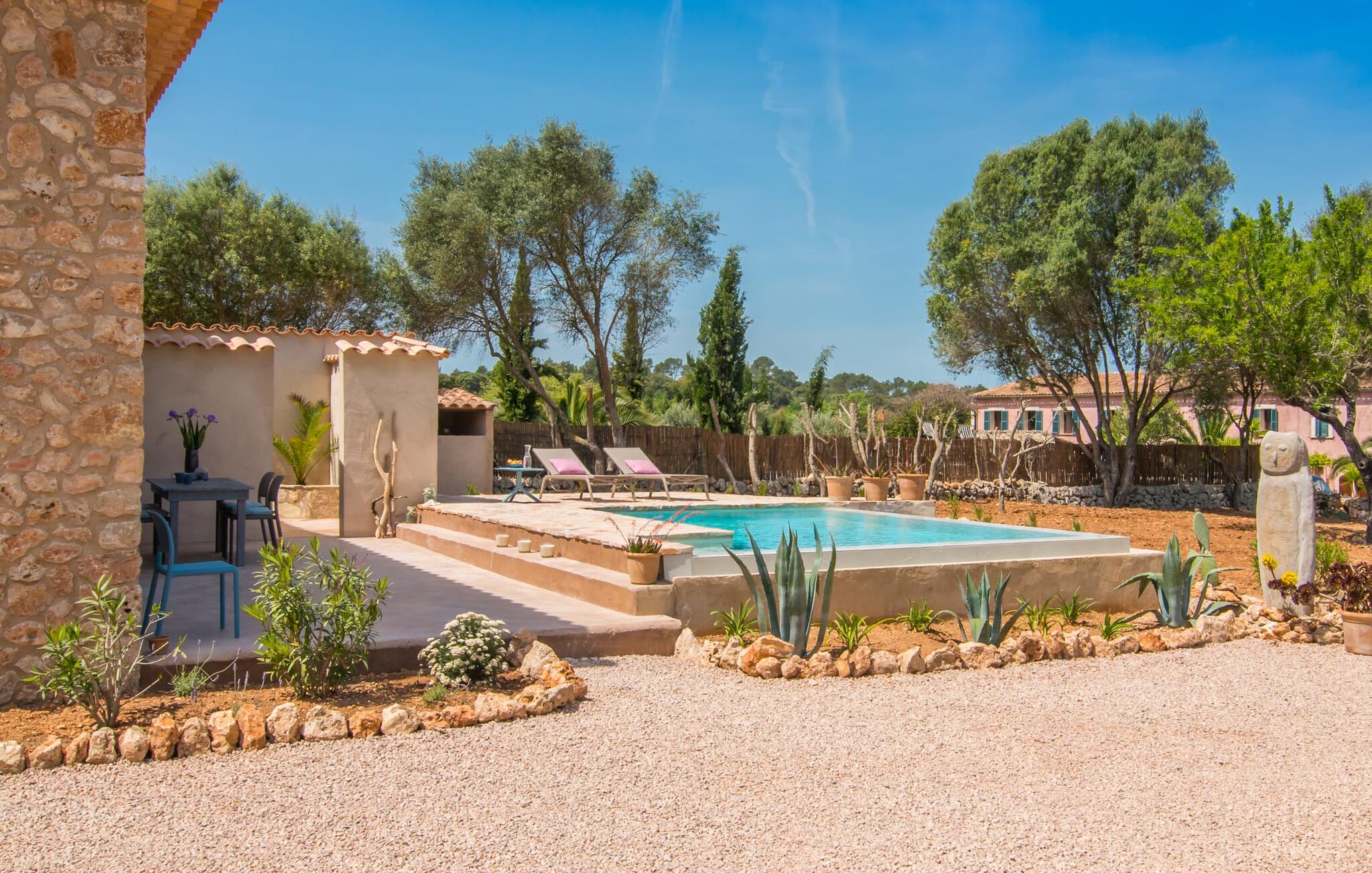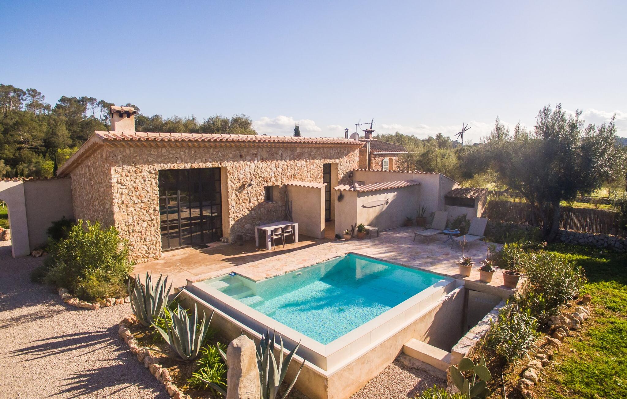 Villa "Cascada" is een toevluchtsoord voor alleen volwassenen voor wie op zoek is naar rust midden in de natuur, ver weg van de drukte van de toeristische drukte. De villa ligt op een rustige locatie op een perceel van 30.000 m², is gebouwd in traditionele Mallorcaanse stijl met een natuurstenen gevel en combineert milieuvriendelijke kenmerken met modern comfort. De villa is ideaal voor koppels en biedt een gezellige leefruimte in een 400 jaar oud pand.