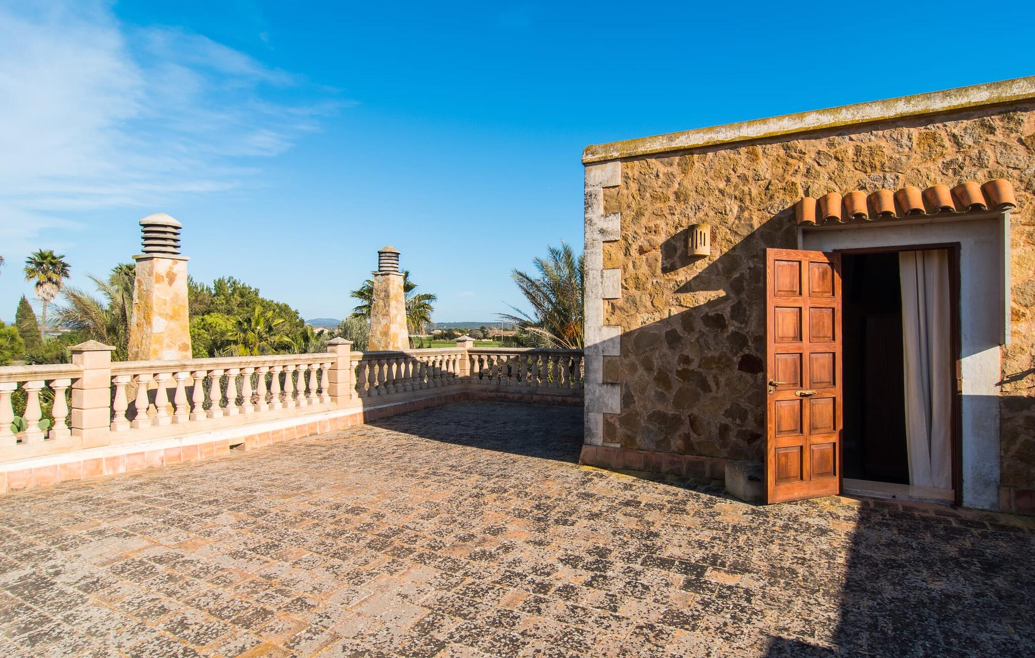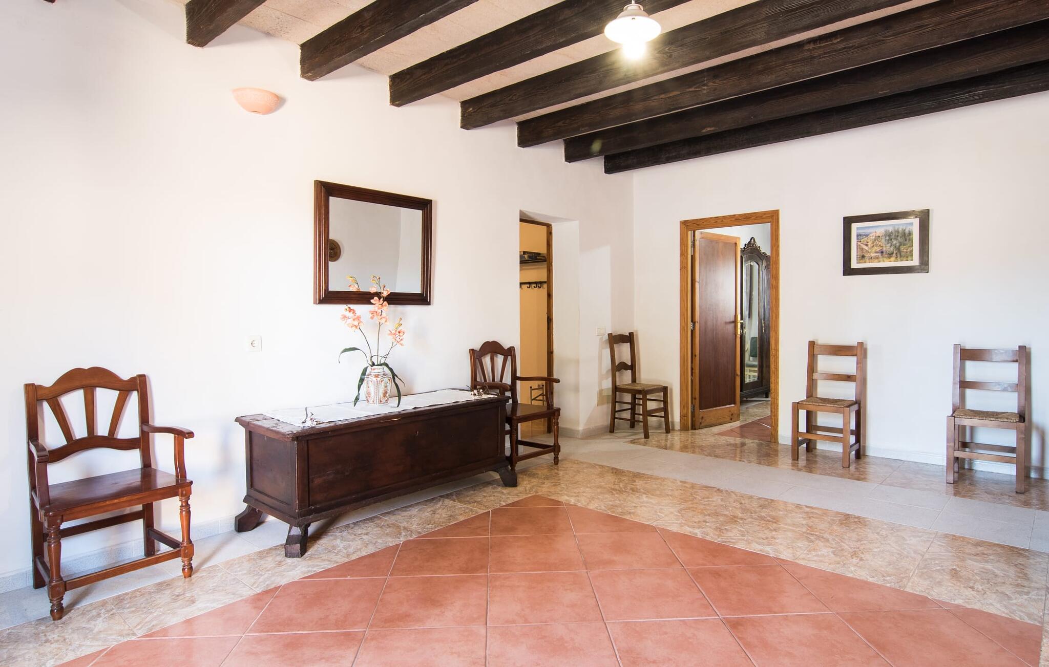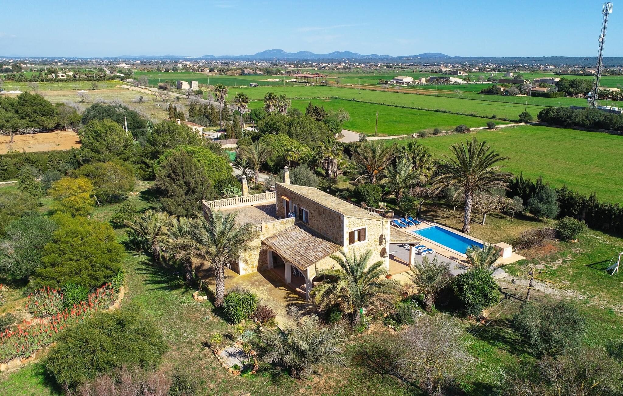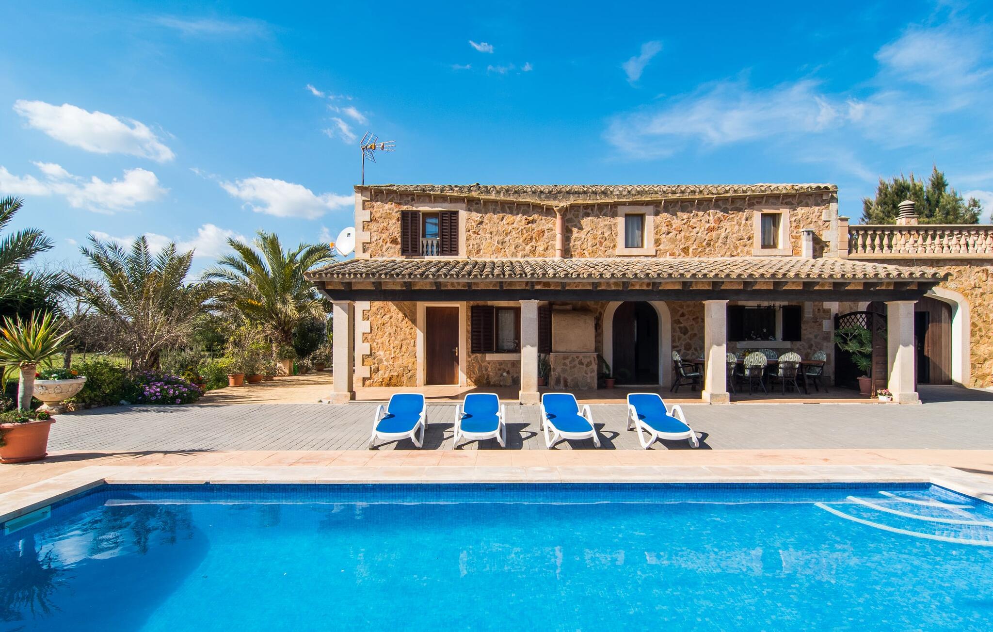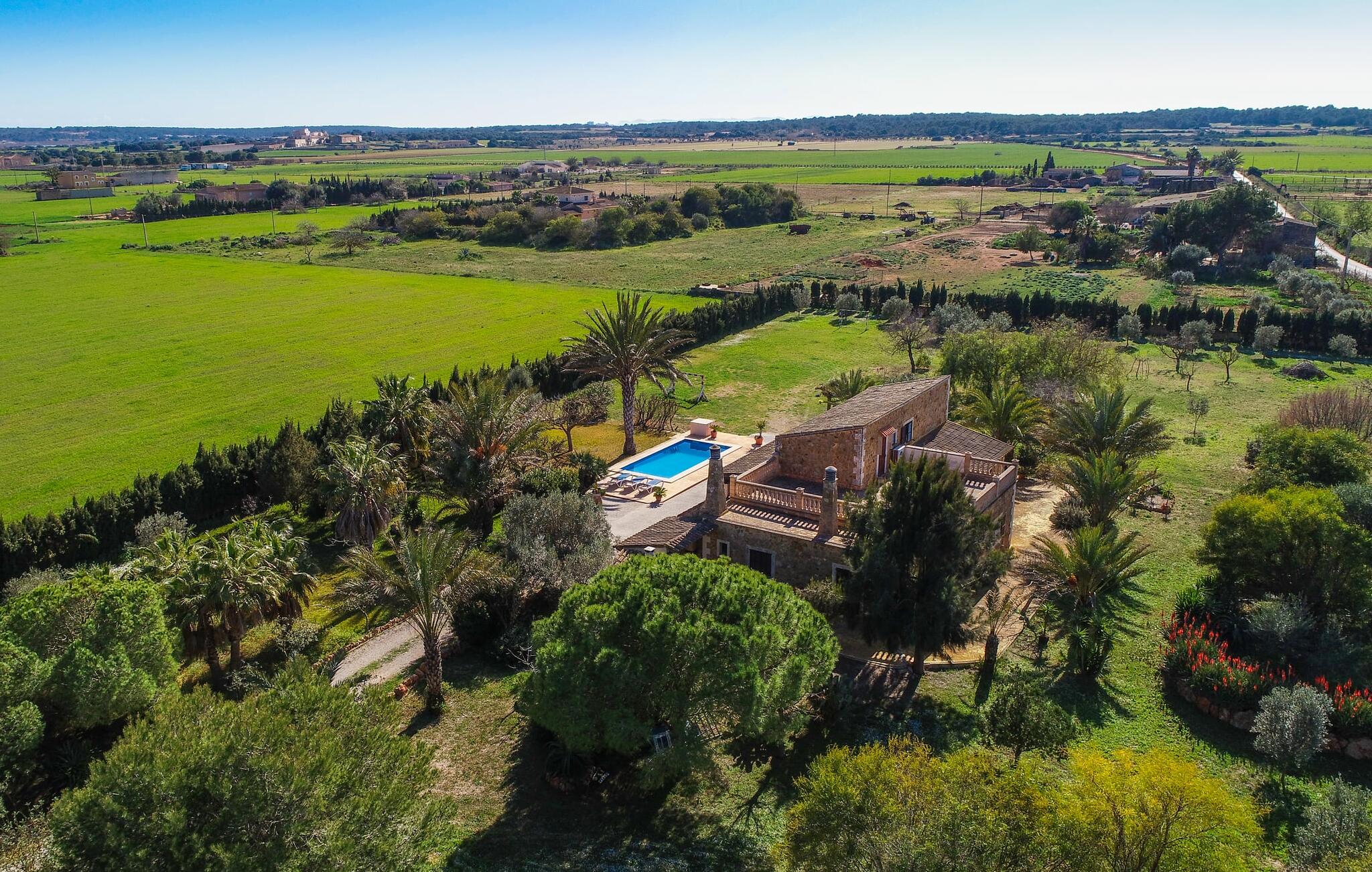 Als je kiest voor Villa Es Revolt de Sa Barrala, kun je een allround, down-to-earth huis verwachten met een zeer goed onderhouden, aantrekkelijke buitenruimte. Het zwembad naast de palmboom, dat tropische flair uitstraalt, is met 6 x 4 meter groot genoeg om een paar baantjes te trekken. Er ligt zelfs een voetbalveld vlak naast, dat niet alleen populair zal zijn bij de jongste reizigers. Het tuinontwerp maakt indruk met veel variatie - mediterrane bomen, struiken en gazons vormen een harmonieus geheel dat volop ontspanning biedt. De luchtfoto`s van de villa laten zien hoe groen de omgeving is. Dit gaat gepaard met veel privacy, waarvan je kunt genieten bij sfeervolle barbecues. De zijuitbouw is hier perfect voor, met een stevige gemetselde barbecue die volop ruimte biedt voor je lekkernijen. Die kun je vervolgens nuttigen op bijvoorbeeld het overdekte terras, waar een rustieke houten tafel uitnodigt om plaats te nemen. Het dakterras is bijzonder zonovergoten. Je kunt het bereiken vanaf de eerste verdieping. Er zijn ook ligstoelen bij het zwembad, zodat je kunt zonnebaden na je dagelijkse zwempartij.