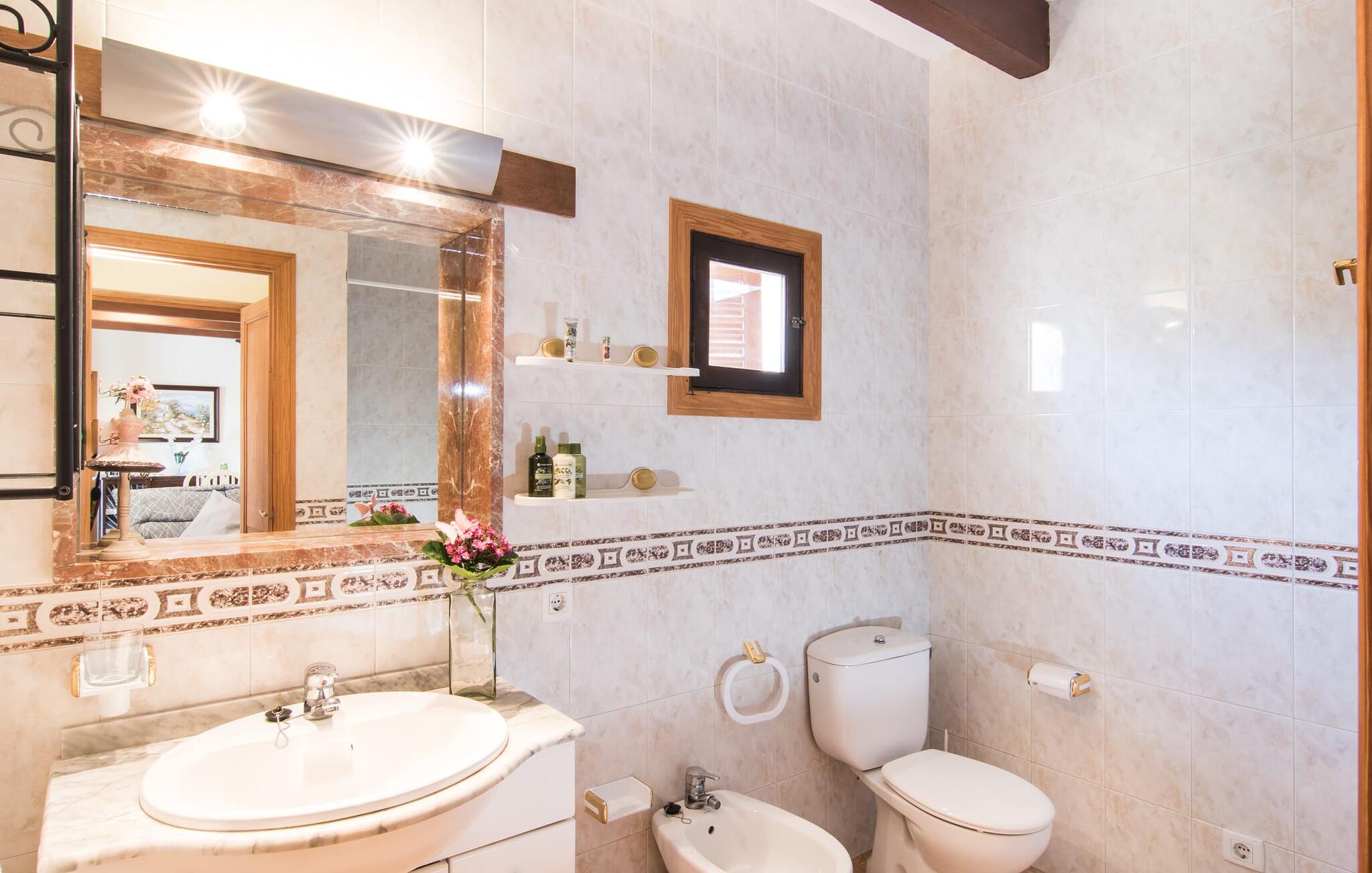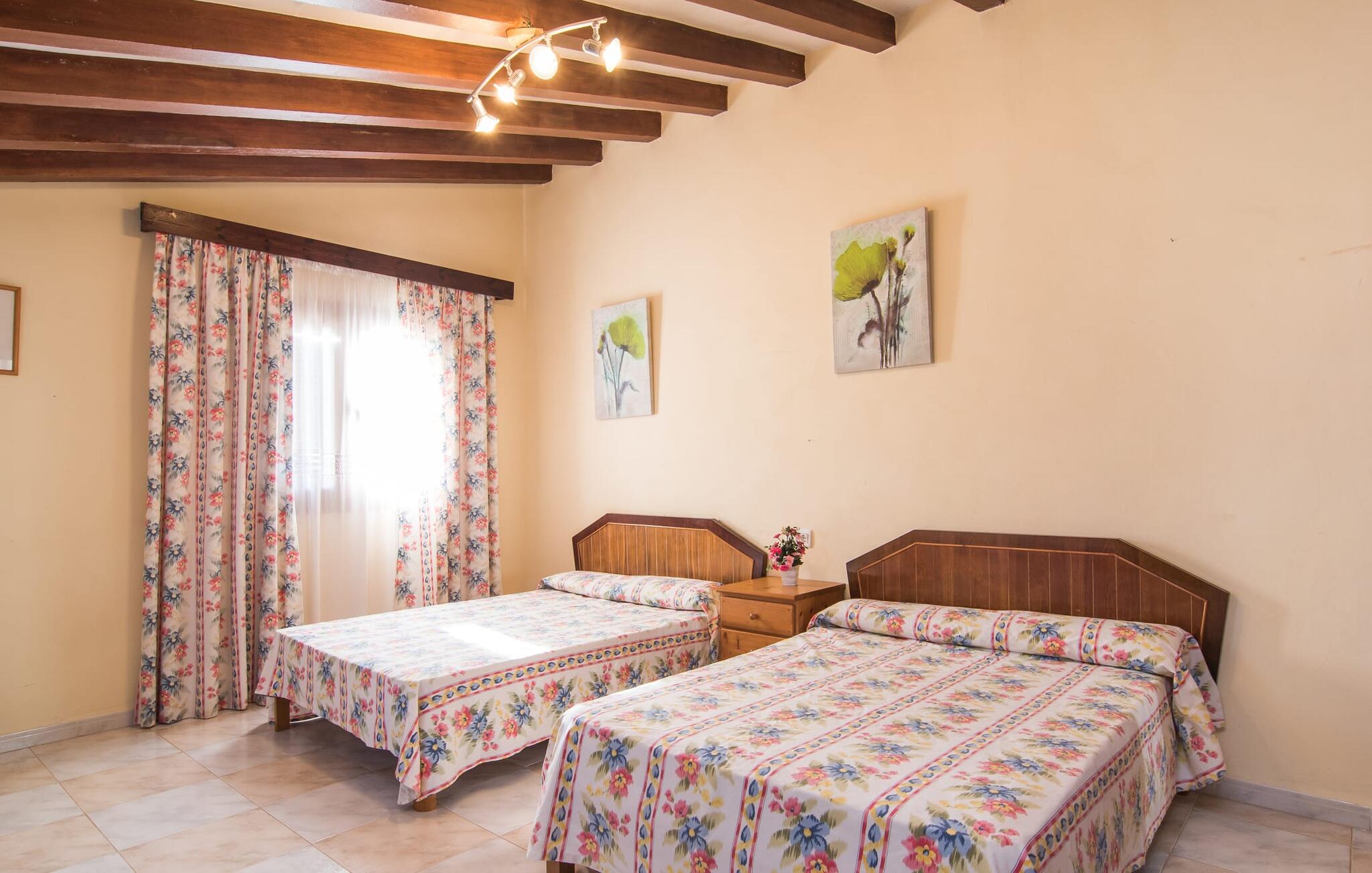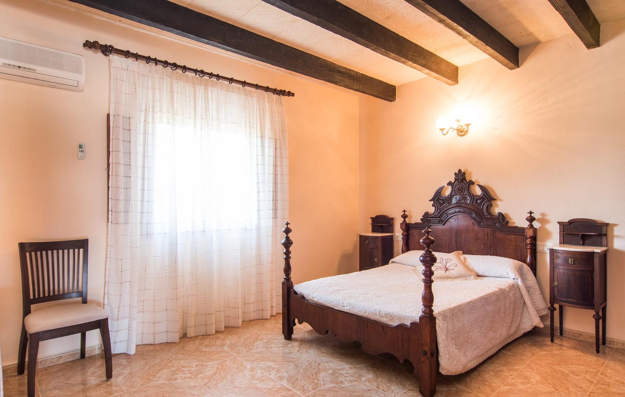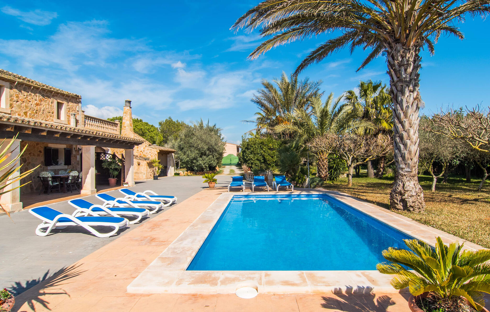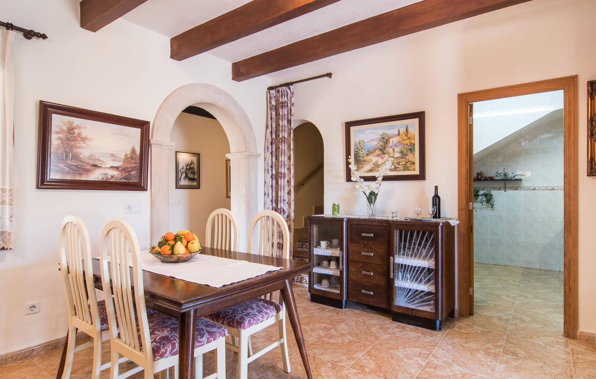 Als je kiest voor Villa Es Revolt de Sa Barrala, kun je een allround, down-to-earth huis verwachten met een zeer goed onderhouden, aantrekkelijke buitenruimte. Het zwembad naast de palmboom, dat tropische flair uitstraalt, is met 6 x 4 meter groot genoeg om een paar baantjes te trekken. Er ligt zelfs een voetbalveld vlak naast, dat niet alleen populair zal zijn bij de jongste reizigers. Het tuinontwerp maakt indruk met veel variatie - mediterrane bomen, struiken en gazons vormen een harmonieus geheel dat volop ontspanning biedt. De luchtfoto`s van de villa laten zien hoe groen de omgeving is. Dit gaat gepaard met veel privacy, waarvan je kunt genieten bij sfeervolle barbecues. De zijuitbouw is hier perfect voor, met een stevige gemetselde barbecue die volop ruimte biedt voor je lekkernijen. Die kun je vervolgens nuttigen op bijvoorbeeld het overdekte terras, waar een rustieke houten tafel uitnodigt om plaats te nemen. Het dakterras is bijzonder zonovergoten. Je kunt het bereiken vanaf de eerste verdieping. Er zijn ook ligstoelen bij het zwembad, zodat je kunt zonnebaden na je dagelijkse zwempartij.