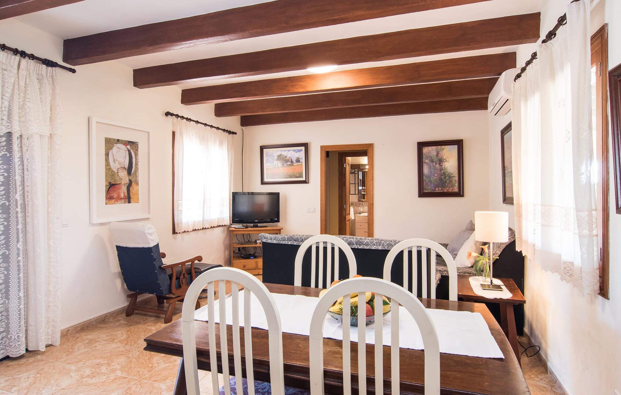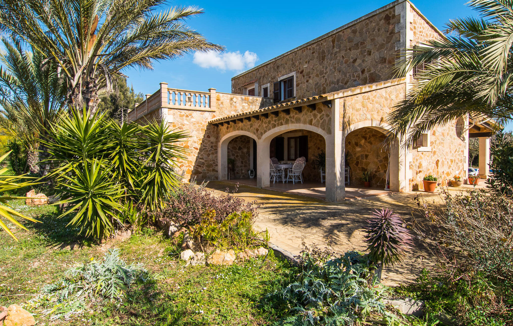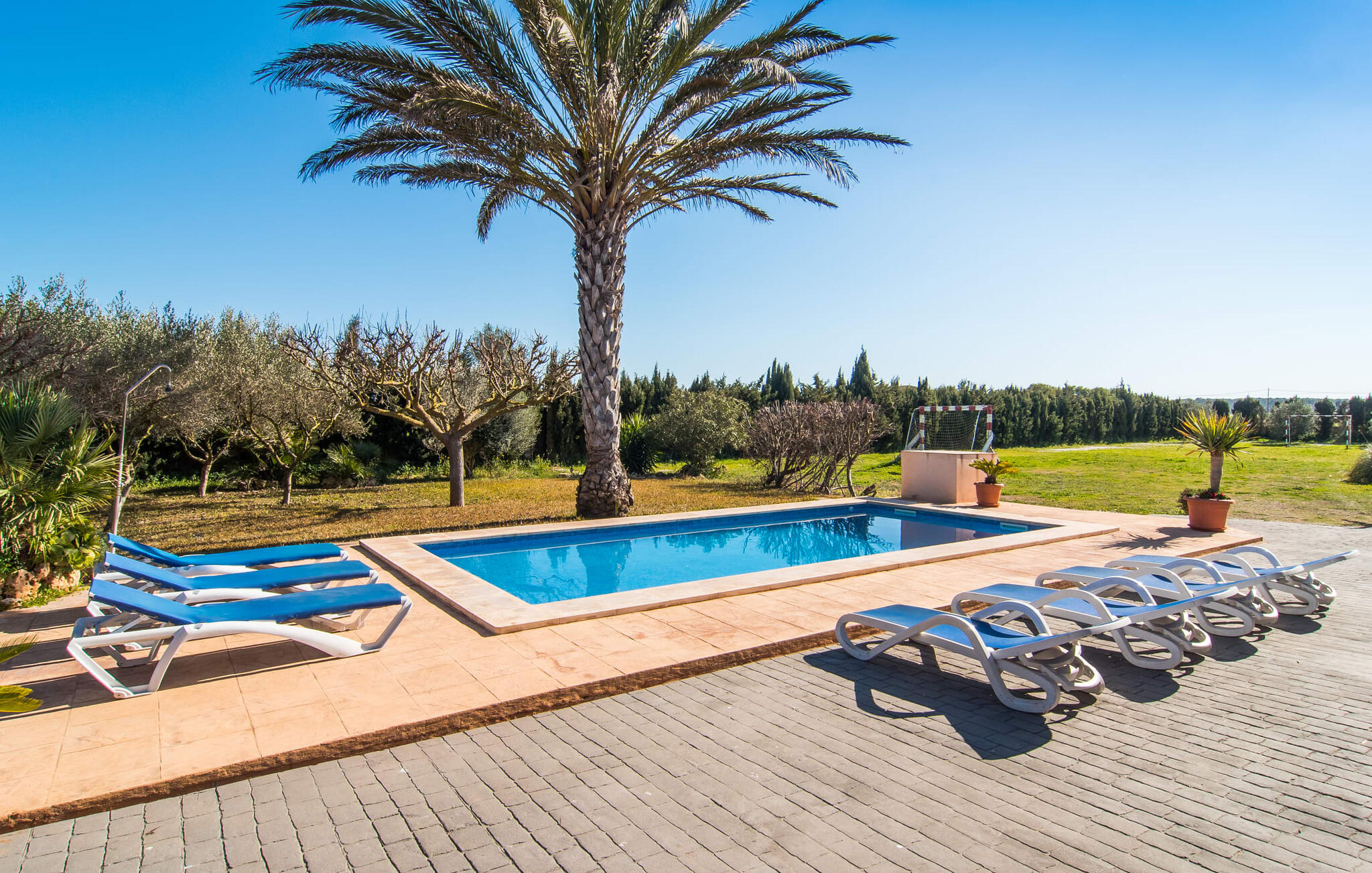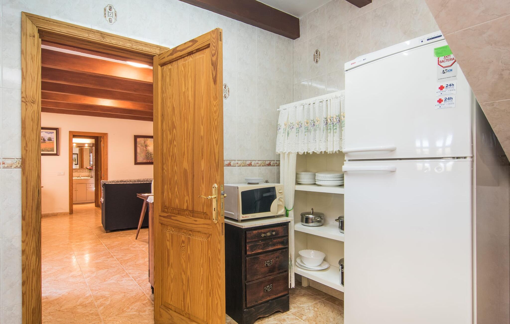 Als je kiest voor Villa Es Revolt de Sa Barrala, kun je een allround, down-to-earth huis verwachten met een zeer goed onderhouden, aantrekkelijke buitenruimte. Het zwembad naast de palmboom, dat tropische flair uitstraalt, is met 6 x 4 meter groot genoeg om een paar baantjes te trekken. Er ligt zelfs een voetbalveld vlak naast, dat niet alleen populair zal zijn bij de jongste reizigers. Het tuinontwerp maakt indruk met veel variatie - mediterrane bomen, struiken en gazons vormen een harmonieus geheel dat volop ontspanning biedt. De luchtfoto`s van de villa laten zien hoe groen de omgeving is. Dit gaat gepaard met veel privacy, waarvan je kunt genieten bij sfeervolle barbecues. De zijuitbouw is hier perfect voor, met een stevige gemetselde barbecue die volop ruimte biedt voor je lekkernijen. Die kun je vervolgens nuttigen op bijvoorbeeld het overdekte terras, waar een rustieke houten tafel uitnodigt om plaats te nemen. Het dakterras is bijzonder zonovergoten. Je kunt het bereiken vanaf de eerste verdieping. Er zijn ook ligstoelen bij het zwembad, zodat je kunt zonnebaden na je dagelijkse zwempartij.