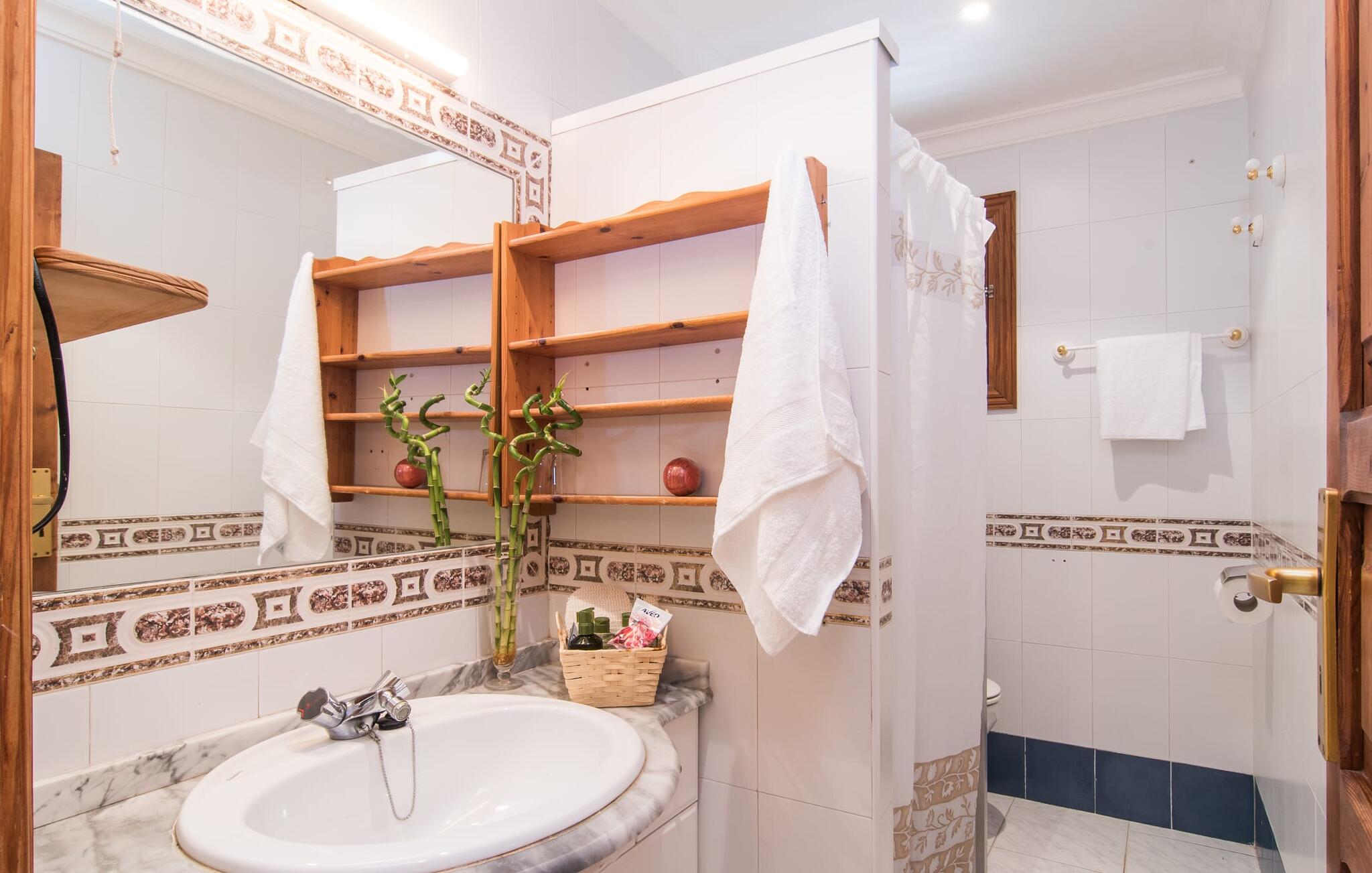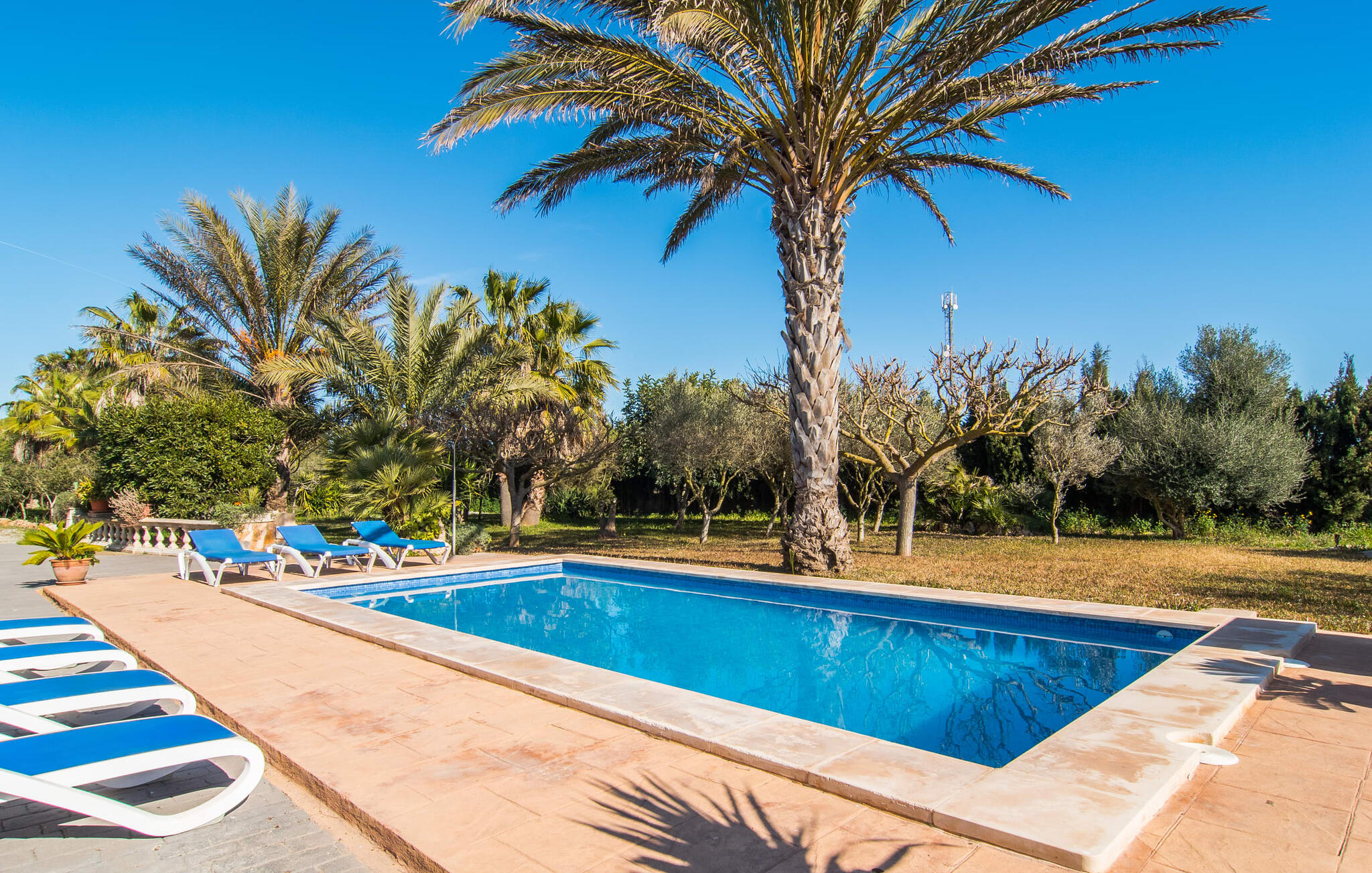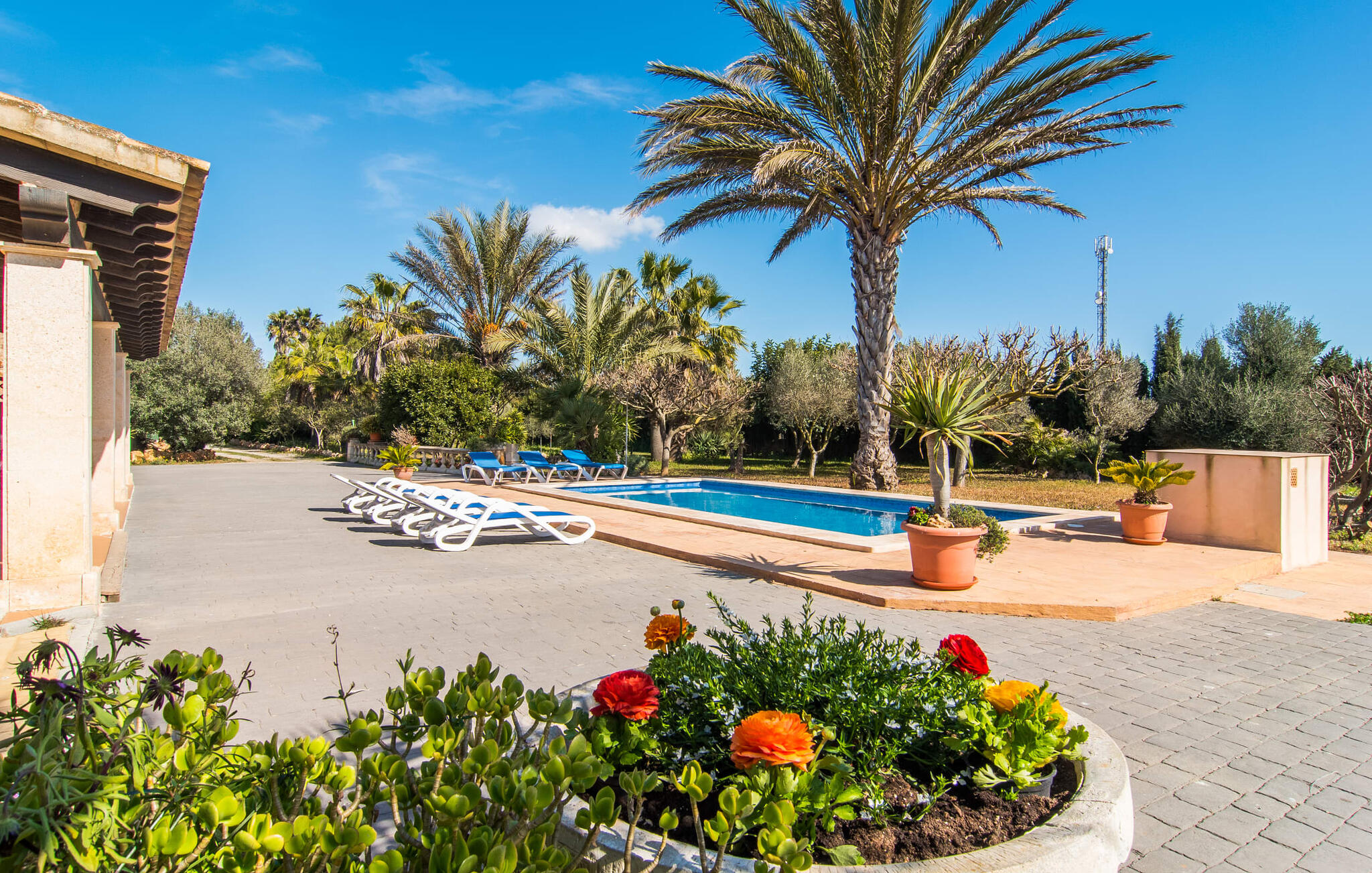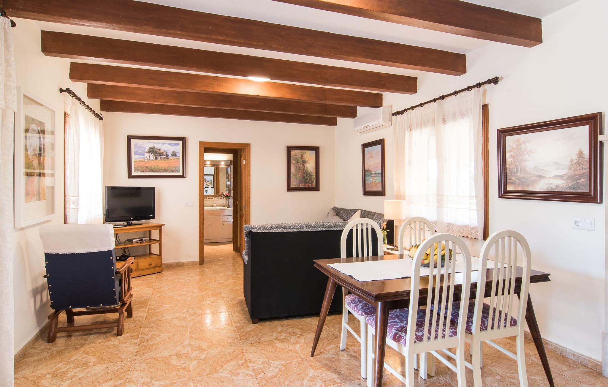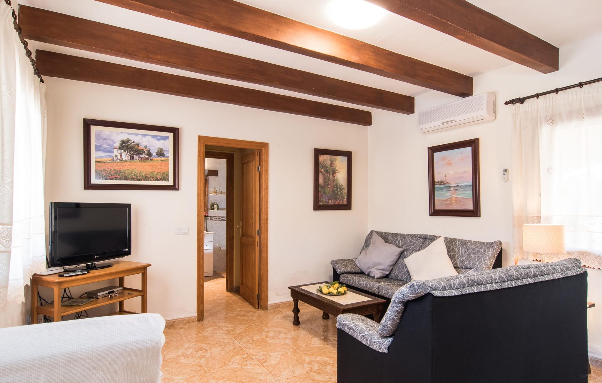 Als je kiest voor Villa Es Revolt de Sa Barrala, kun je een allround, down-to-earth huis verwachten met een zeer goed onderhouden, aantrekkelijke buitenruimte. Het zwembad naast de palmboom, dat tropische flair uitstraalt, is met 6 x 4 meter groot genoeg om een paar baantjes te trekken. Er ligt zelfs een voetbalveld vlak naast, dat niet alleen populair zal zijn bij de jongste reizigers. Het tuinontwerp maakt indruk met veel variatie - mediterrane bomen, struiken en gazons vormen een harmonieus geheel dat volop ontspanning biedt. De luchtfoto`s van de villa laten zien hoe groen de omgeving is. Dit gaat gepaard met veel privacy, waarvan je kunt genieten bij sfeervolle barbecues. De zijuitbouw is hier perfect voor, met een stevige gemetselde barbecue die volop ruimte biedt voor je lekkernijen. Die kun je vervolgens nuttigen op bijvoorbeeld het overdekte terras, waar een rustieke houten tafel uitnodigt om plaats te nemen. Het dakterras is bijzonder zonovergoten. Je kunt het bereiken vanaf de eerste verdieping. Er zijn ook ligstoelen bij het zwembad, zodat je kunt zonnebaden na je dagelijkse zwempartij.