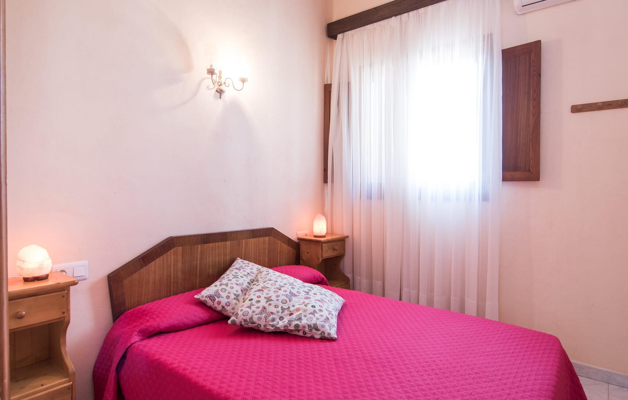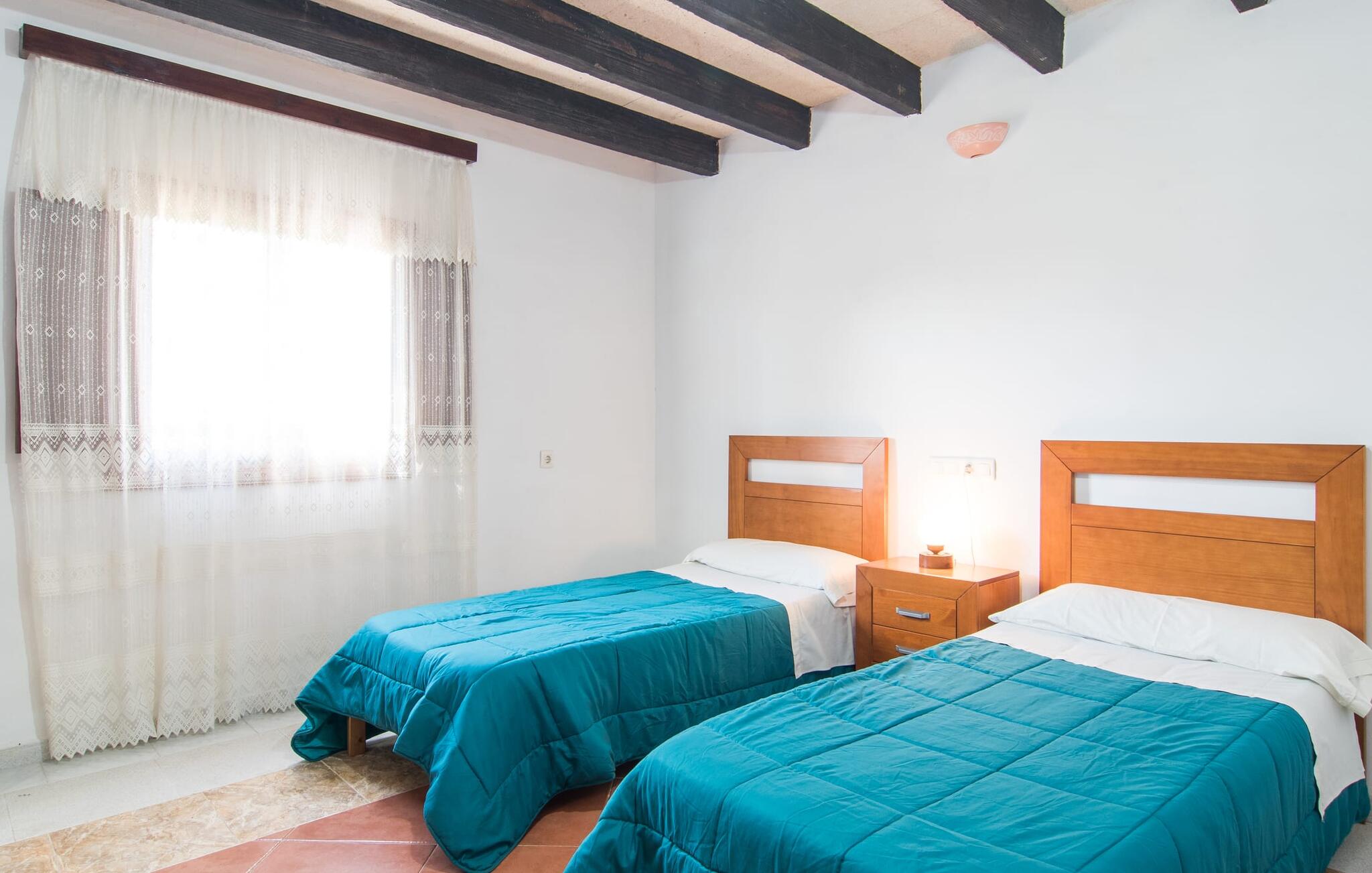 Het huis zelf met zijn typische, uitnodigende stenen gevel straalt een rustieke, gezellige flair uit, niet in het minst vanwege de massieve, donkerbruine houten balken aan de plafonds. De airconditioning zorgt voor aangename temperaturen, zodat je zelfs bij het bereiden van uitgebreide gerechten in de comfortabel uitgeruste keuken niet in het zweet zult uitbreken. In de woonkamer met twee banken en een zeer comfortabele fauteuil kun je genieten van tv-programma`s van thuis, dankzij de moderne satelliettechnologie. De schilderijen aan de muren tonen de caleidoscoop van prachtige natuurlijke landschappen die in overvloed aanwezig zijn op het eiland en wachten om door jou ontdekt te worden. Om goed uitgerust te zijn voor zo`n excursie, biedt deze villa vier slaapkamers. Op de begane grond zijn er twee slaapkamers, een met twee eenpersoonsbedden, de andere met een tweepersoonsbed. Hetzelfde geldt voor de bovenverdieping, hoewel het tweepersoonsbed boven met 1,35 m een beetje smal is, waardoor deze villa ideaal is voor in totaal zeven reizigers. Dankzij de bijkeuken zul je geen problemen hebben met het opbergen van al je boodschappen.