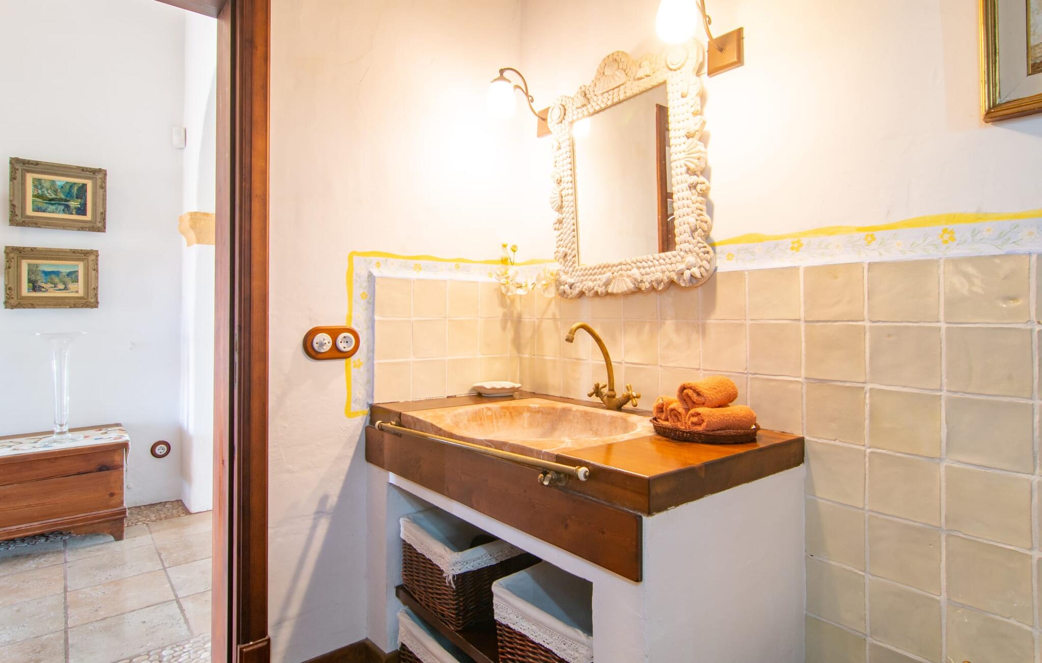 Petra, het slaperige dorpje met zijn goudbruine steengroevehuizen aan de ene kant, Manacor met zijn levendige wekelijkse markt en het bruisende voetgangersgebied aan de andere Er zijn tal van excursiebestemmingen in de omgeving. Je kunt stranddagen doorbrengen in een van de prachtige natuurlijke baaien op ongeveer 30 minuten afstand, in het levendige Porto Cristo of in het idyllische Sa Coma. Actieve vakantiegangers komen ook aan hun trekken in dit gebied, met fiets- en wandelpaden zover het oog reikt. Golfliefhebbers gaan waarschijnlijk naar de golfbaan La Reserva Rotana, op ongeveer 11 kilometer afstand. Goed om te weten: De luchthaven van Palma ligt op ongeveer 45 minuten rijden. De charmante Villa Es Turó ligt in het centrum van Mallorca, ongeveer 4 km ten zuidoosten van Petra. In het wijnstadje vind je verschillende leuke restaurants en bars, evenals supermarkten. Dankzij de ligging vlakbij de snelweg Ma-3320 zijn veel excursiebestemmingen binnen handbereik. Prachtige natuurlijke baaien zoals Cala Varques of Cala d`Es Serral liggen op ongeveer 18 km afstand en zijn perfect voor lange dagen op het strand. Wie op zoek is naar iets meer drukte vindt het allemaal in Porto Cristo of Sa Coma.