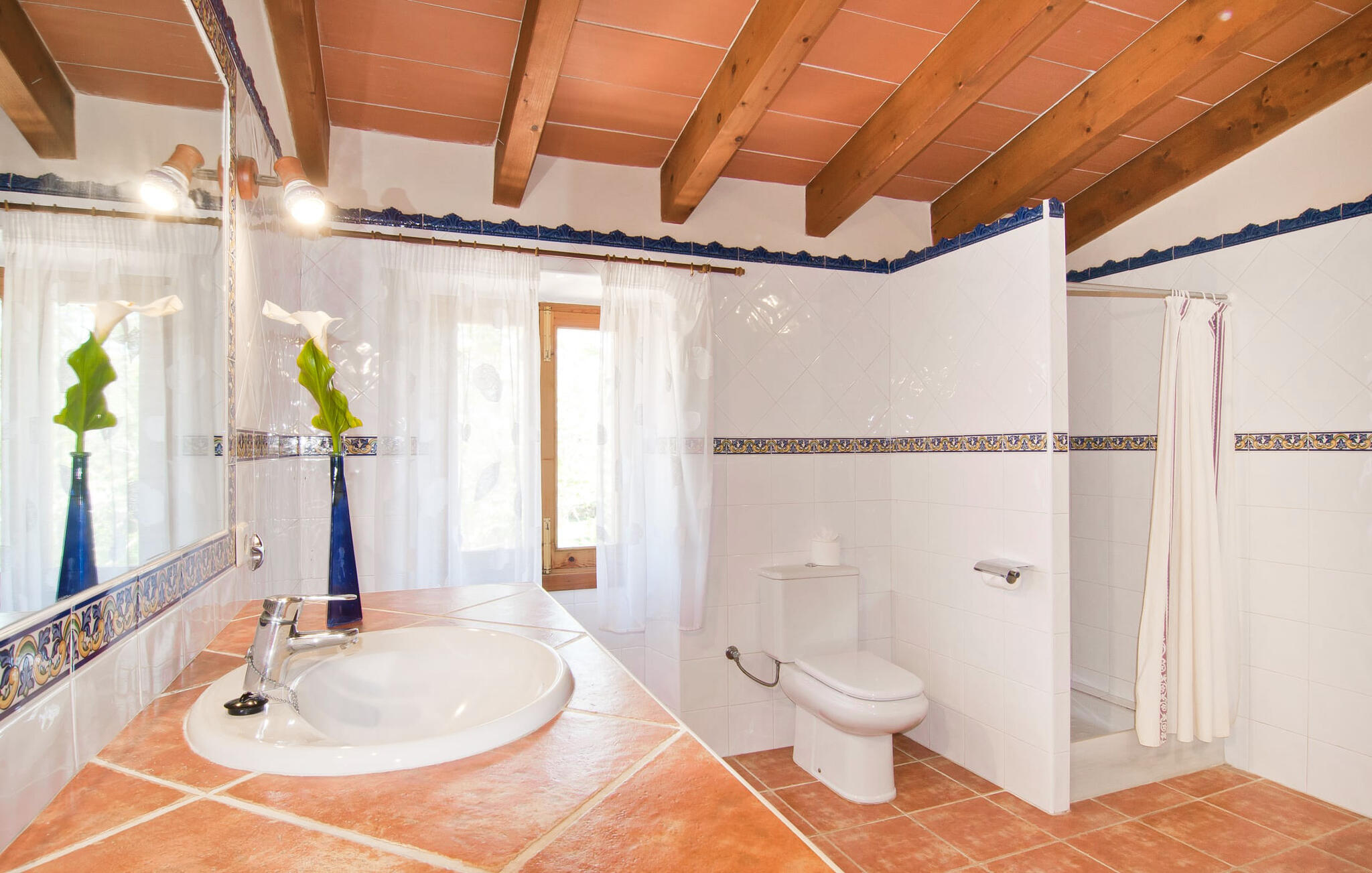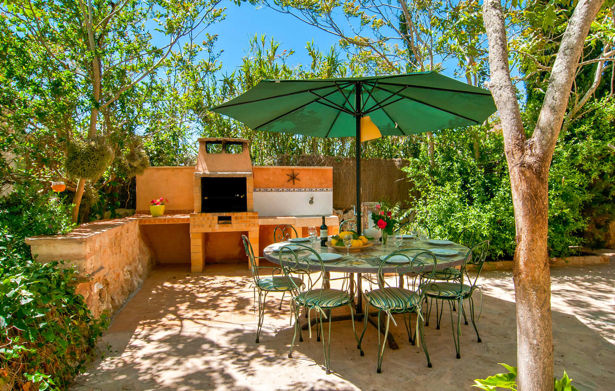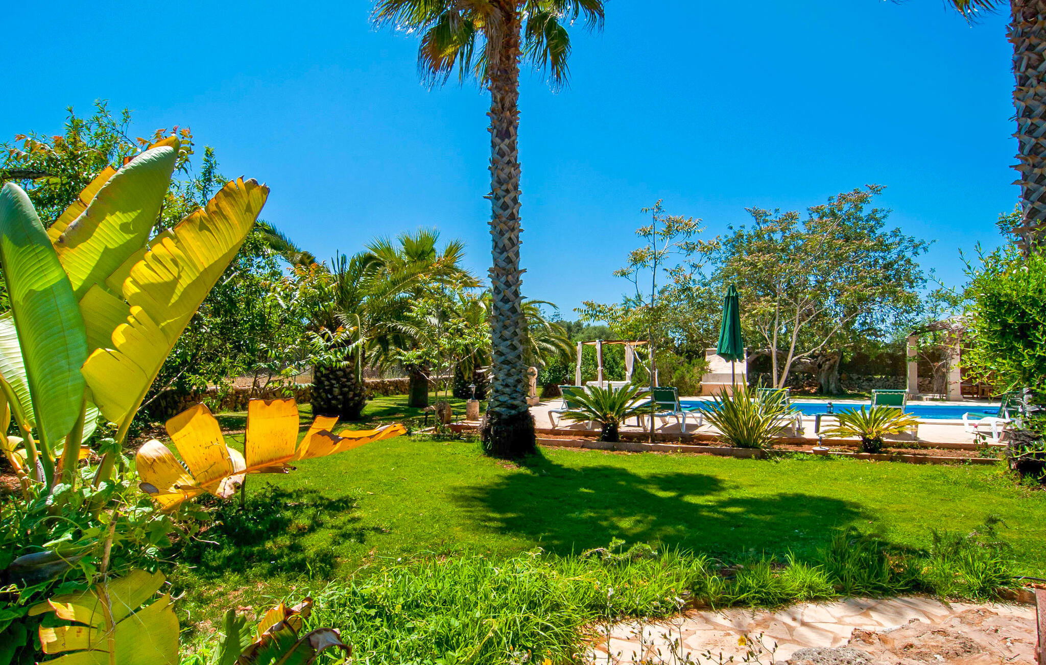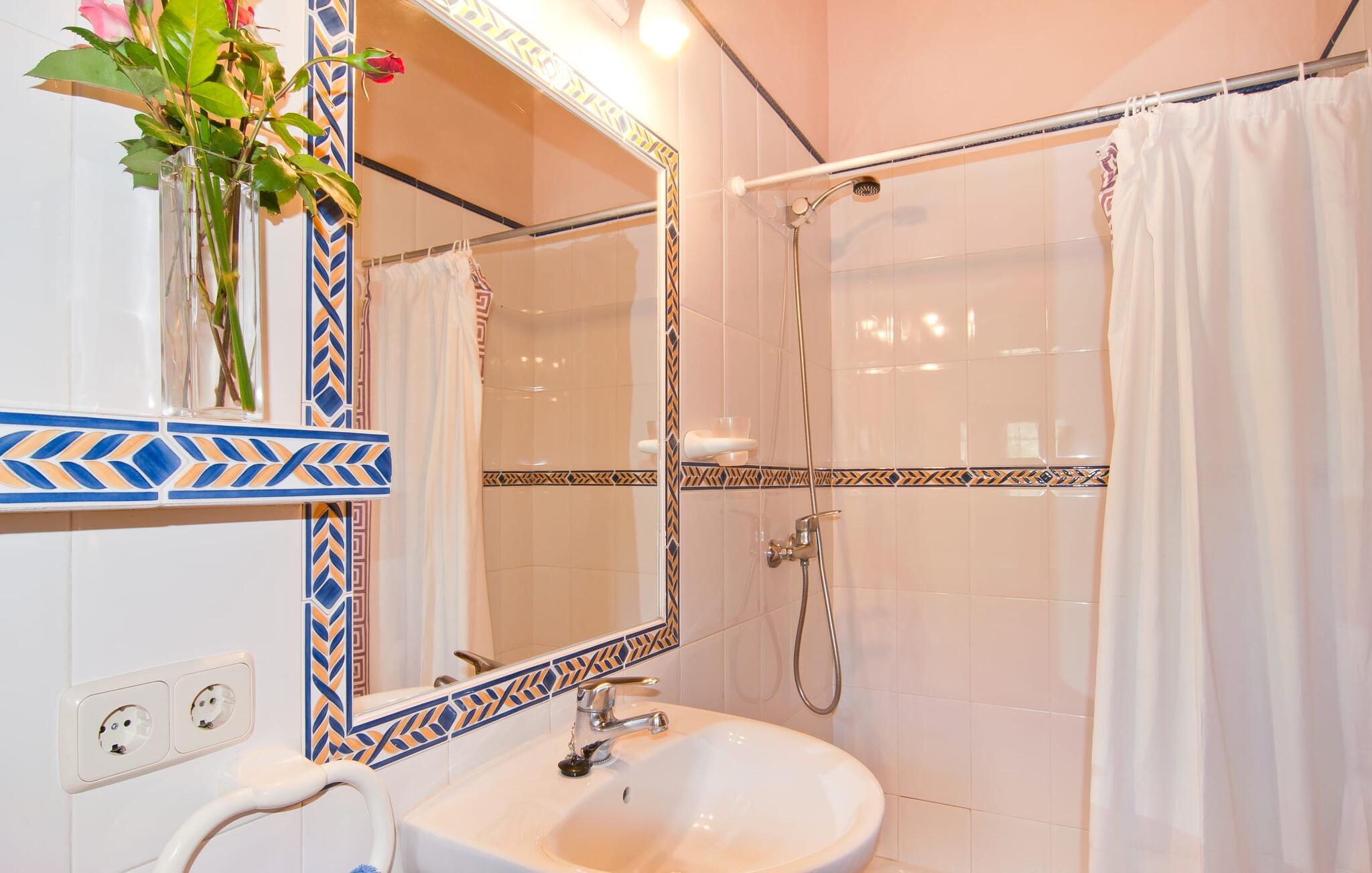 Het huis ligt op het zuiden en is aan de buitenkant bekleed met de traditionele steen uit de streek. Bijna alle kamers hebben zichtbare balken aan het plafond, typisch voor het eiland, die perfect worden gecompenseerd door prachtige tegelvloeren. Het terras leidt direct naar de woon/eetkamer op de begane grond. In de hoek van de kamer, waar de bank en fauteuil staan, is ook de open haard, in wiens warme gloed je uren kunt ontspannen, vooral in de koelere maanden. Samen met de centrale verwarming, die ook in de kelder is geïnstalleerd, zorgt de open haard ervoor dat de temperatuur hier aangenaam blijft, zelfs als het buiten koeler wordt. Als je voorbij de eettafel en de kast in de woonkamer kijkt, zie je de keuken, die volledig is uitgerust met alles wat je nodig hebt om je vakantiehuishouden te runnen. Als je van koken houdt, zul je het hier geweldig vinden. Er zijn ook twee slaapkamers en twee badkamers op de begane grond, waarvan één en-suite. Boven vind je nog twee slaapkamers en de derde badkamer. Alle slaapkamers zijn voorzien van airconditioning/verwarming en zijn mooi, praktisch en natuurlijk comfortabel ingericht. De kledingkasten bieden voldoende ruimte om de meegebrachte kleding op te bergen. En de kamers zijn uitgerust met comfortabele bedden, zodat je alles hebt voor een goede nachtrust. De badkamers zijn modern ingericht en even praktisch als elegant. Een van de badkamers heeft een hydromassagebad. In een klein bijgebouw vind je de sauna, waar je kunt ontspannen en je lichaam en geest kunt verwennen. Er staan twee mountainbikes tot je beschikking, waarmee je energie kunt verbranden terwijl je de nabije en verre omgeving verkent. De goed uitgeruste Villa Pambola ligt afgelegen op een landelijk landgoed in het oosten van het eiland, op ongeveer drie kilometer van Cas Concos des Cavaller. Stranden en steden in het oosten van het eiland zijn vanaf hier gemakkelijk te bereiken. Er is genoeg te doen in Manacor, dat niet ver van hier ligt, en het officiële naaktstrand Es Trenc ligt op slechts een klein eindje rijden. Enkele prachtige stranden in het zuiden van het eiland liggen op slechts een paar minuten rijden, waaronder de stranden van Portopetro en Cala Llombards.