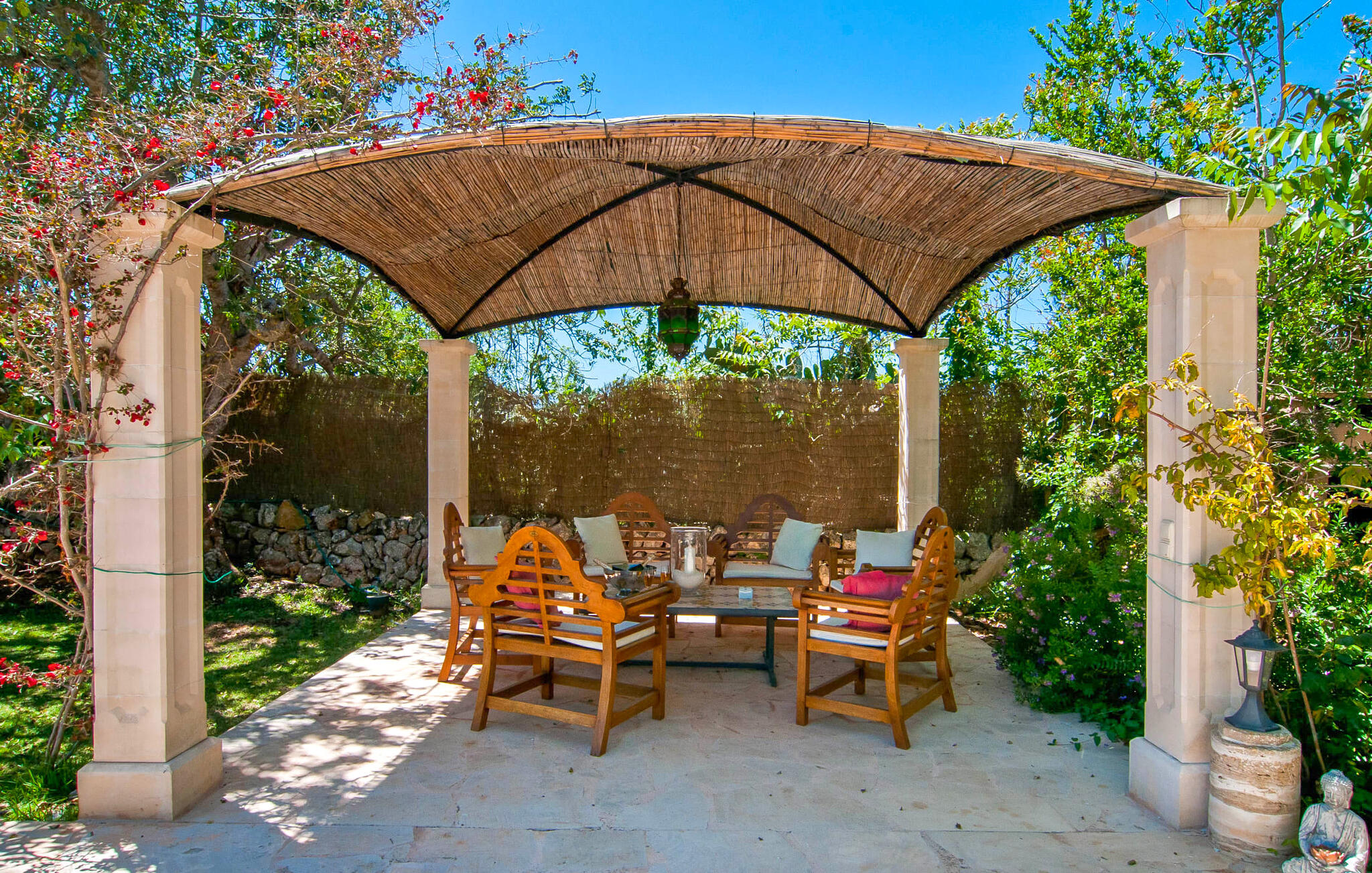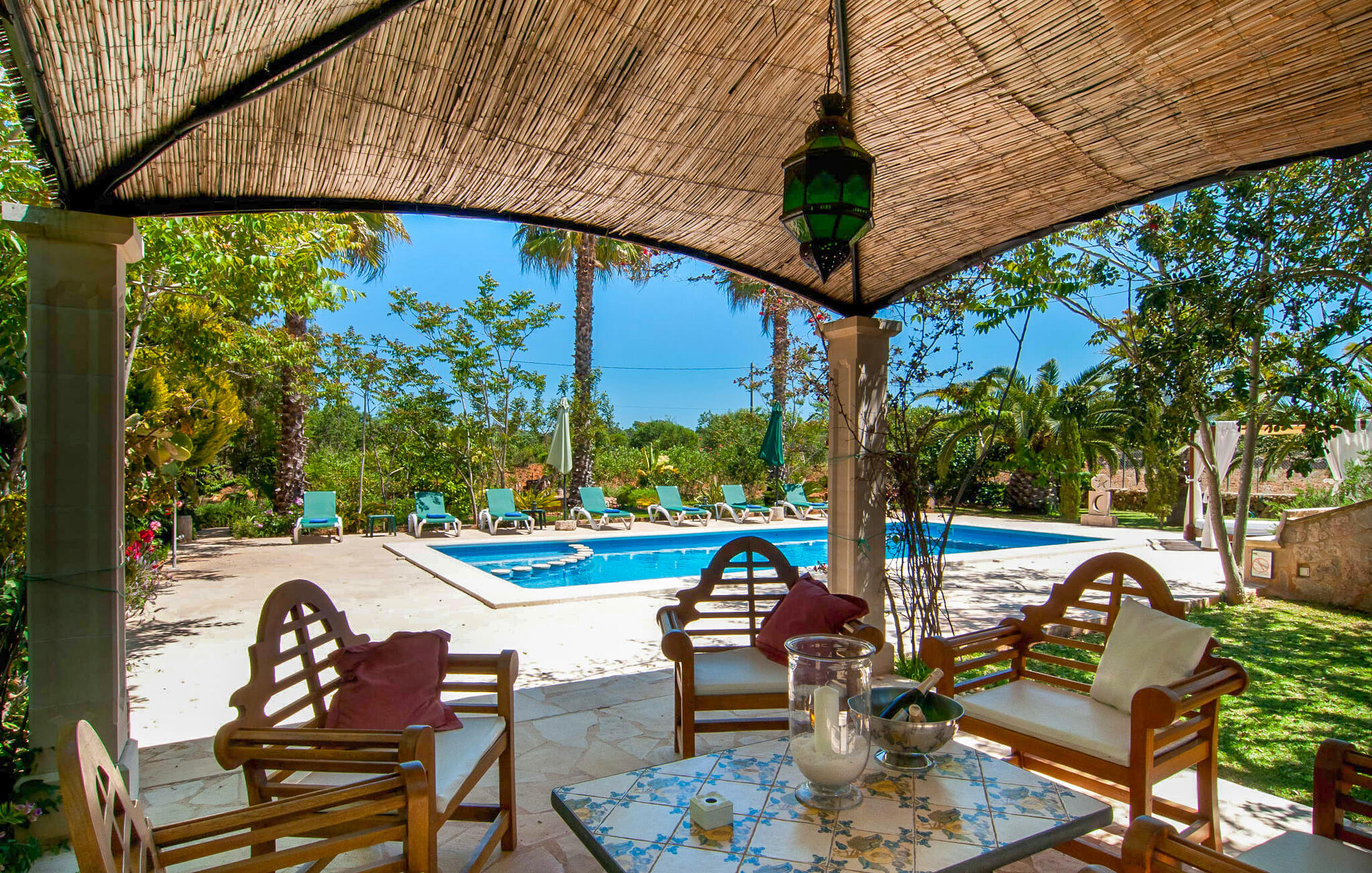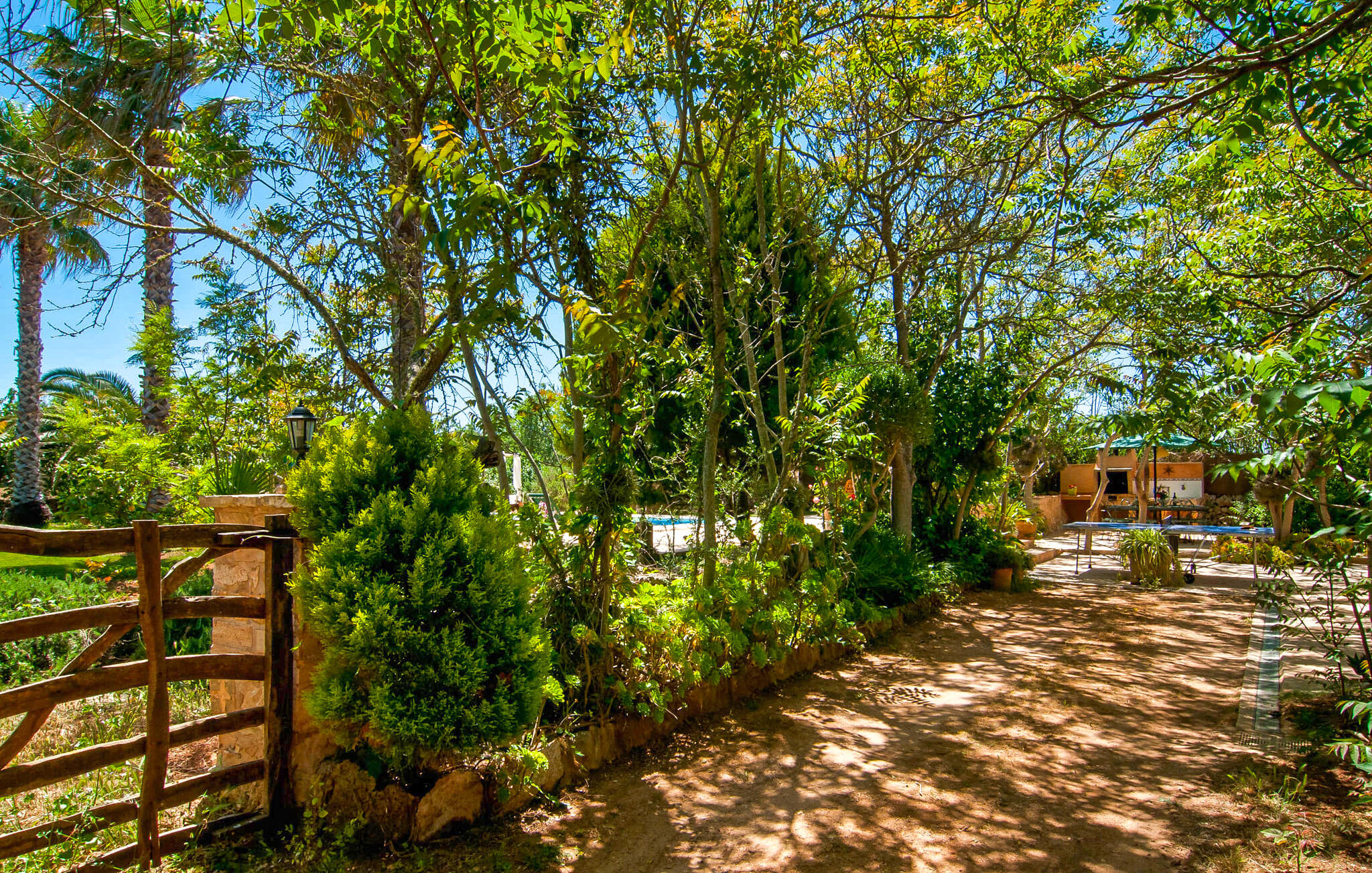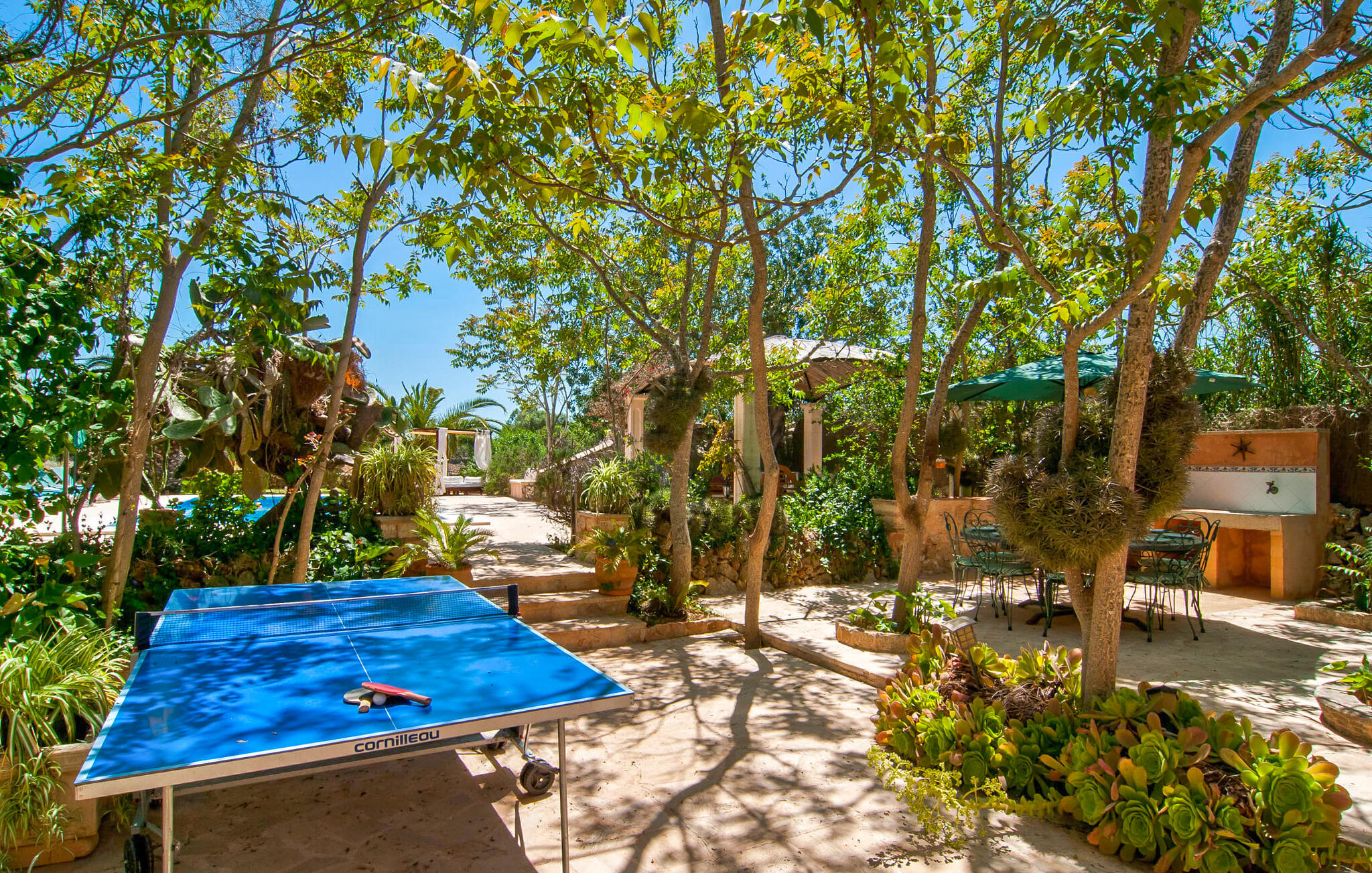 Als je tijdens je vakantie echt wilt onthaasten, er even tussenuit wilt en gewoon wilt ontspannen, dan is Villa Pambola een goede keuze. Het heeft alles wat je nodig hebt voor zo`n vakantie. Zodra je hier aankomt, zul je merken dat het volledig afgelegen terrein heel rustgevend is. Het terrein is begroeid met kleine bomen, struiken en palmbomen en het landgoed is van buitenaf niet zichtbaar. Het prachtig ontworpen zwembad ligt op een steenworp afstand. Het zwembad zelf wordt omringd door een terras en is door een kleine barrière verdeeld in twee aparte zones, waarvan er een een zelden aangeboden pierenbadje is voor kleine kinderen. Er zijn verschillende ligstoelen beschikbaar voor volwassenen, maar er is ook een overdekte strandligstoel en een zithoek in de schaduw. Ga hier zitten en geniet van de sfeer van deze plek, misschien met een koel drankje in de hand, en je zult een ontspannen vakantie beleven. Niet ver hiervandaan, aan de ene kant van het terras dat naar het huis leidt, bevindt zich de gemetselde barbecue, die een prachtig uitzicht biedt op het zwembad. En als je zin hebt in een fris biertje, hoef je er hier alleen maar een uit de kraan te tappen. In dit gebied is er niet alleen genoeg ruimte voor de barbecue; er staat ook een tafeltennistafel en een andere eettafel vlak voor het gebouw.