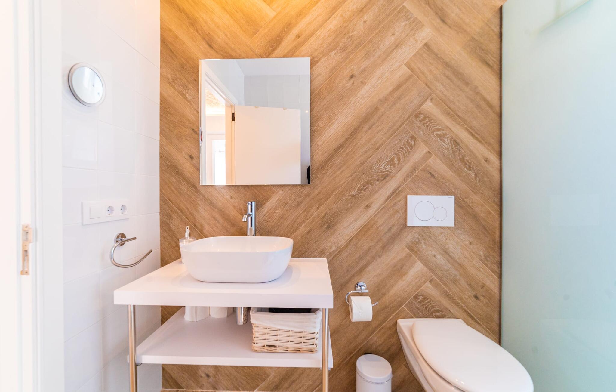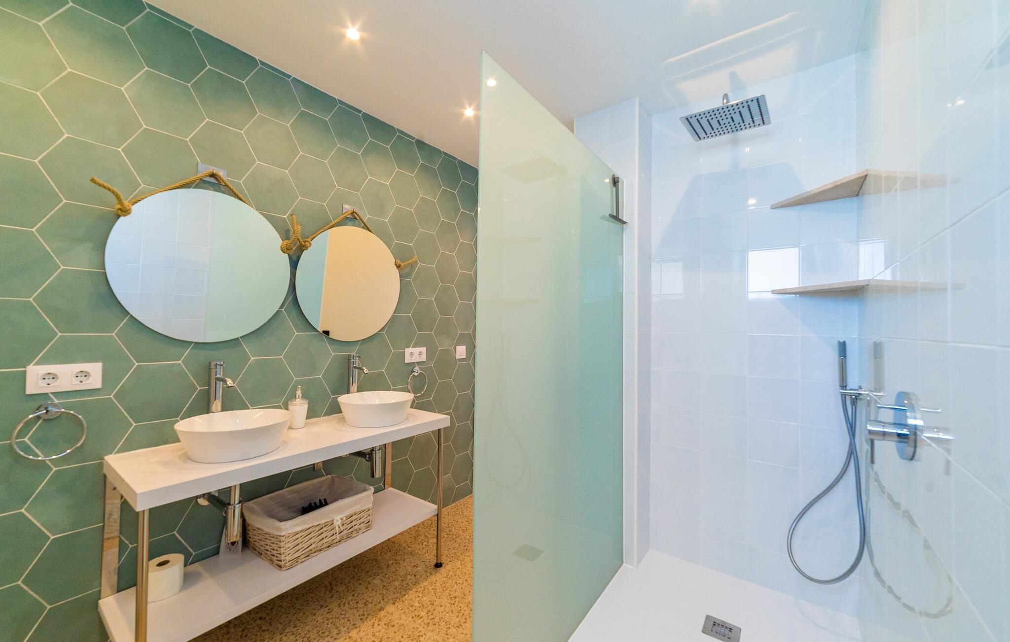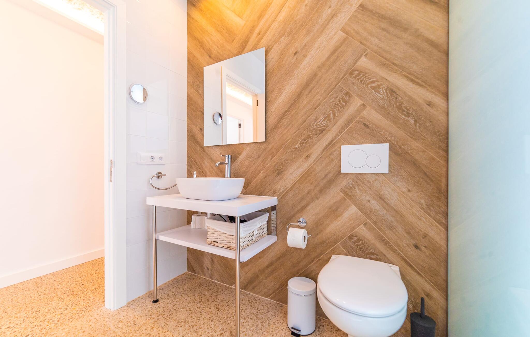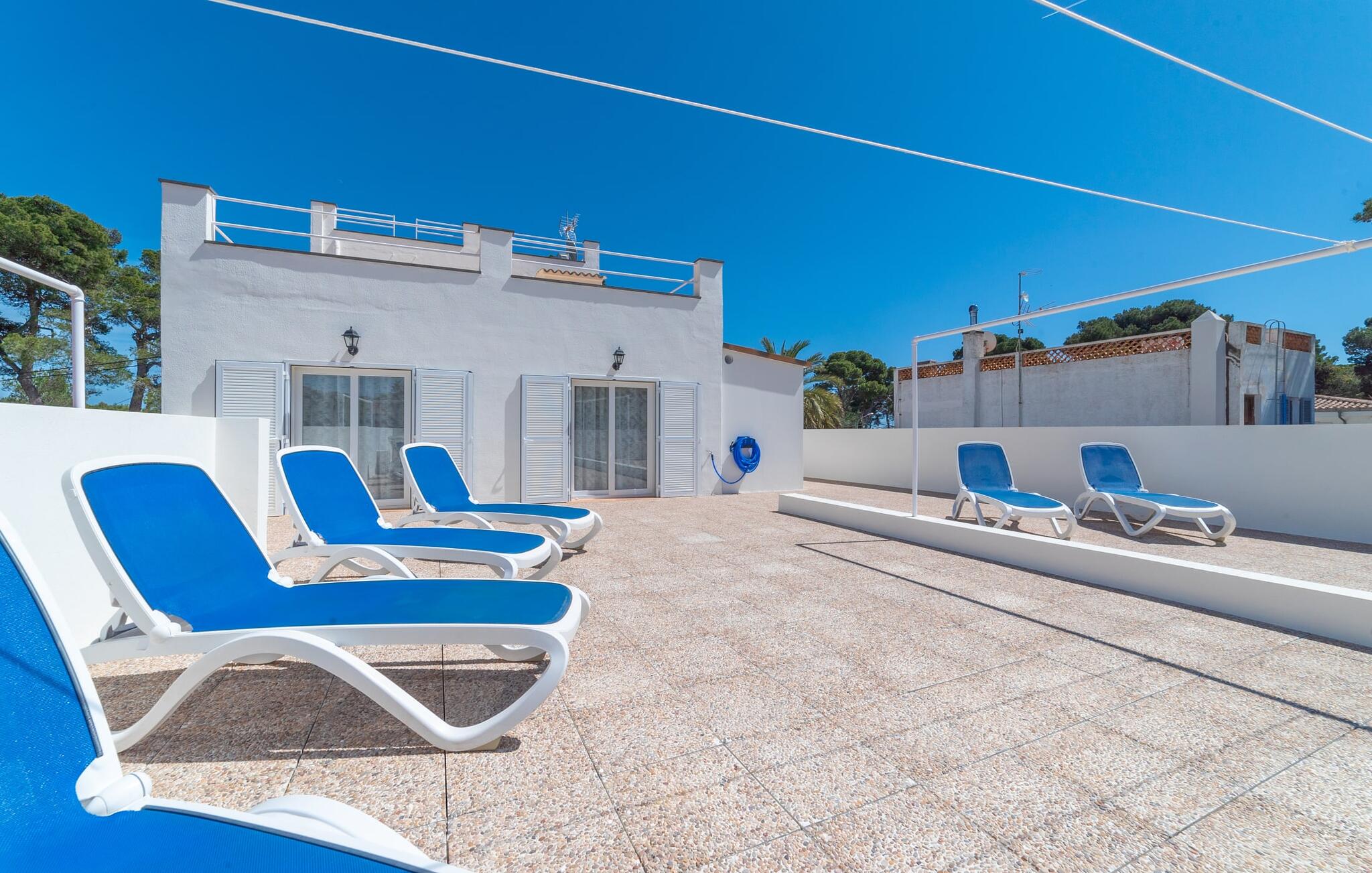 Het ruime, weelderige en uitnodigende balkon is perfect voor het buitenleven. Of je je nu koestert in de Mallorcaanse zon of geniet van de schaduw, van comfortabele ligstoelen tot een eettafel of zithoek, je vindt er genoeg ruimte om te ontspannen. Met een buitenkeuken en een gemetselde barbecue kun je genieten van je maaltijden in de frisse lucht en volop genieten van het zonnige klimaat. Als het tijd is om af te koelen, liggen de prachtige stranden op slechts enkele minuten afstand.