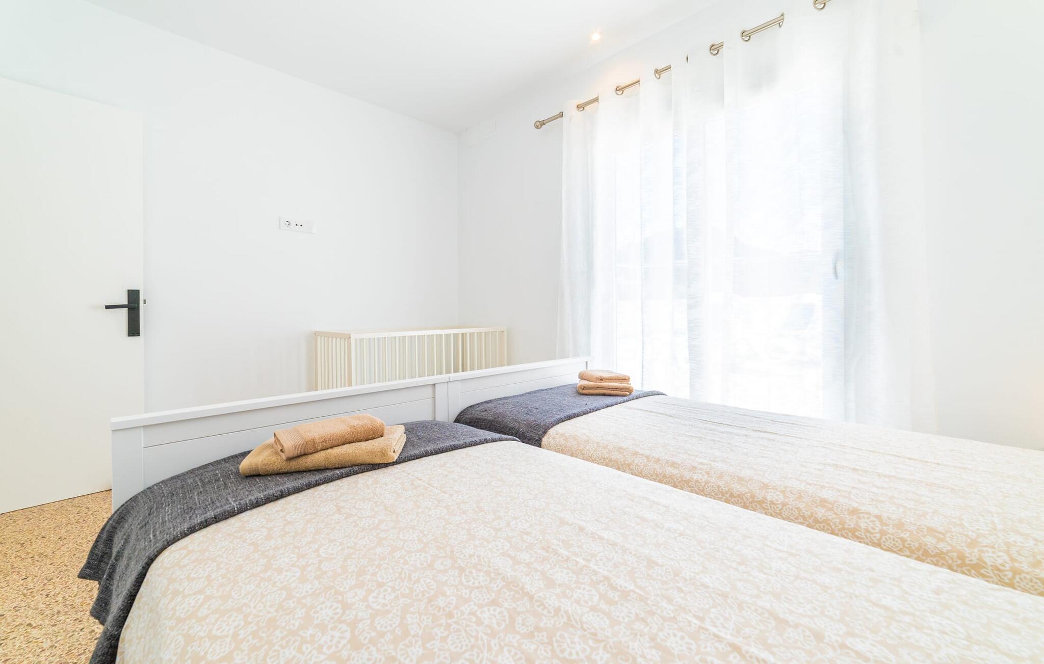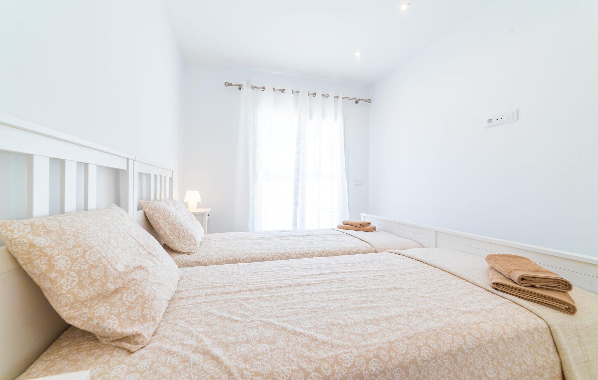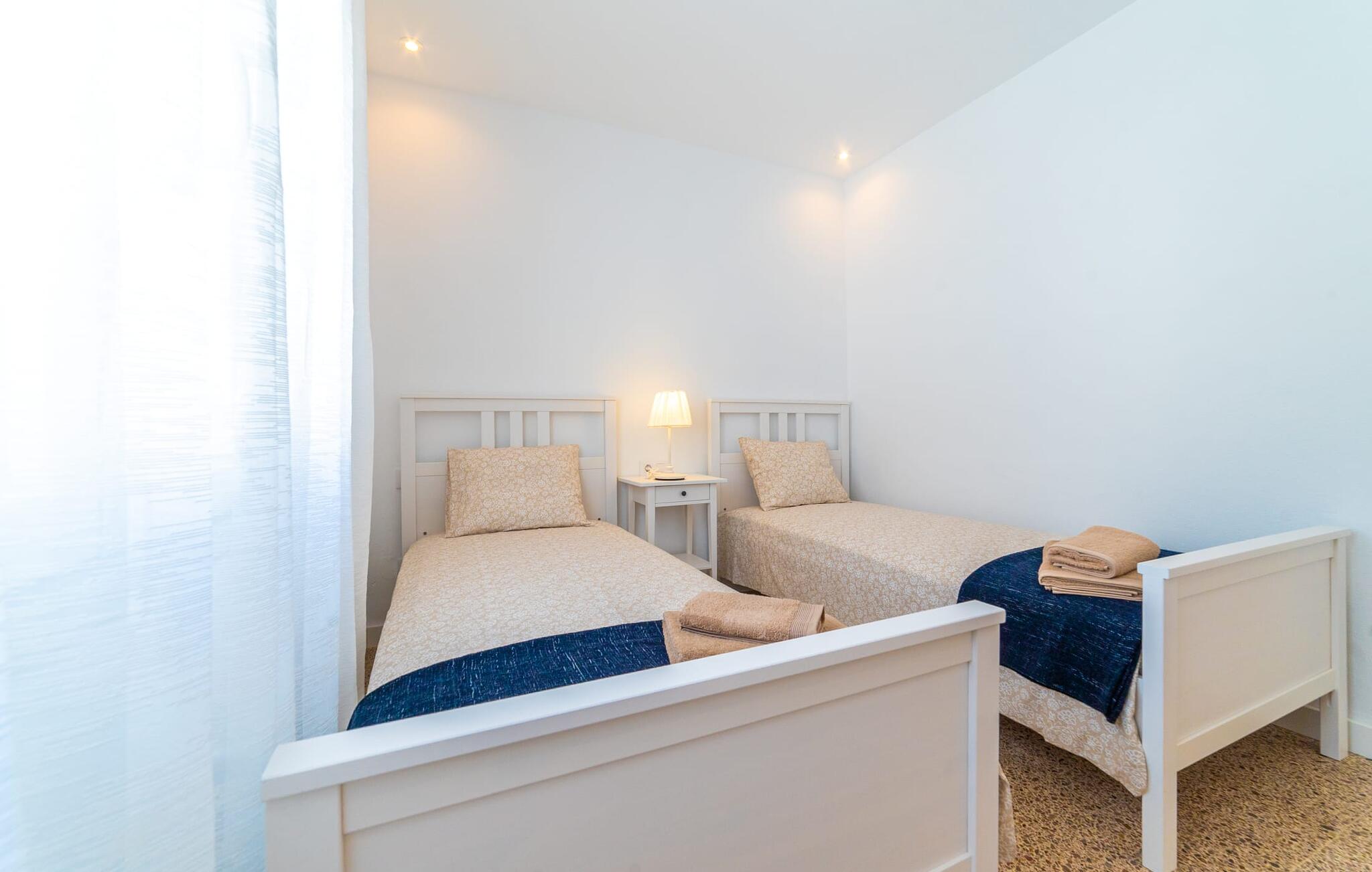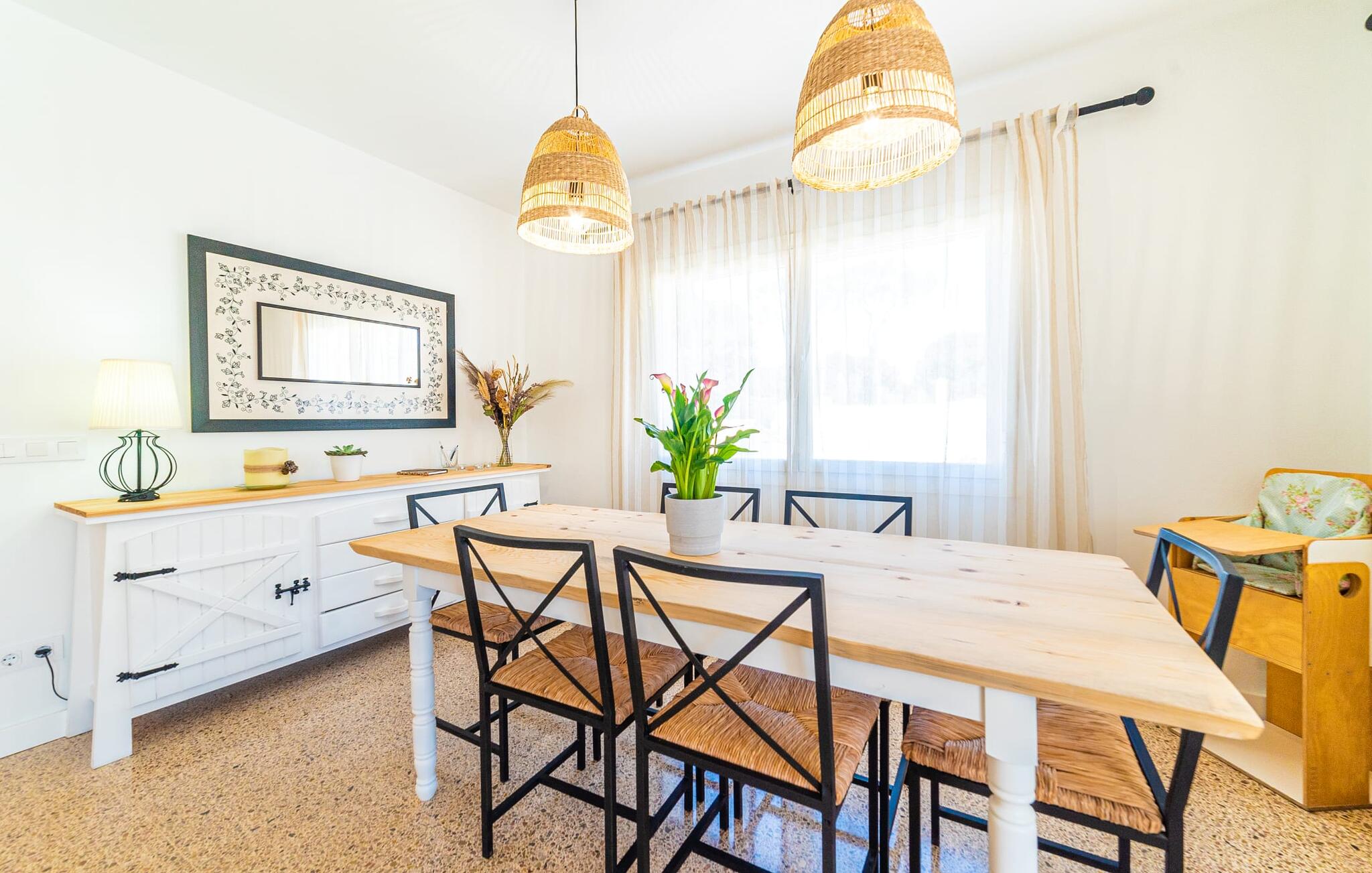 Binnen biedt het appartement een koele, gezellige sfeer. De open woon-eetkamer is ideaal om samen te ontspannen, met kleurrijke meubels die een relaxte sfeer creëren. Geniet van een verscheidenheid aan entertainmentopties en geniet van het uitzicht op het omliggende groen vanaf het omheinde terras. De moderne, lichte keuken is volledig uitgerust voor al je culinaire behoeften, met een kleine bartafel perfect voor een café con leche. Drie slaapkamers, met veel witte en houten details, bieden een rustgevend toevluchtsoord. Twee chique, moderne badkamers ronden deze perfecte vakantiewoning op Mallorca af.