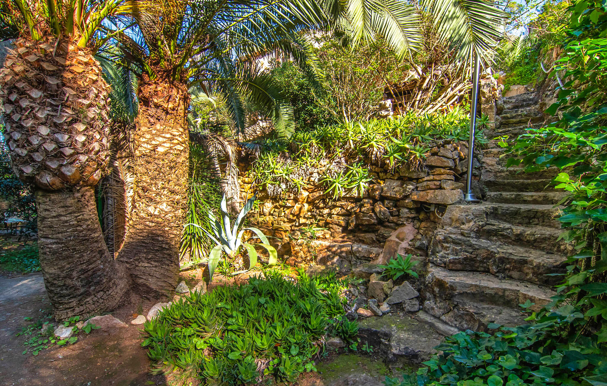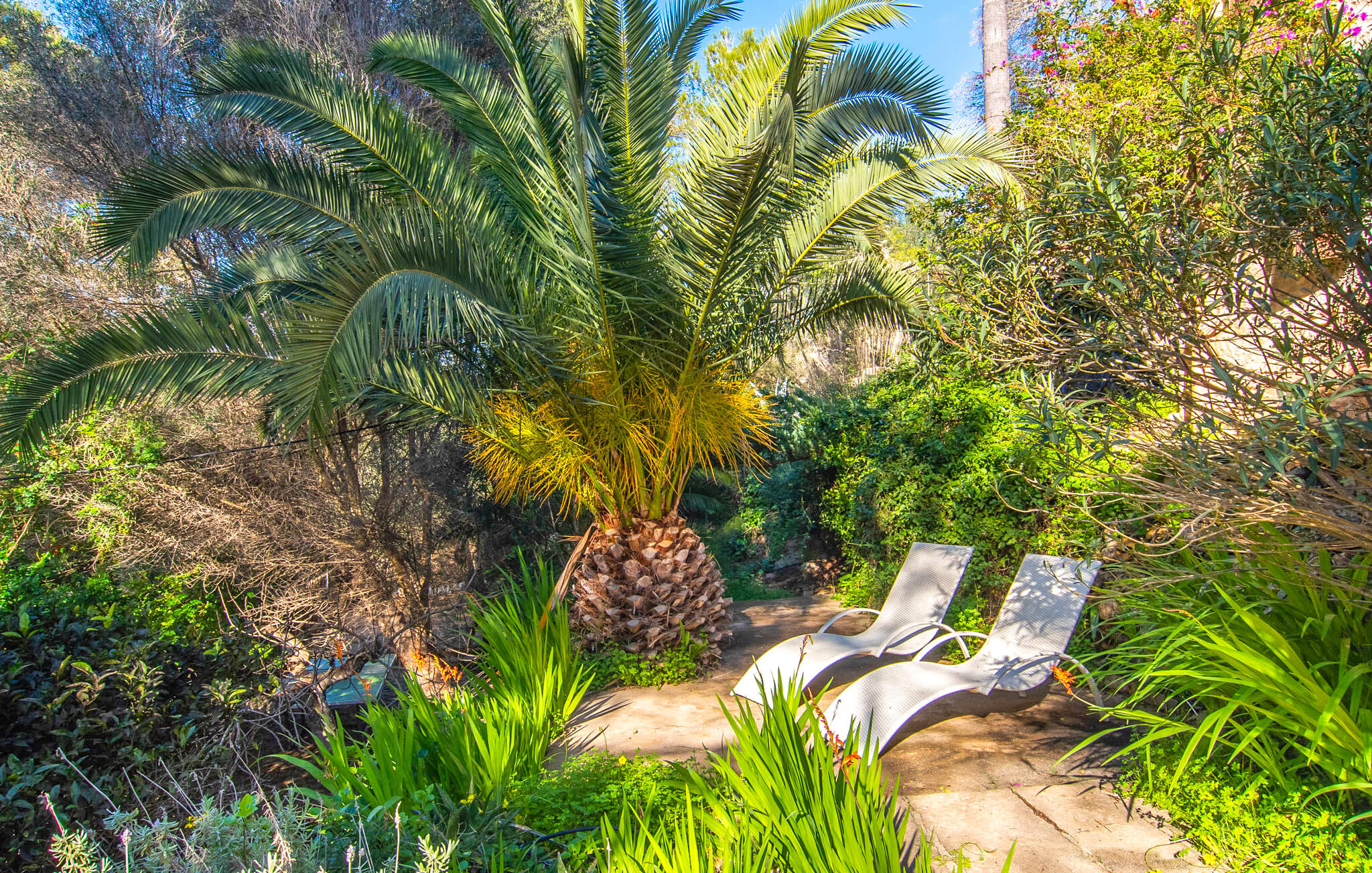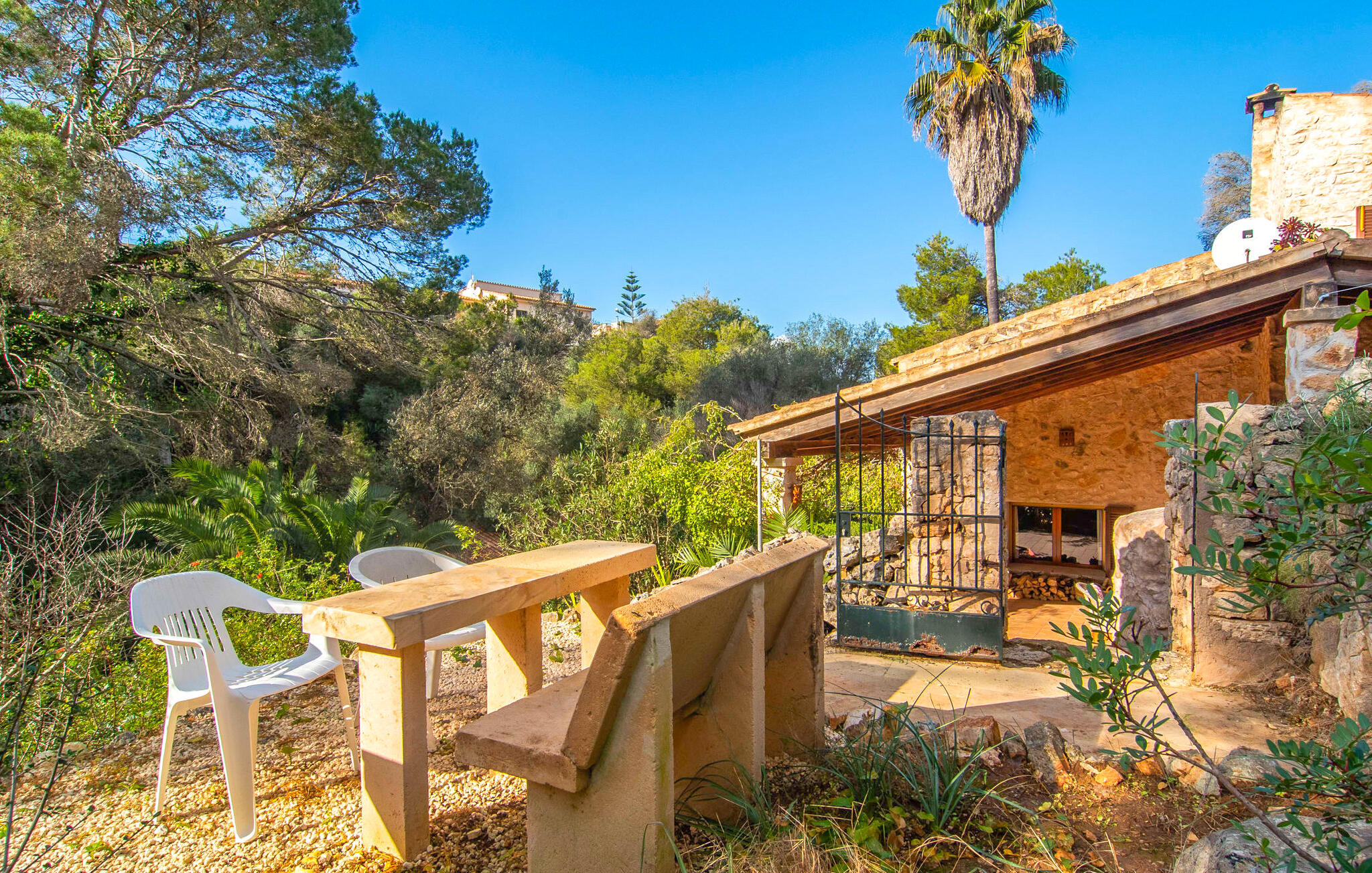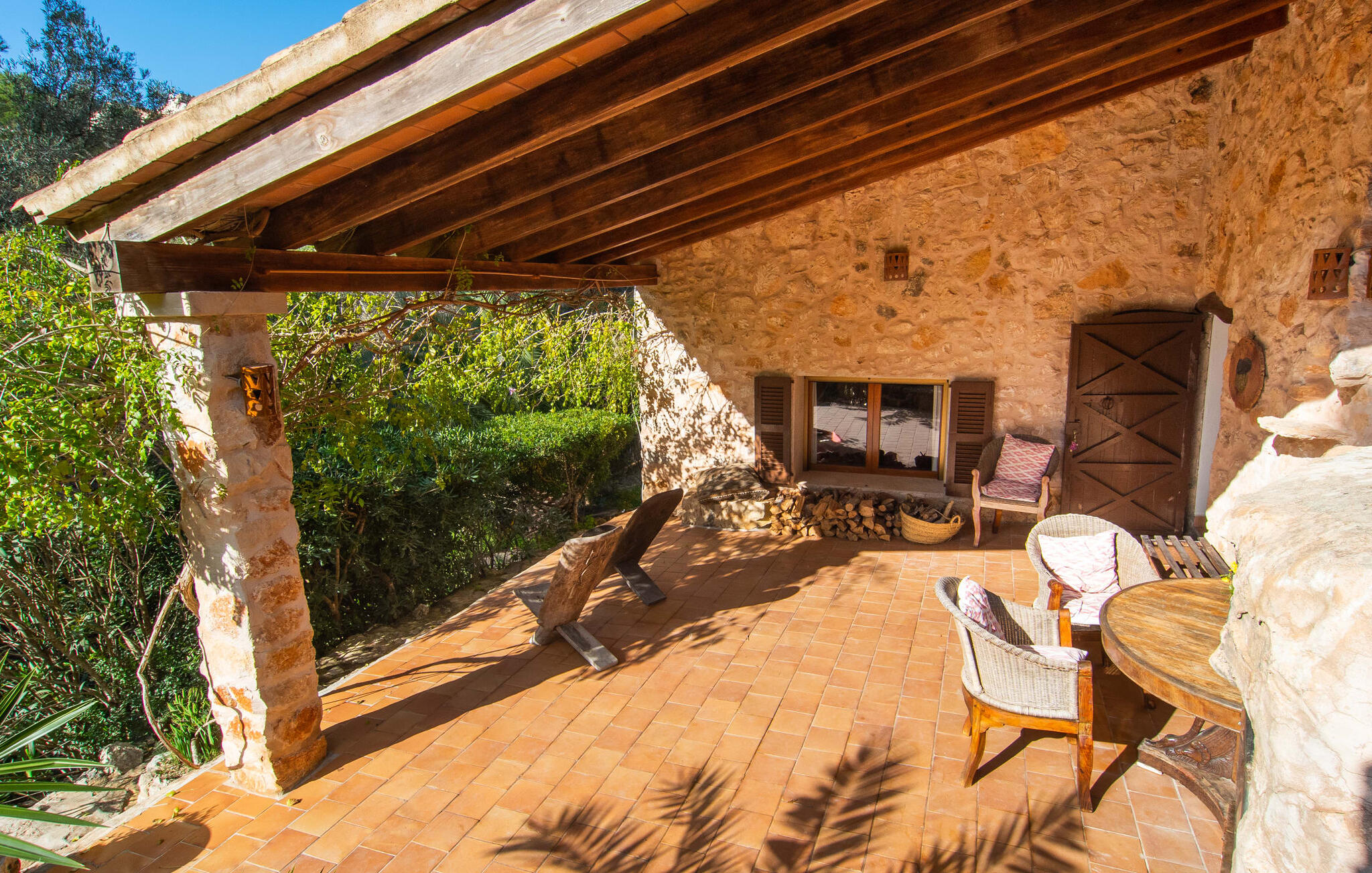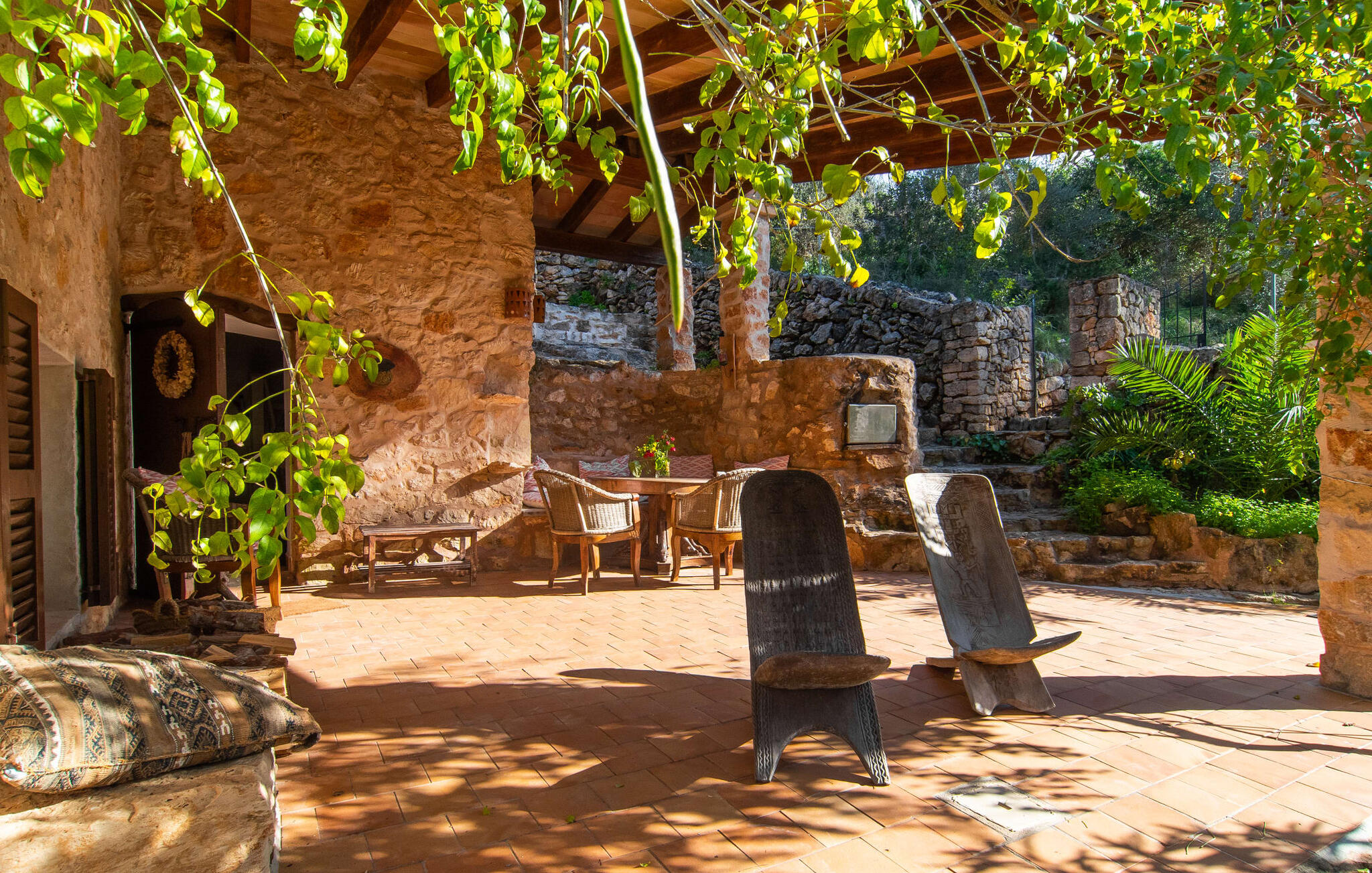 Genesteld op een rustige locatie, is de buitenruimte gevuld met rustieke zithoeken, gezellige nissen en weelderig mediterraan groen. De zachte helling draagt bij aan de charme en het overdekte terras biedt een gezellige eethoek voor gezamenlijke maaltijden. Ontspan in unieke ligstoelen of verken andere afgelegen plekjes op het terrein. Er is ook een buitendouche met warm water om je af te spoelen na een dag op het strand.